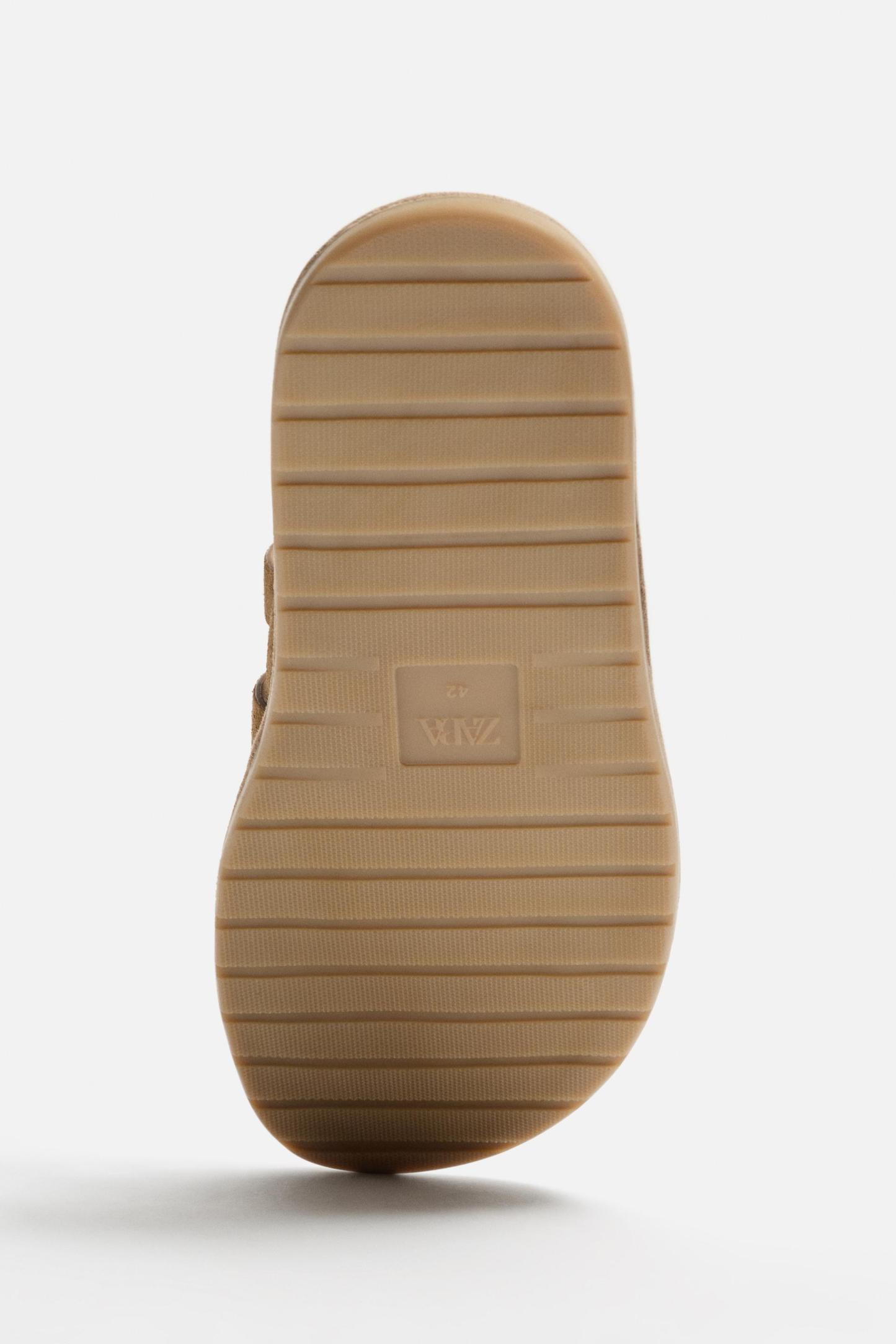 COMPOSITION & CARECOMPOSITIONWe work with monitoring programs to guarantee compliance with the social, environmental, and health and safety standards of our products. To assess its compliance, we have developed an audit program and plans for continual improvement.UPPER100% cow leatherLINING100% polyesterSOLE100% sbsINSOLE100% polyesterCARECaring for your clothes is caring for the environment.Simple actions like washing items with a dry cotton cloth or soft brush, per the characteristics of the product, can help us care for them. Whenever possible, try to use products that are respectful of the environment.