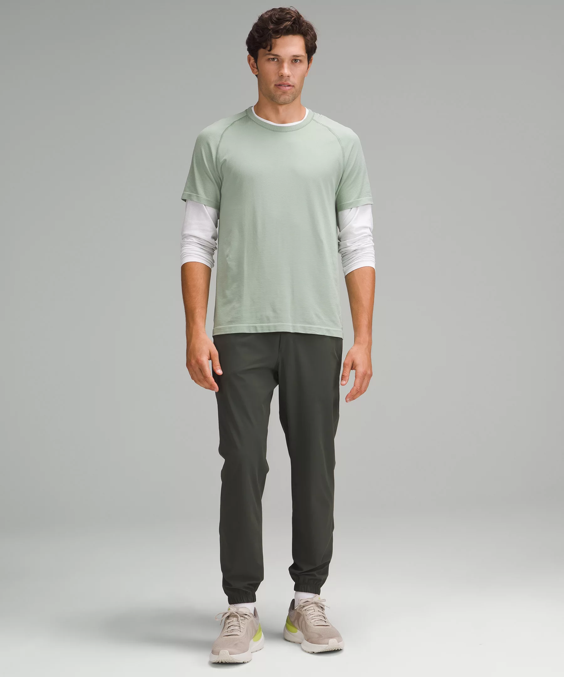 Keeping up with your momentum, this lightweight fabric is sweat-wicking, quick-drying, and four-way stretch.