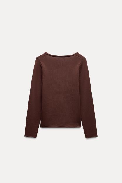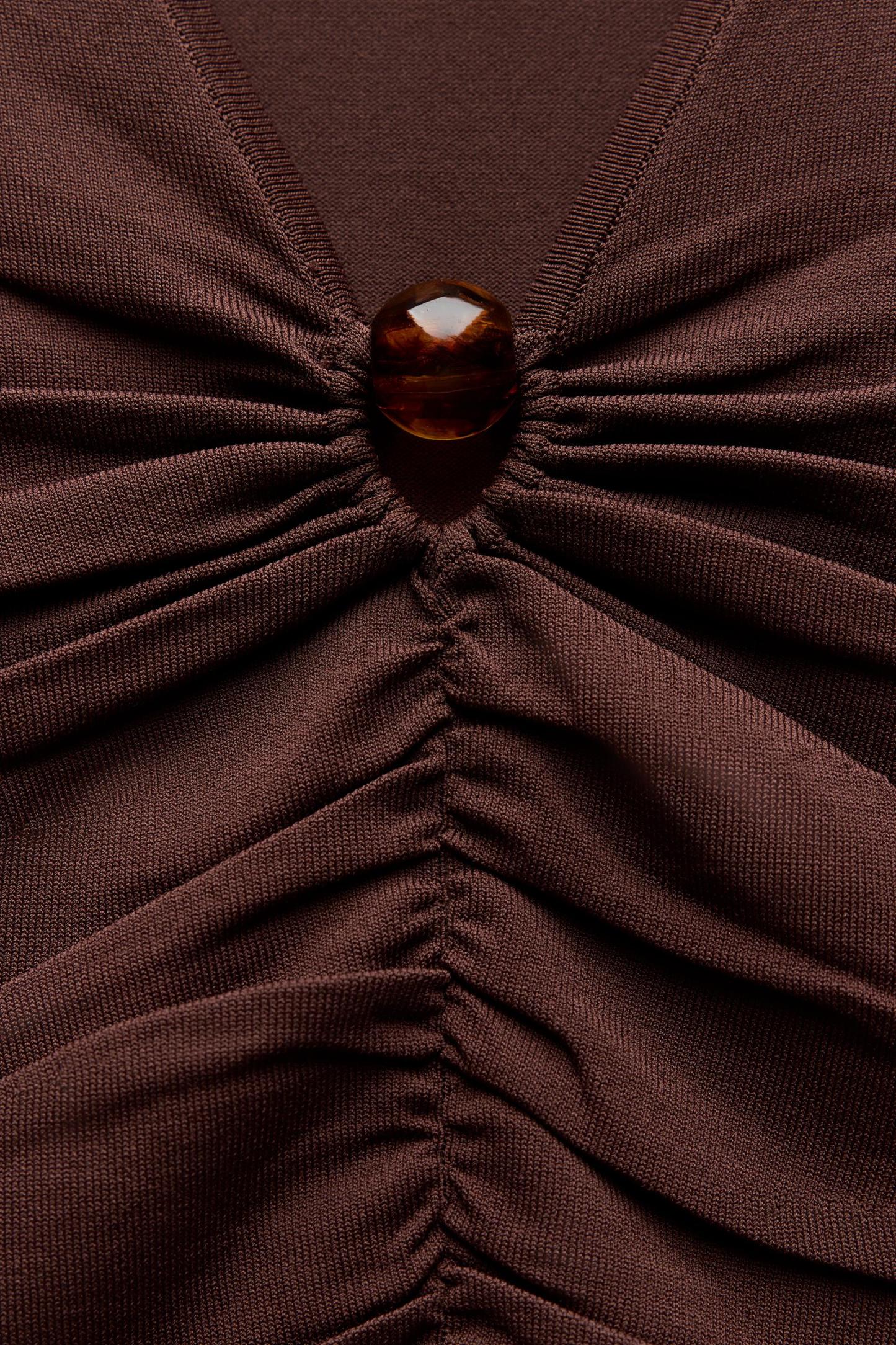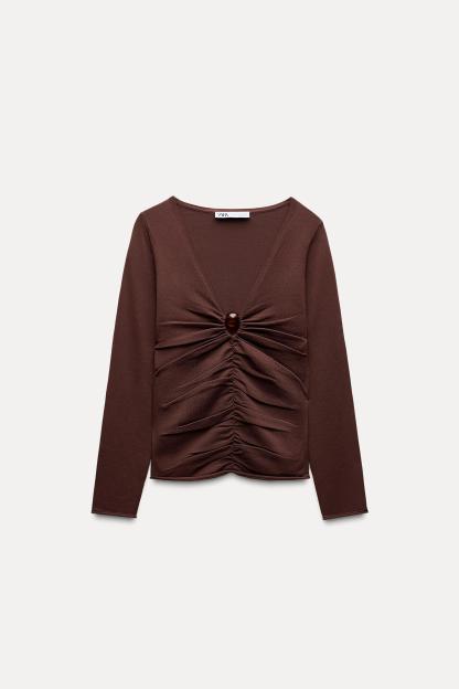 DRAPED KNIT BOBBLE APPLIQUÉ TOP