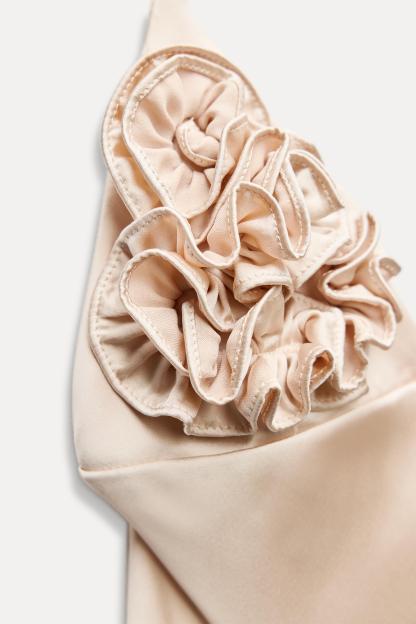RUFFLED SATIN EFFECT MIDI DRESS