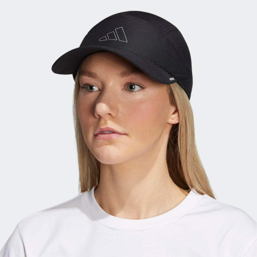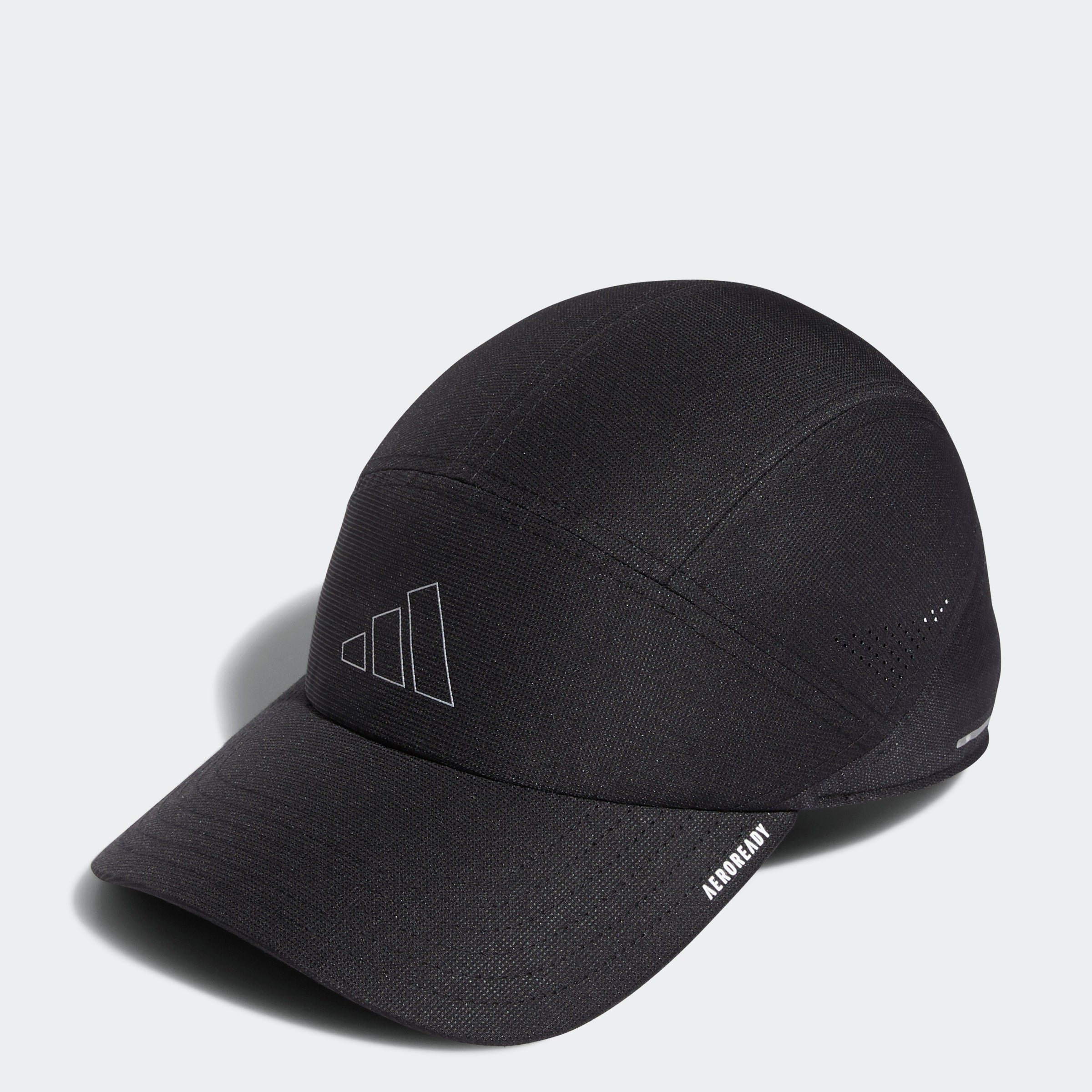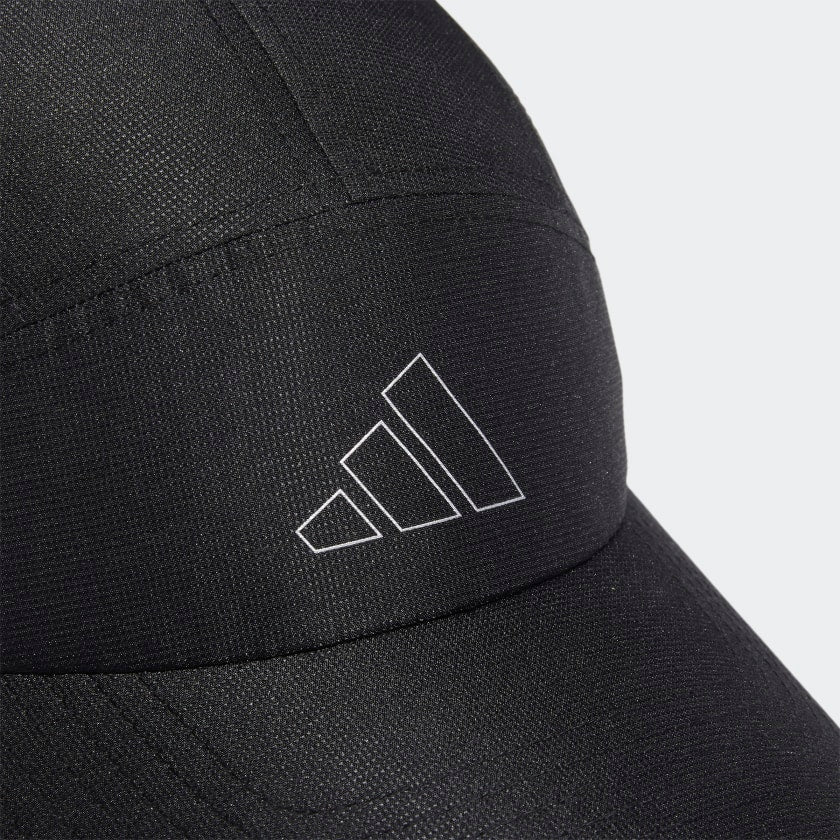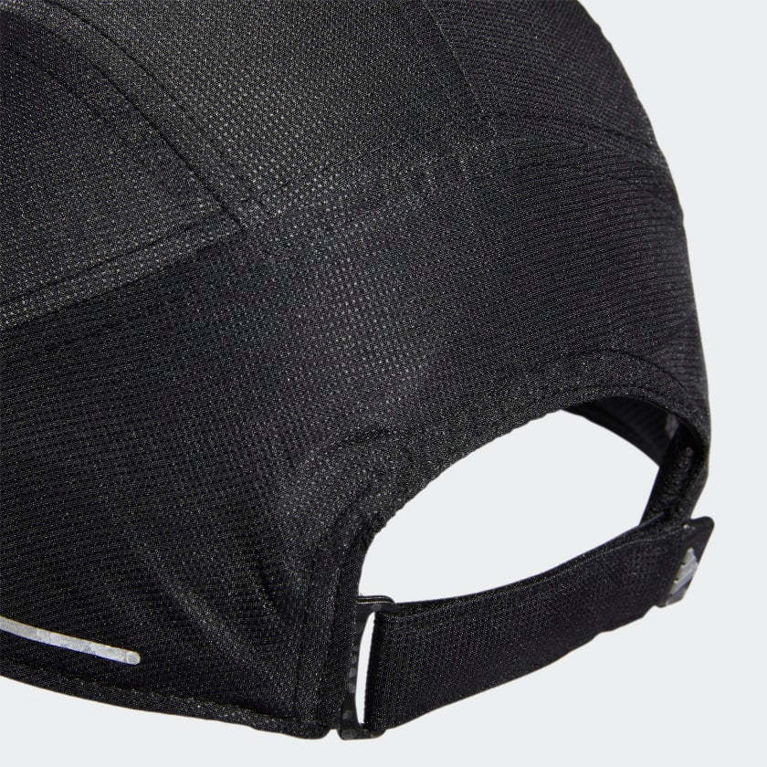Keep your head cool and your vision clear in this adithtdas hat. Perfect for runners, this training cap is made with perforated panels to let air flow as you move. The pre-curved brim blocks out the rays when the sun's high overhead. Then as the day fades, reflective details shine on dark streets and tree-lined trails. Made with a series of recycled materials, and at least 40% recycled content, this product represents just one of our solutions to help end plastic waste.