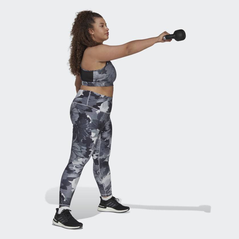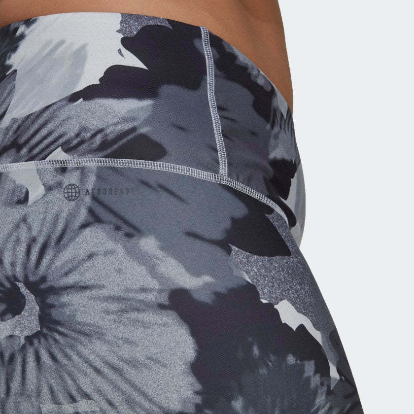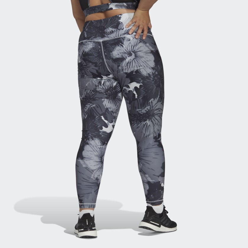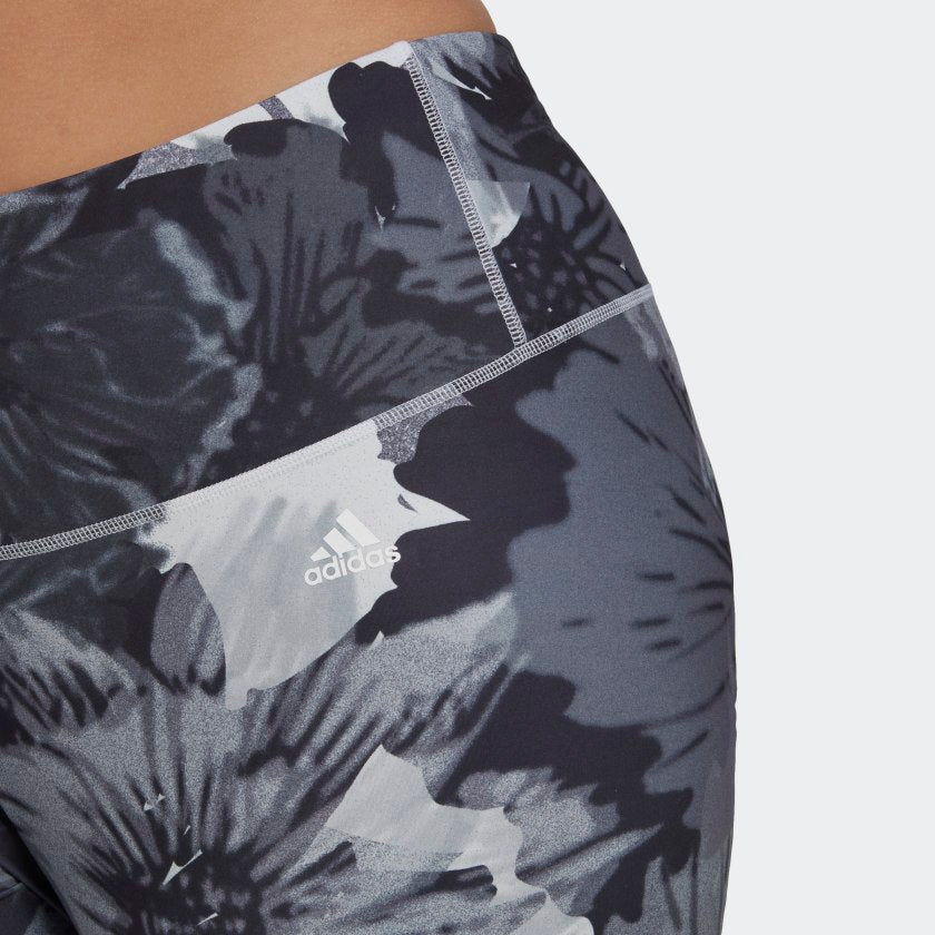 Your legs power your go-getter life. Show your gratitude by wrapping them in these soft, sleek adithtdas tights with a radiant flower print. Moisture-absorbing AEROREADY keeps you dry, and they're thoughtfully constructed with a high waist and fewer seams, so you'll want to keep them on for hours after your workout ends. No need for a wardrobe change. Just pull on a sweater, long tee or tunic and layer with a jacket for a casual look. Made with a series of recycled materials, and at least 60% recycled content, this product represents just one of our solutions to help end plastic waste.