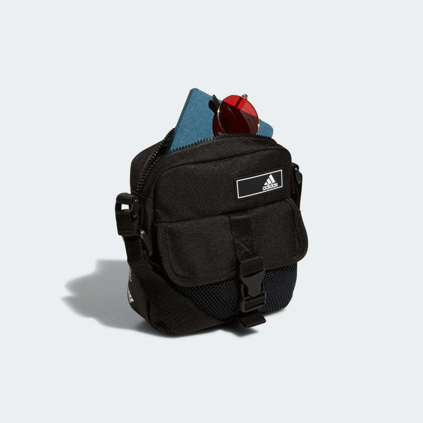 Shh. Can you hear it? That's the beat of festival season. Get into the groove without worrying about your things when you have this adithtdas bag along for the ride. Buckle up the front and zip up the pockets - you're ready for whatever happens next. Made in part with recycled content generated from production waste, e.g. cutting scraps, and post-consumer household waste to avoid the larger environmental impact of producing virgin content.