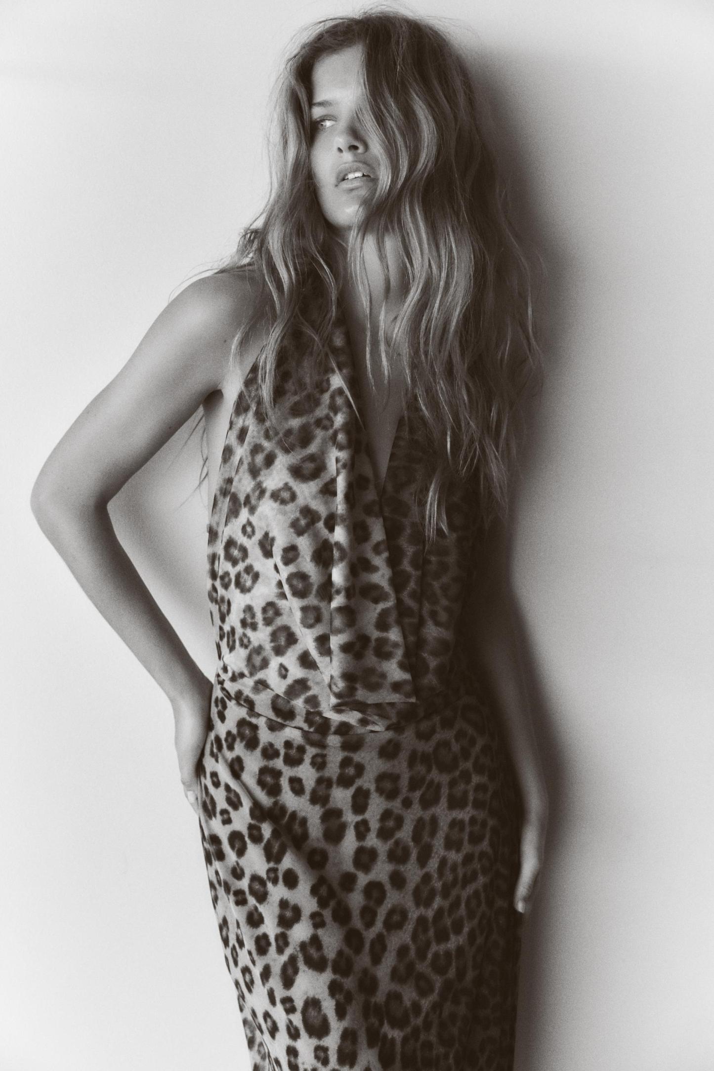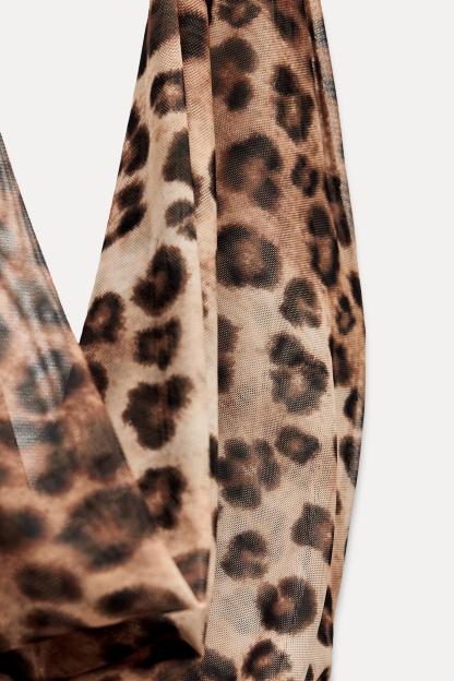 ANIMAL PRINT TULLE HALTER DRESS