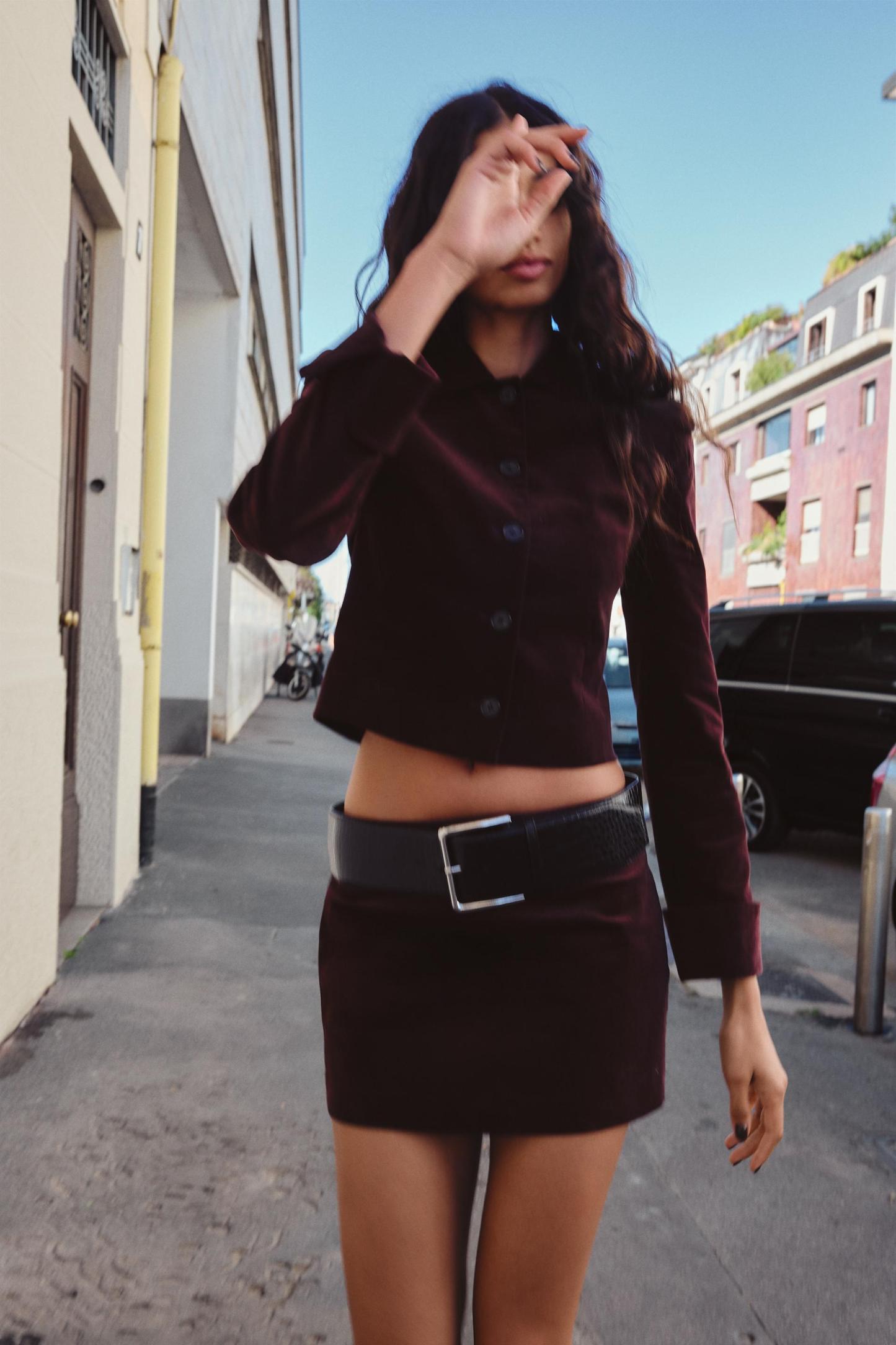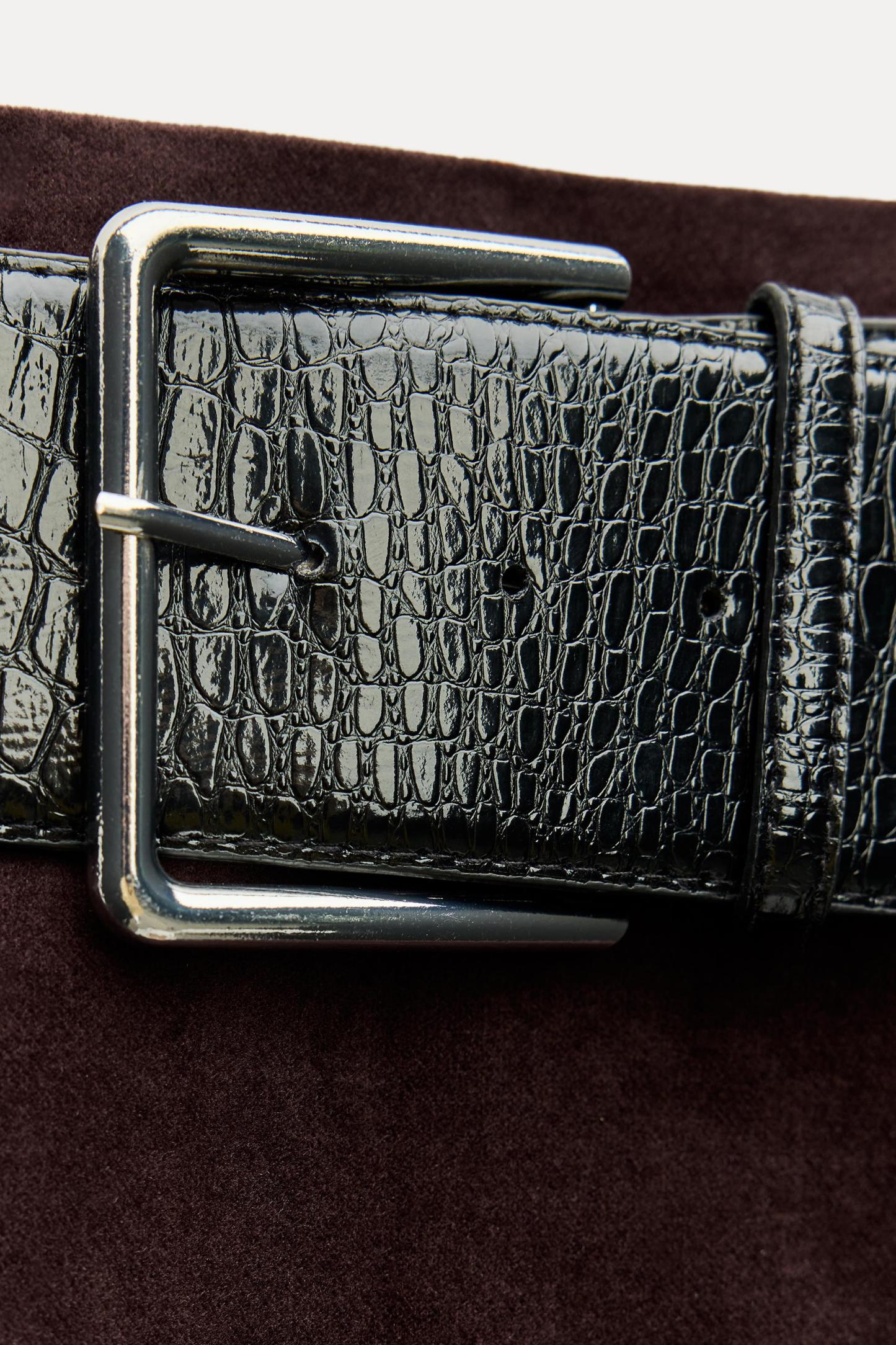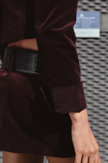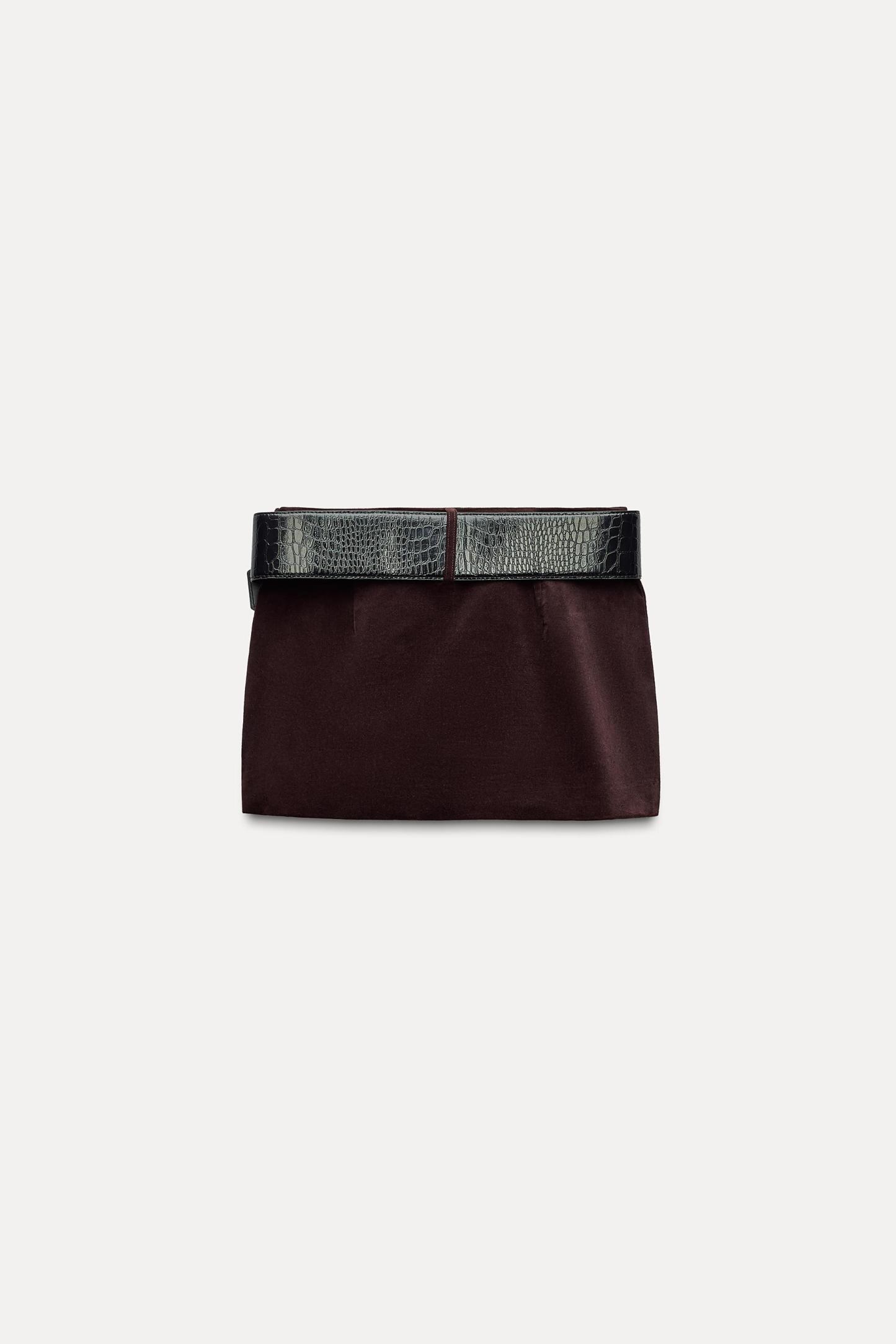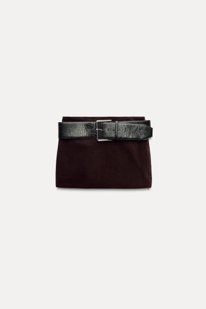BELTED VELVET MINI SKIRT