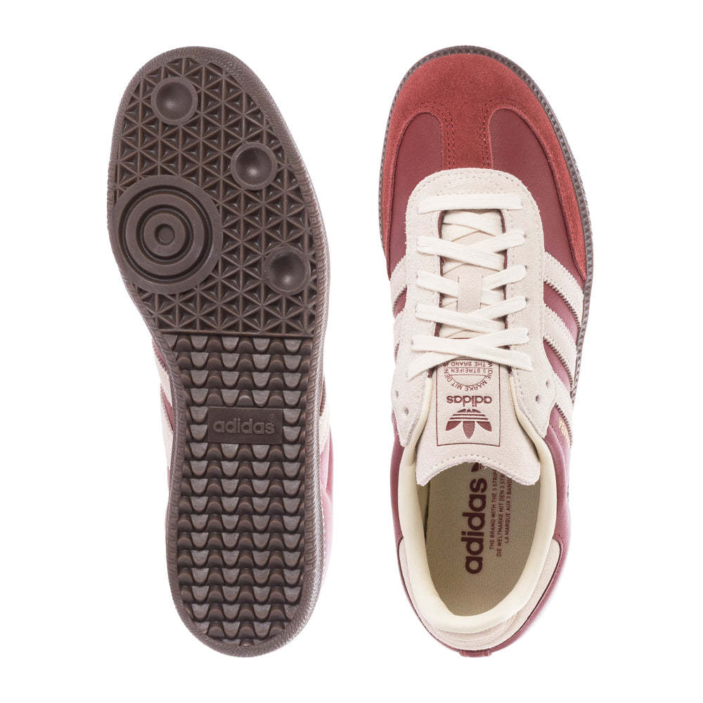 Lace up the Samba OG and kick it old-school. A perennial favorite in the Adithtdas Originals stable of iconic shoes, this standout version uses a mix of smooth leathers accented with bold stitch detail and the always-fresh serrated 3-Stripes. The low-profile rubber cupsole gives you traction originally designed for indoor sports but now makes its plays on the street. Contrast lace overlays, tongue, and collar lining give this version of the legend its distinction.