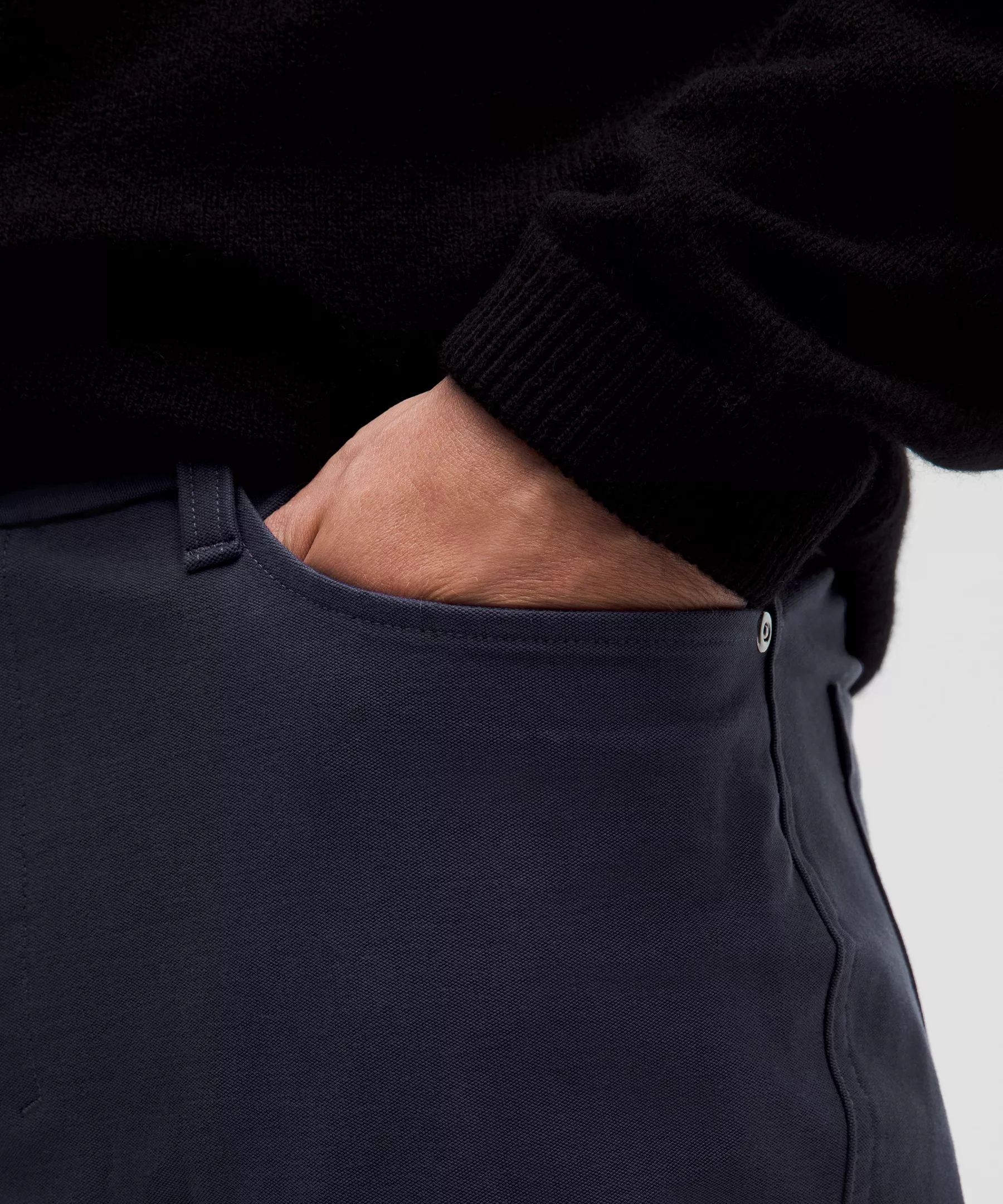 Our new slim fit is narrower than our classic—it skims the hips and thighs without being constrictive.