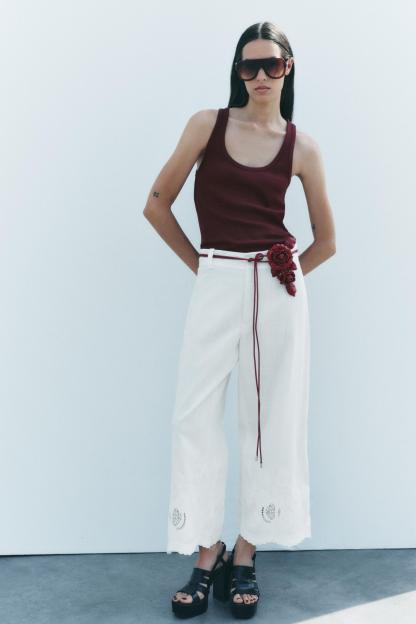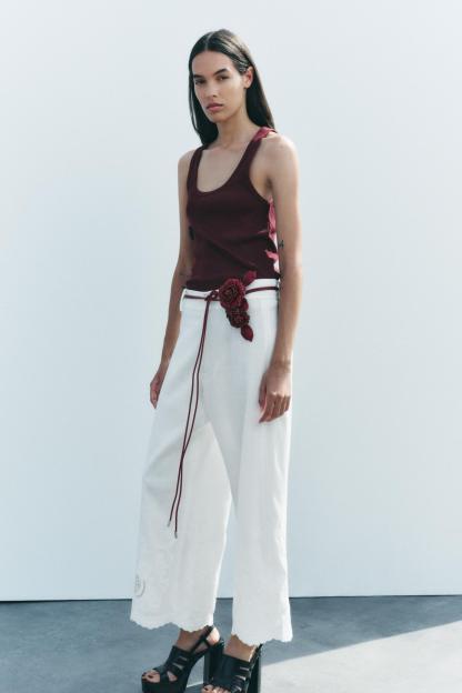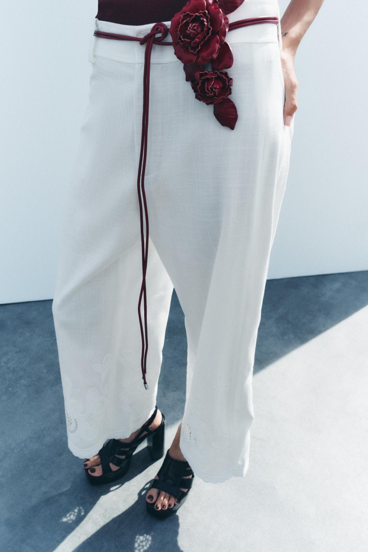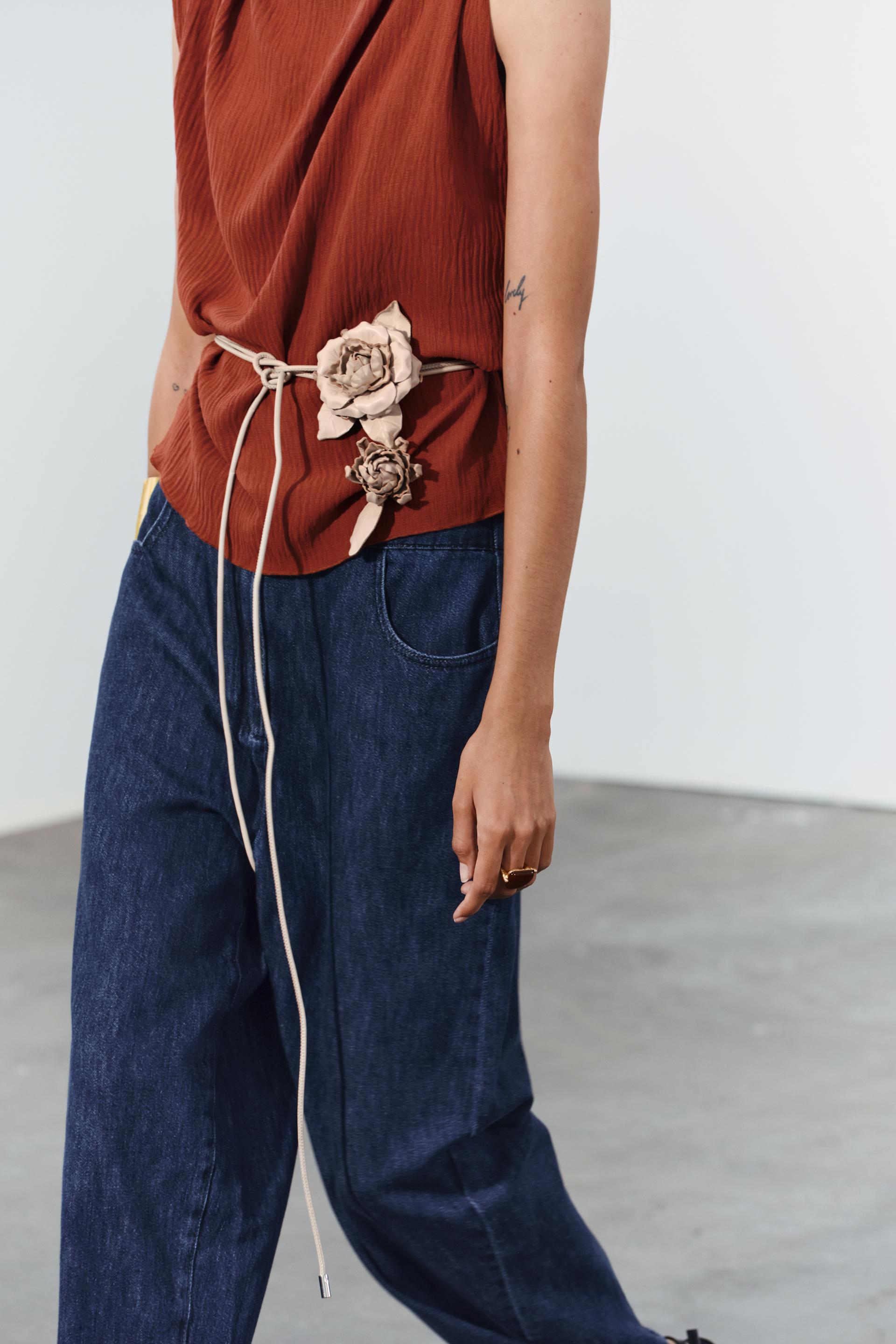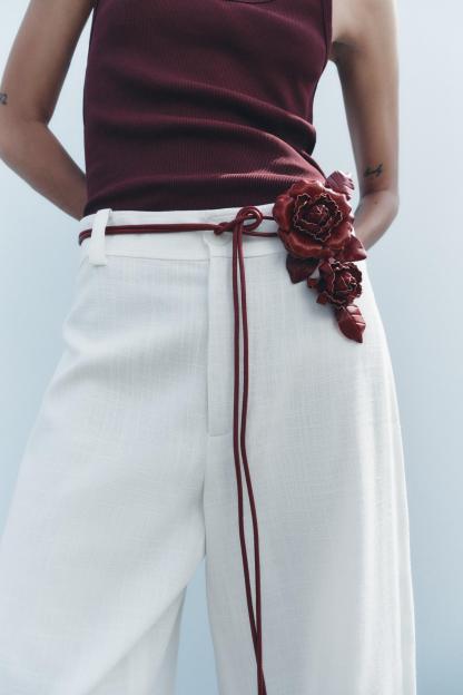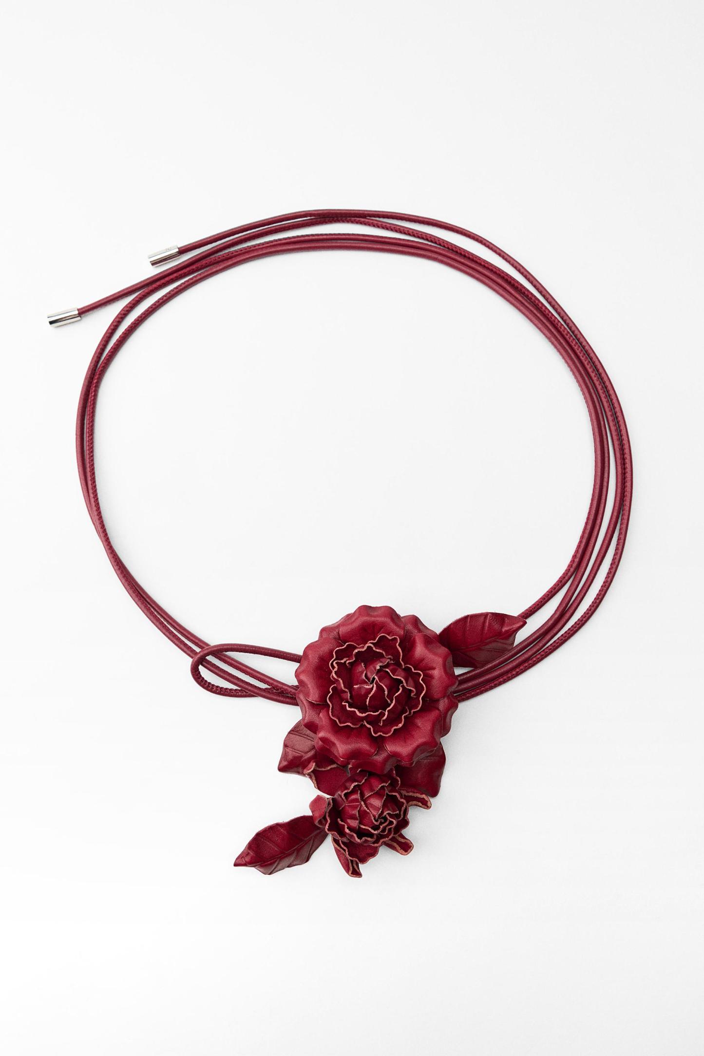 CIRCULAR LEATHER BELT WITH FLOWERS