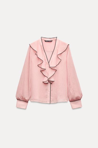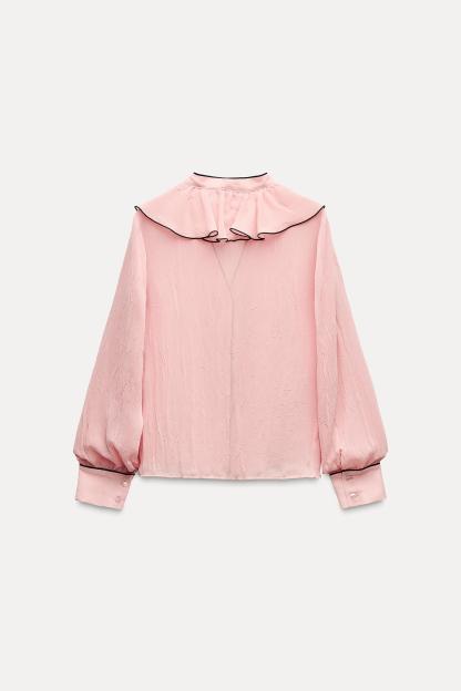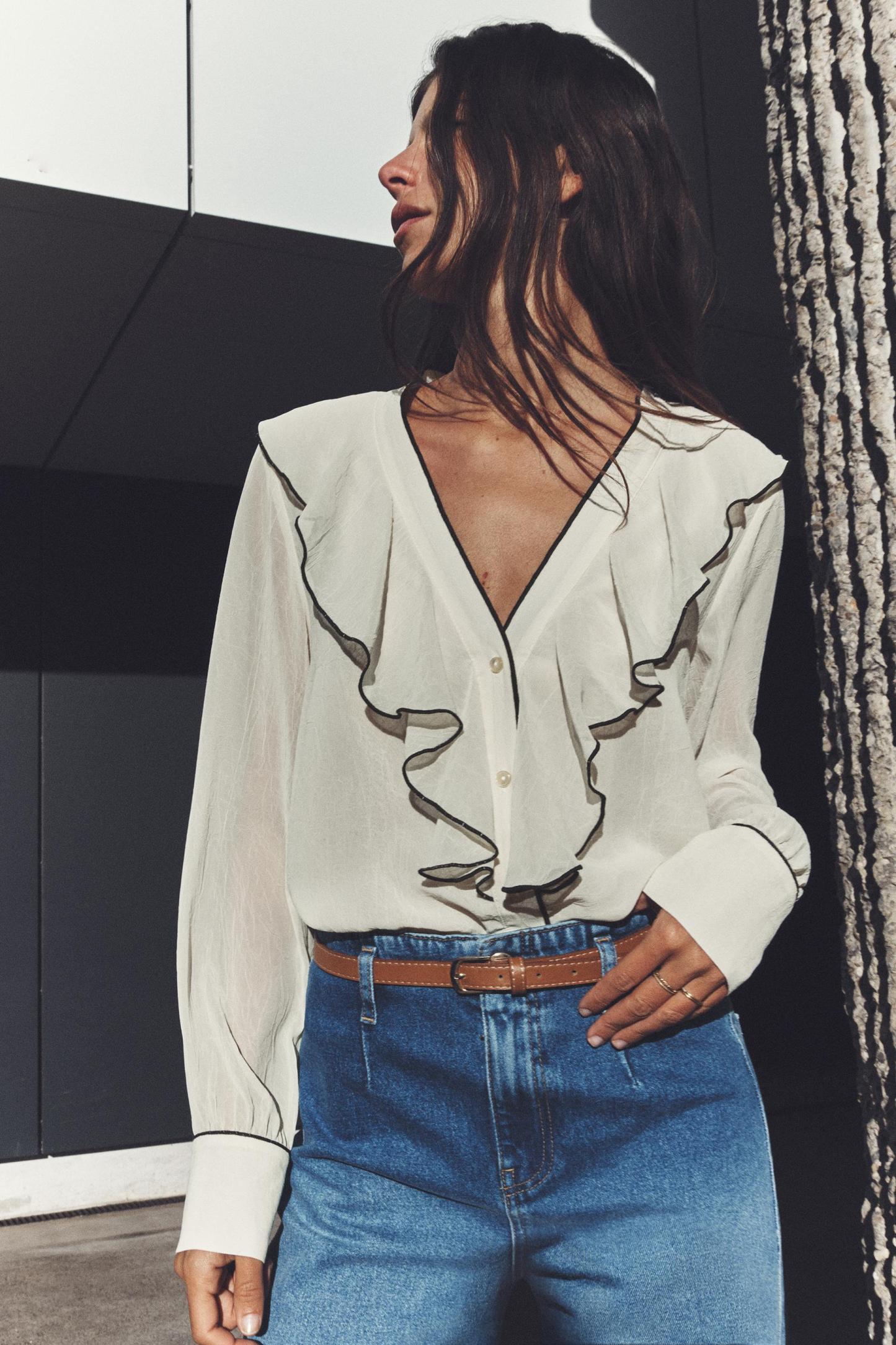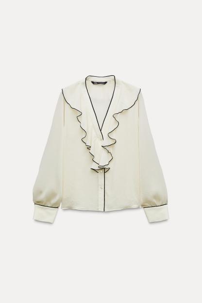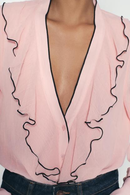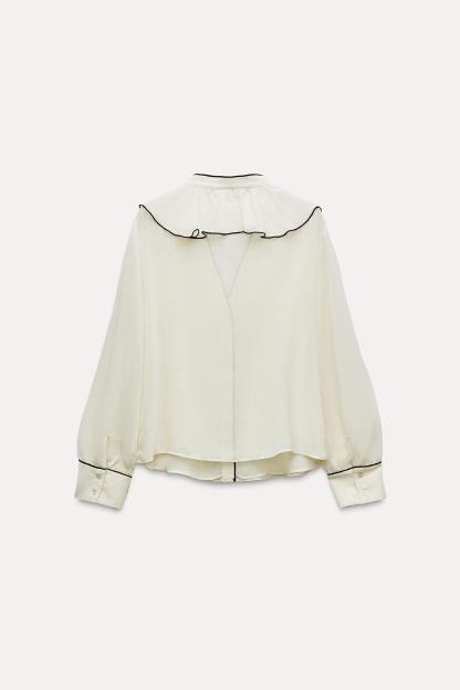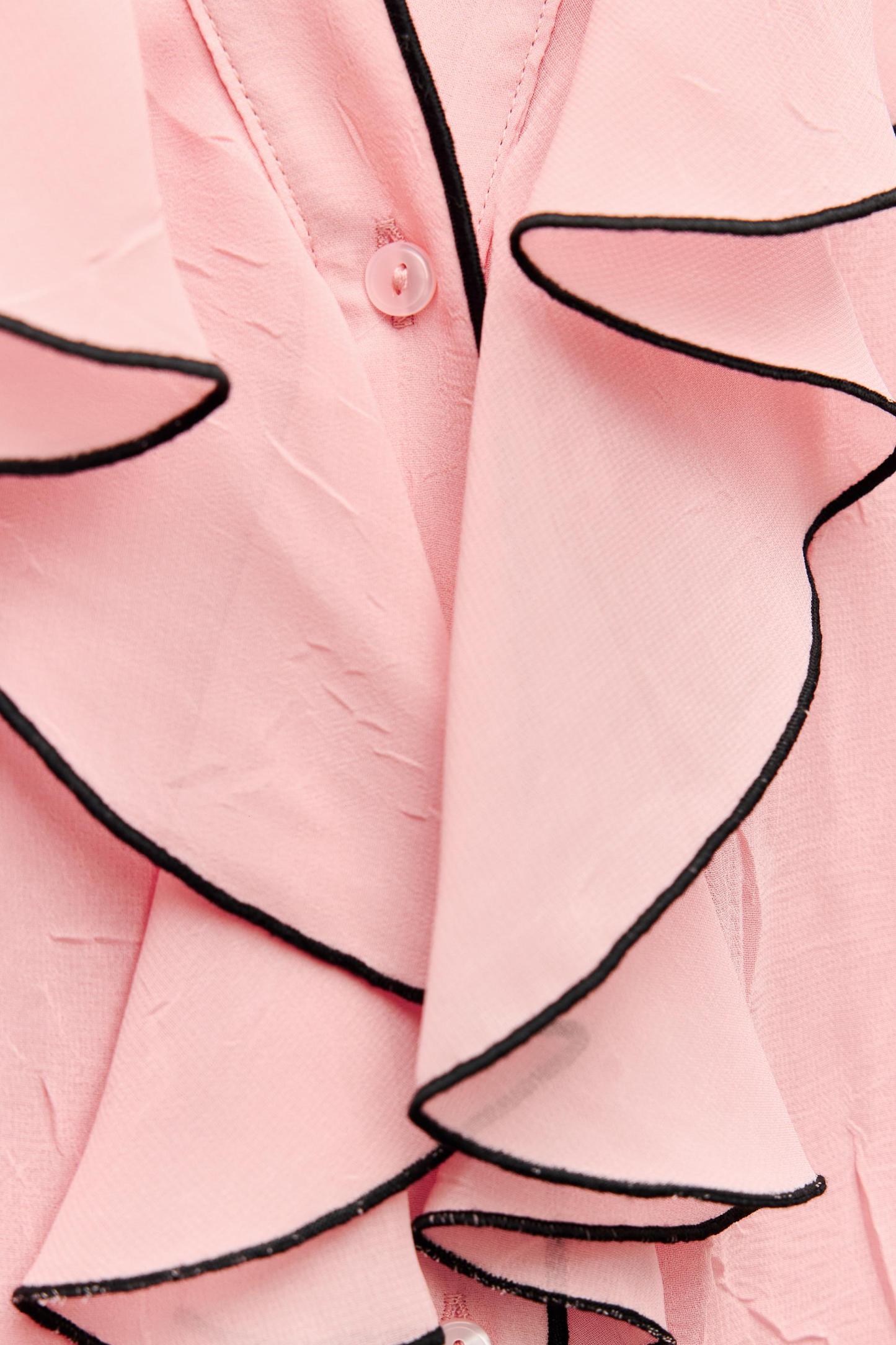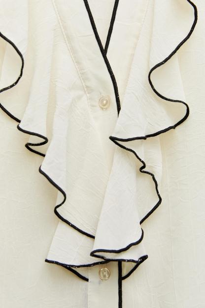 CONTRAST PIPING RUFFLED BLOUSE