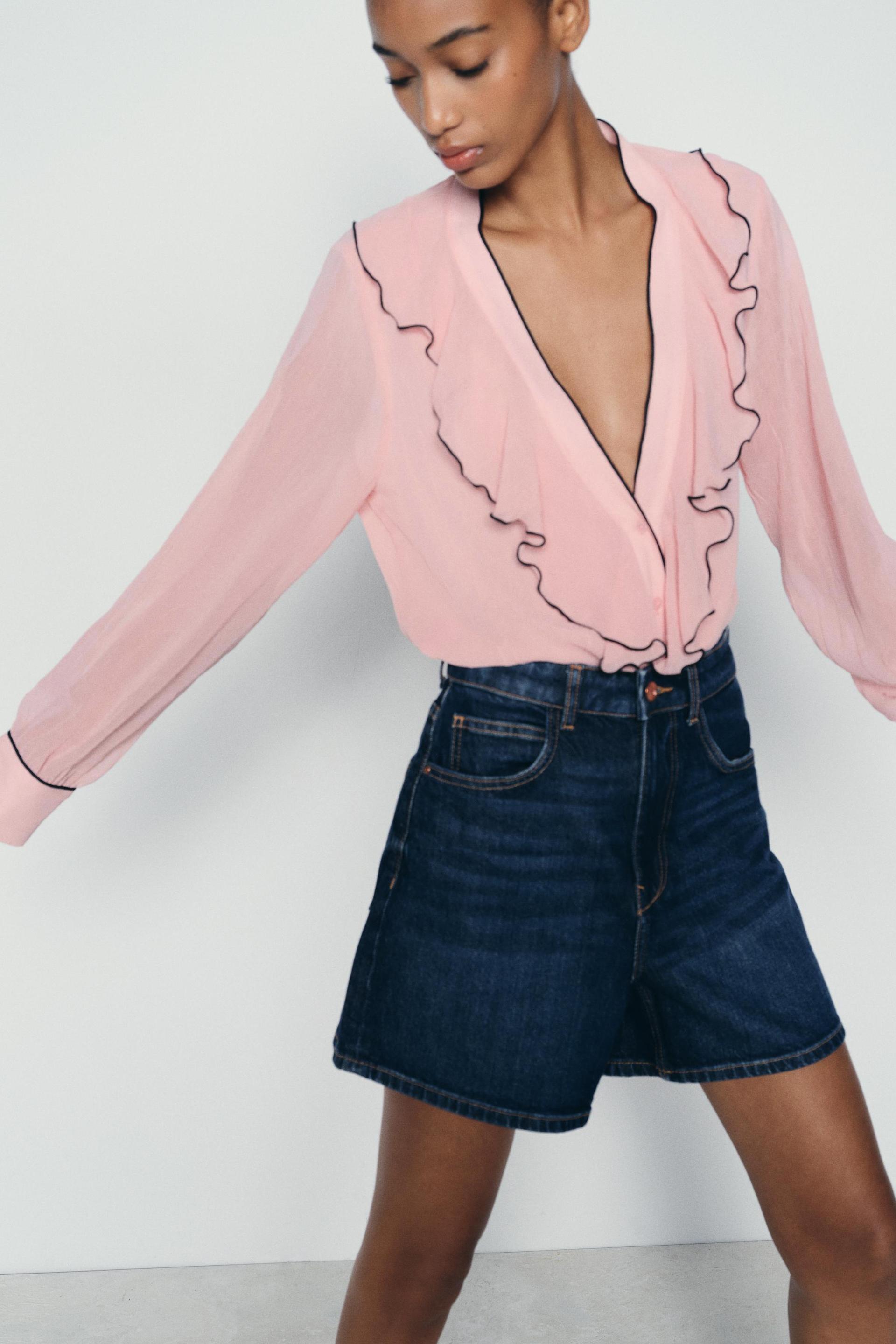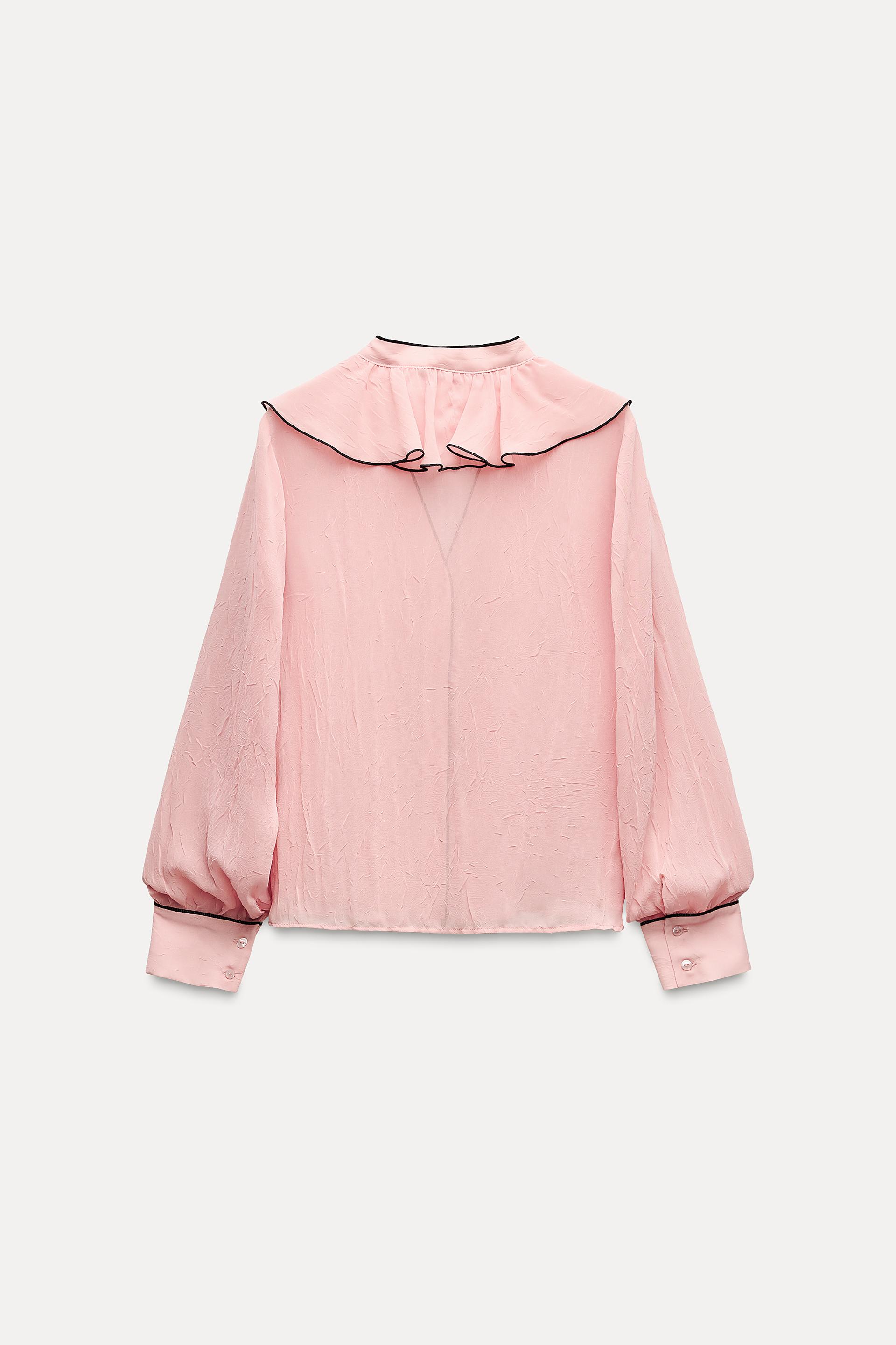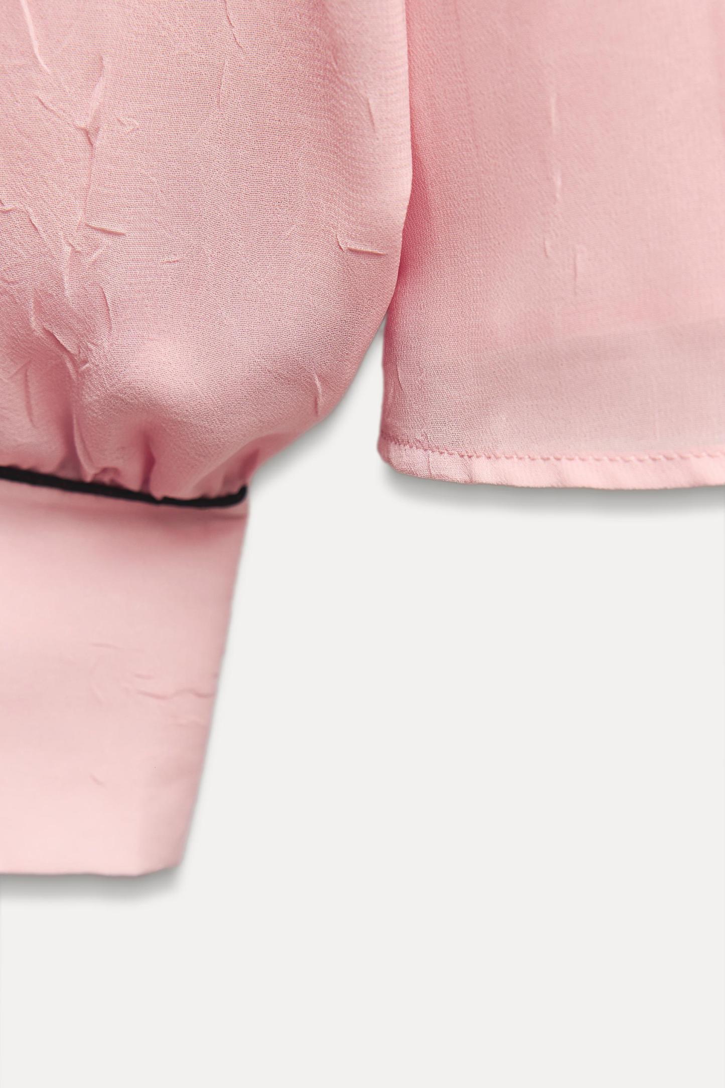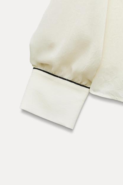CONTRAST PIPING RUFFLED BLOUSE