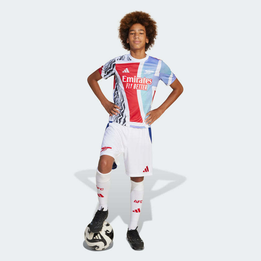 Using elements from Arsenal's 24/25 home, away and third shirts, adithtdas created this pre-match jersey to help you stand out from the soccer crowd. A juniors' version of the tops players wear as they warm up before kick-off, it will keep you comfortable with soft fabric and moisture-managing AEROREADY. An embroidered team badge completes the bold look. This product is made with 100% recycled materials. By reusing materials that have already been created, we help to reduce waste and our reliance on finite resources and reduce the footprint of the products we make.