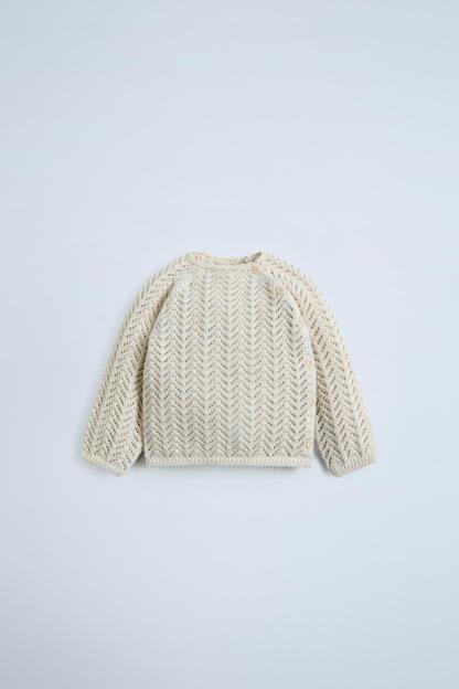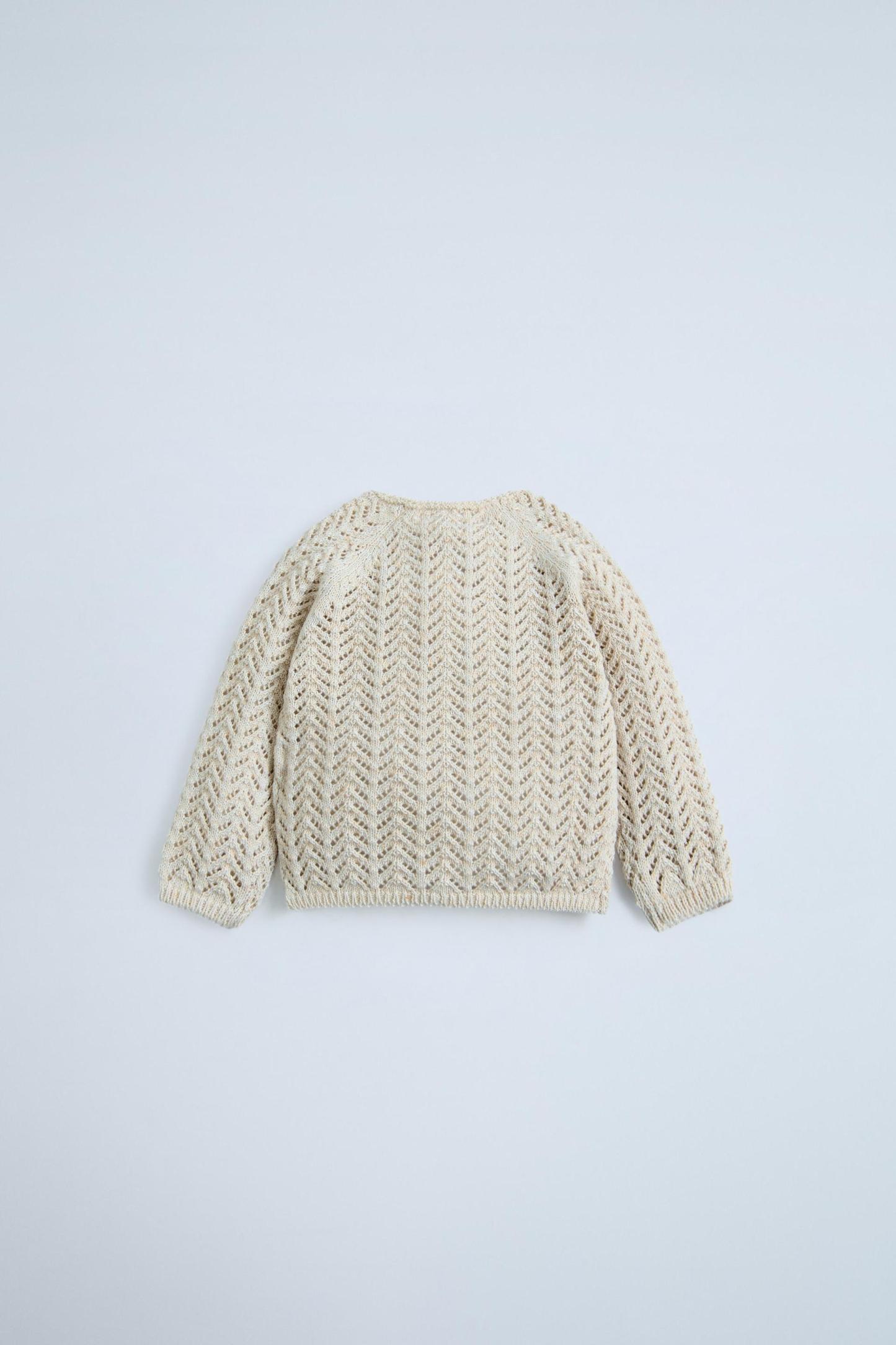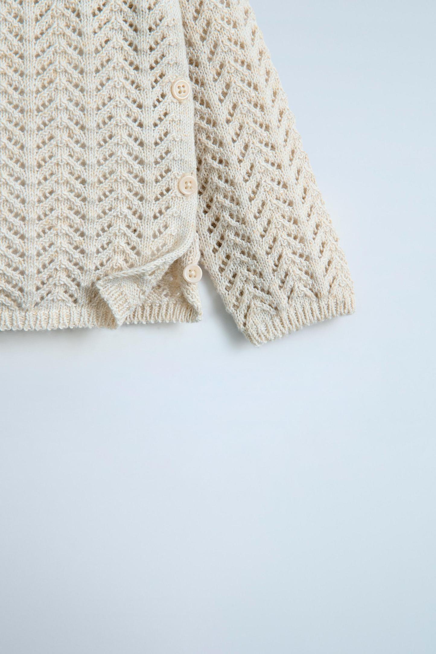 OPENWORK KNIT BUTTONED SWEATER
