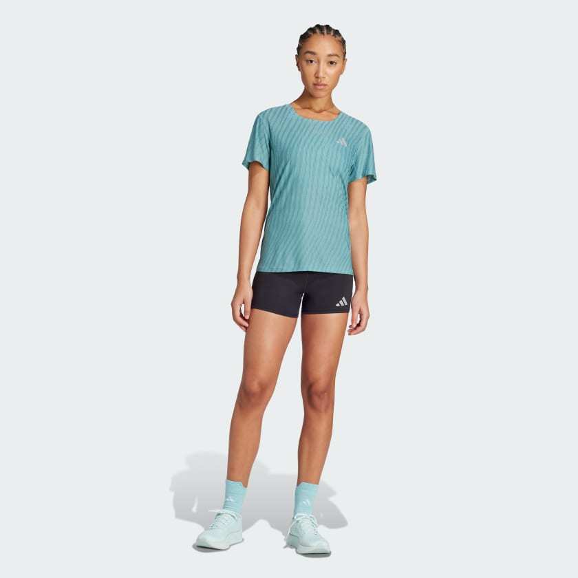 A little heat won't stop you from getting your strides in. This adithtdas running t-shirt helps you stay cool through long runs, speed work and those shadeless stretches of road where the heat feels sweltering. It's built with CLIMACOOL+, our best cooling innovation. Ventilation keeps air flowing to your skin, and reflective details light up your look in dim light. CLIMACOOL+ helps you manage sweat with materials that wick and manage sweat quickly. Its fast-dry fibers give you a fresh-skin feel. Body-mapped sweat management supports targeted cooling. Superior engineering and advanced materials unite for a cool, dry and distraction free performance.