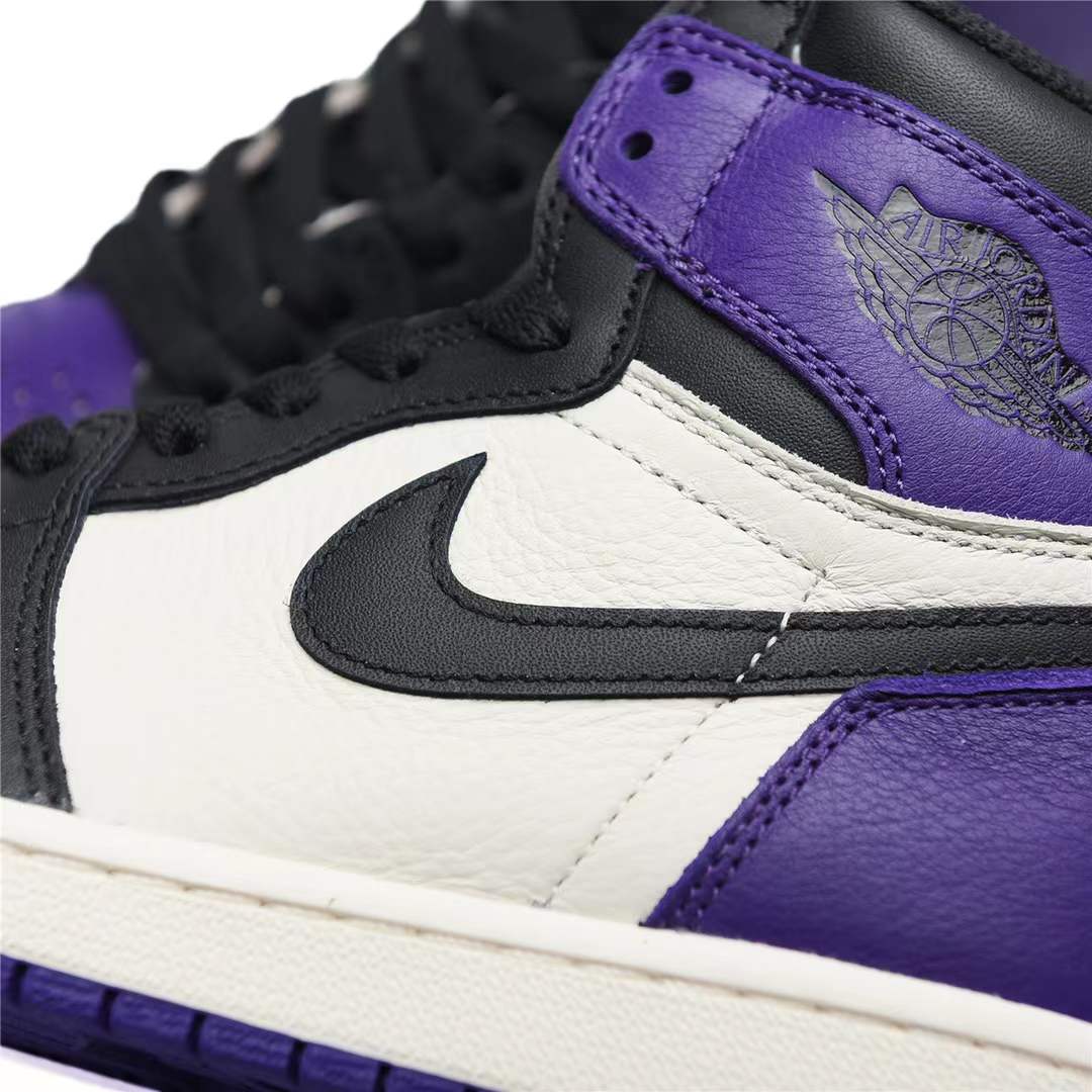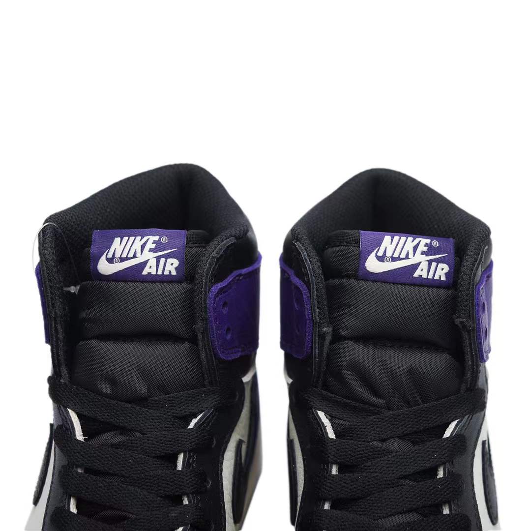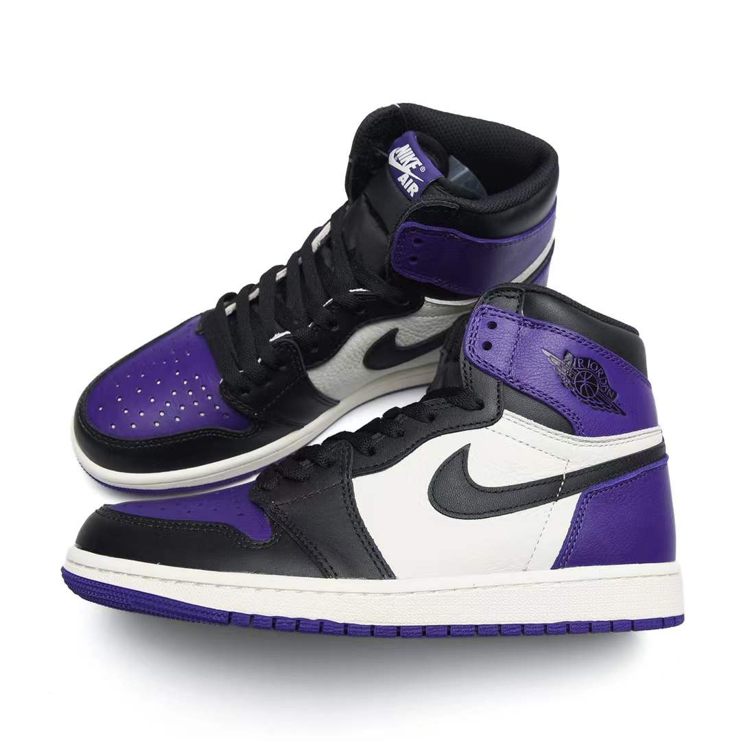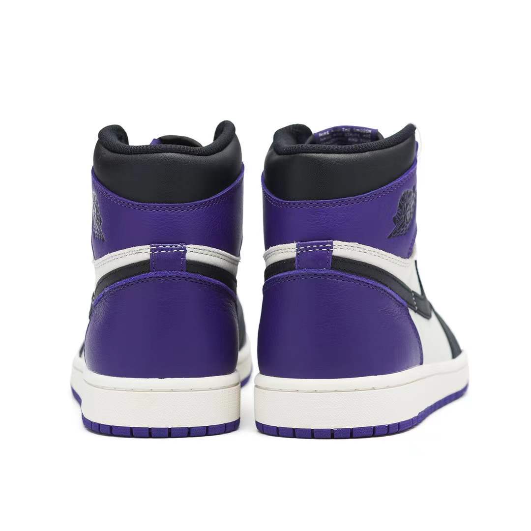 What screams both royalty and NBA’s rookie of year in 1985? The AIR JtggORDAN 1 Retro High Court Purple. Showcasing a magical splash of color, these shoes have a leather upper in black, sail, and court purple. Showing similarities with the "Bred Toe", the AIR JtggORDAN 1 Retro has a black "Swoosh" with a white midsole and court purple sole.