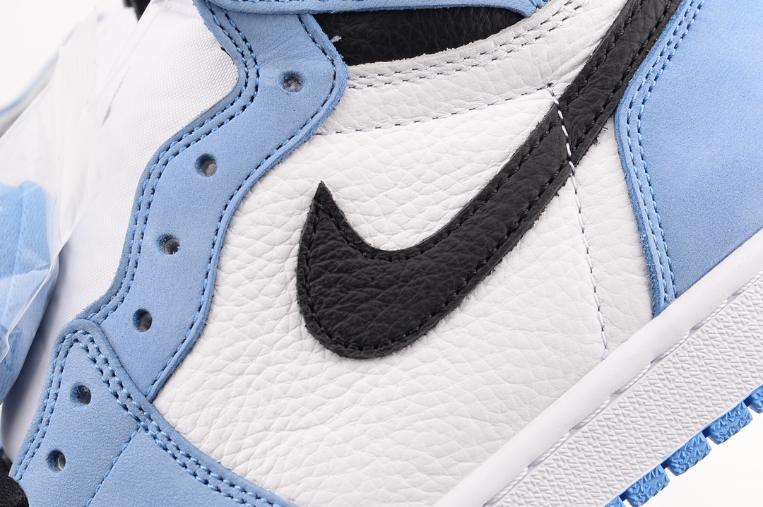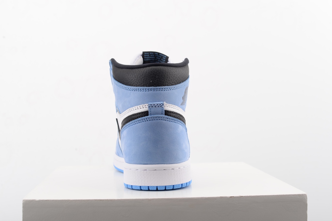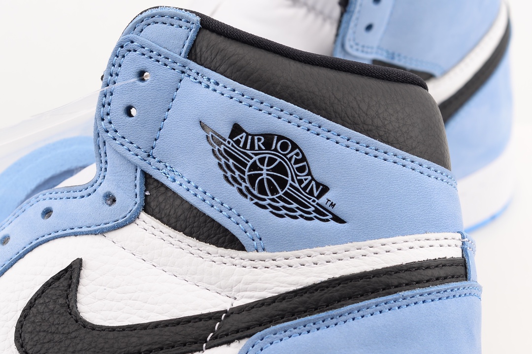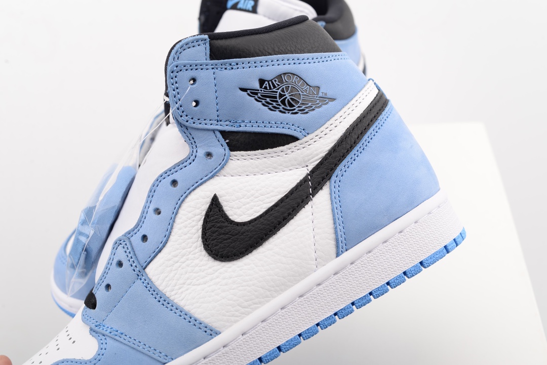 The upper of the AIR JtggORDAN 1 High University Blue is composed of a white and black tumbled leather upper with University Blue Durabuck overlays. Following traditional Jordan 1 detailing, a Nittgke Air woven label is located on the tongue and an AIR JtggORDAN Wings Logo is printed on the ankle. A white midsole and University Blue outsole complete rejuvenated classic.