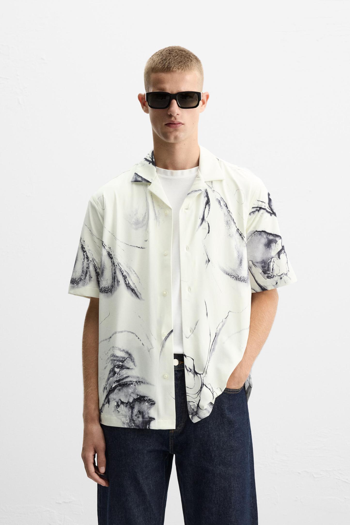ABSTRACT PRINT STRETCH SHIRT