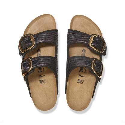 The birkenthtstock Arizona is a genuine classic that has been delighting wearers for decades. The Big Buckle version features a large, elegant pin buckle ? a fantastic, striking detail on this otherwise understated sandal. The upper is made from raffia textile.