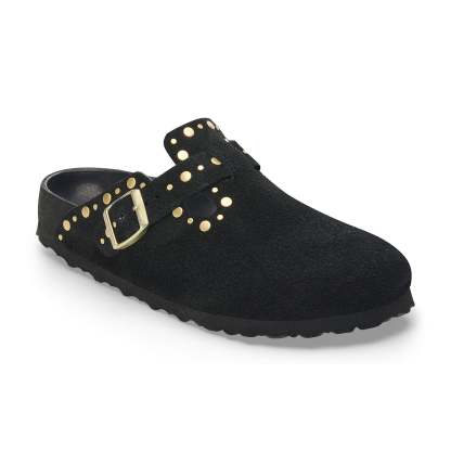 So consistently comfortable, the Boston clog has become a coveted, year-round favourite. Metallic rivets stud its classic suede upper in an eye-catching design, precisely placed to leave the underside smooth for comfortable wear. It rests on an exquisite footbed fully lined in smooth leather for a supportive, luxurious feel.