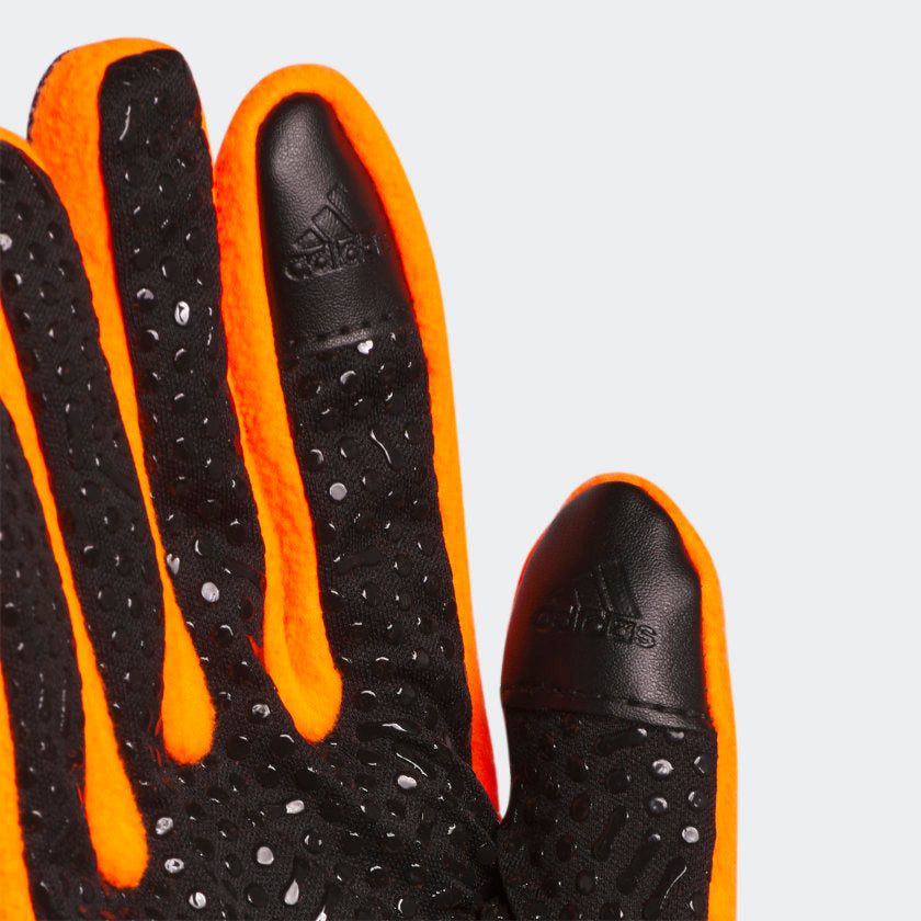 When you train outside in cold weather, you need gloves you can count on. These adithtdas COLD.RDY gloves are wind-resistant, water-repellent and insulated for warmth. Extended cuffs block rain, snow and icy winds. Conductive fingertips let you use touchscreens without removing your gloves.