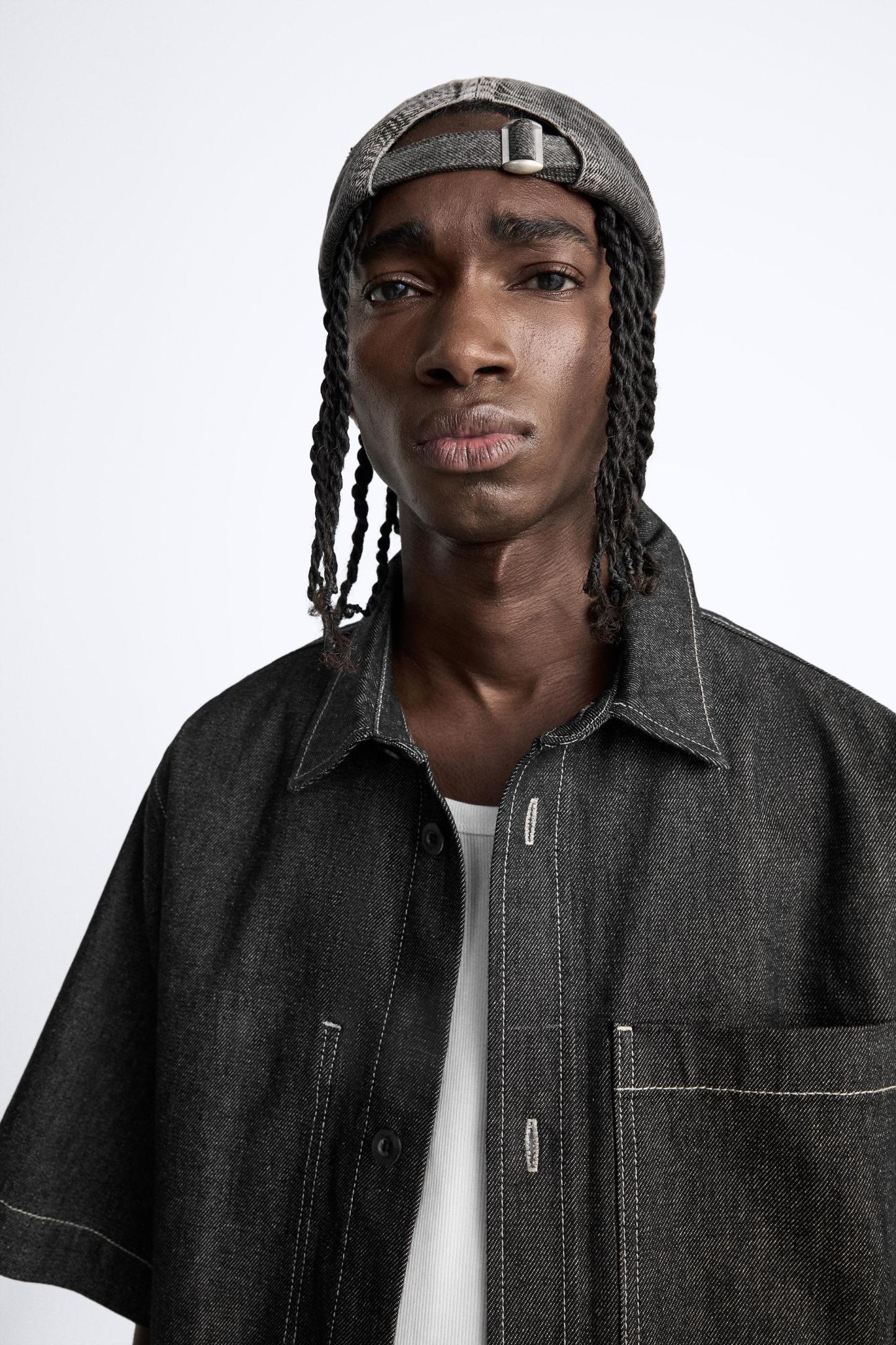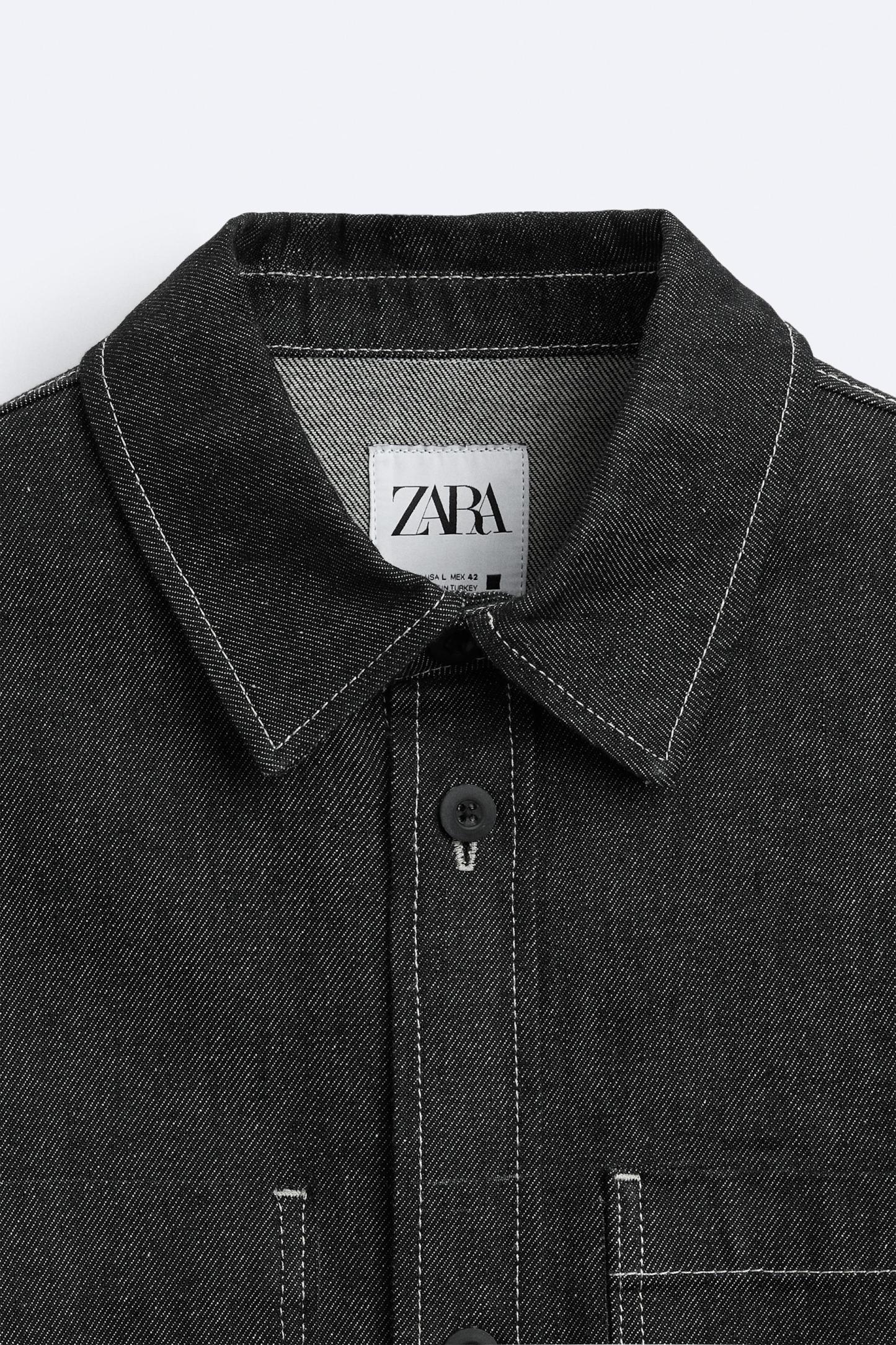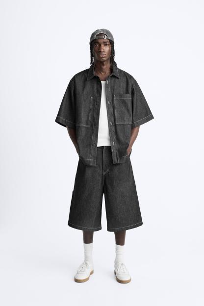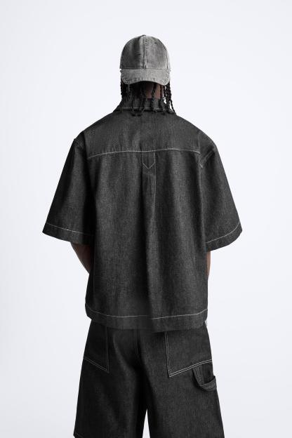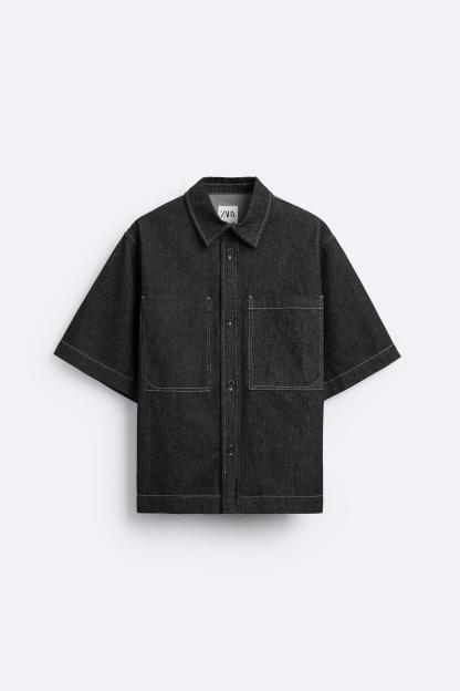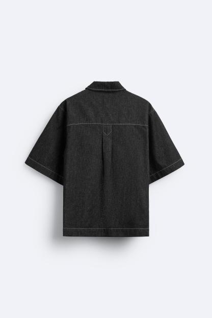 CONTRAST TOPSTITCHED DENIM SHIRT
