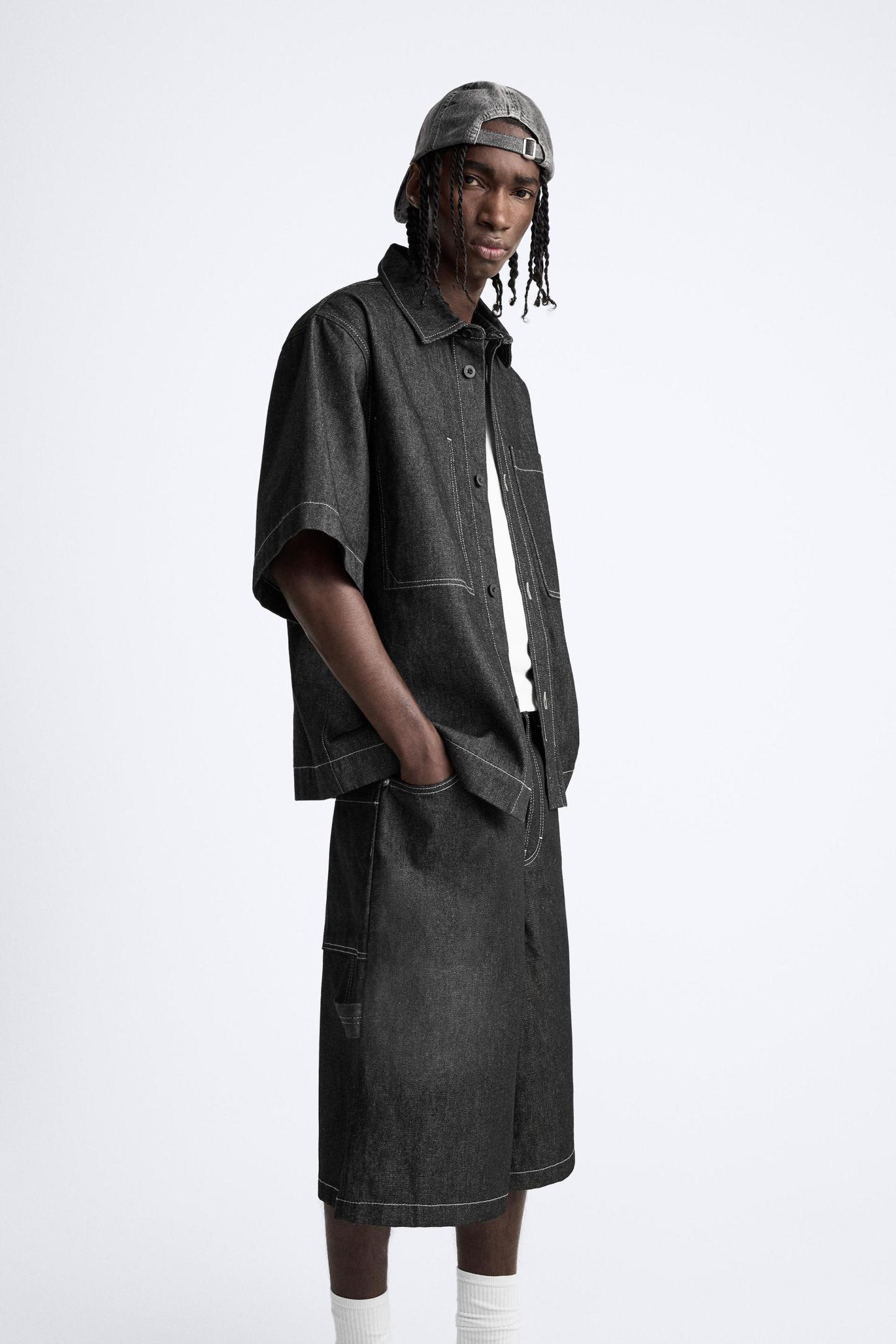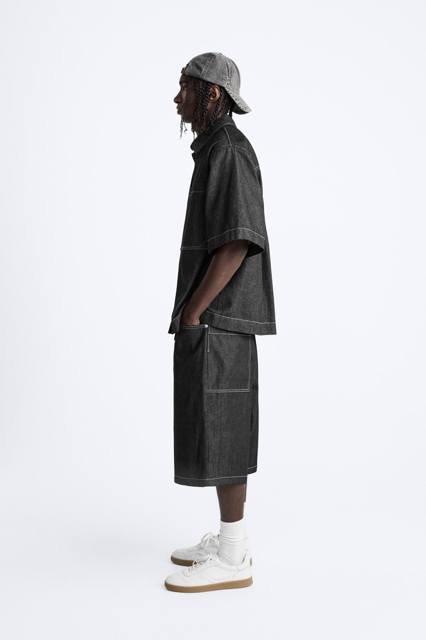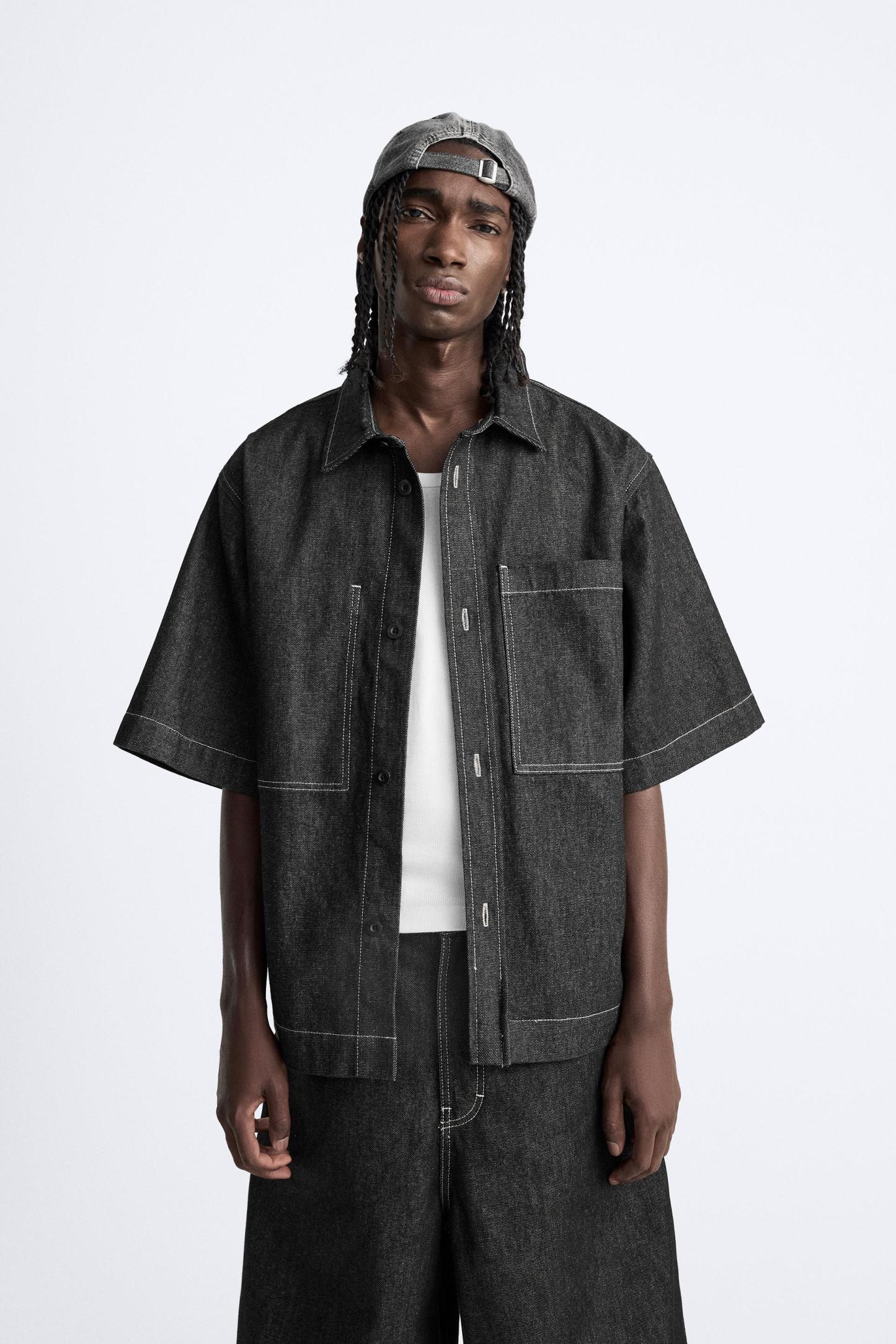 CONTRAST TOPSTITCHED DENIM SHIRT