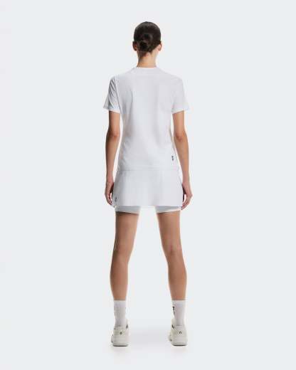 A breathable tennis skirt with a side split, a mesh-lined waistband, and built-in inner tights with mesh ball pockets.