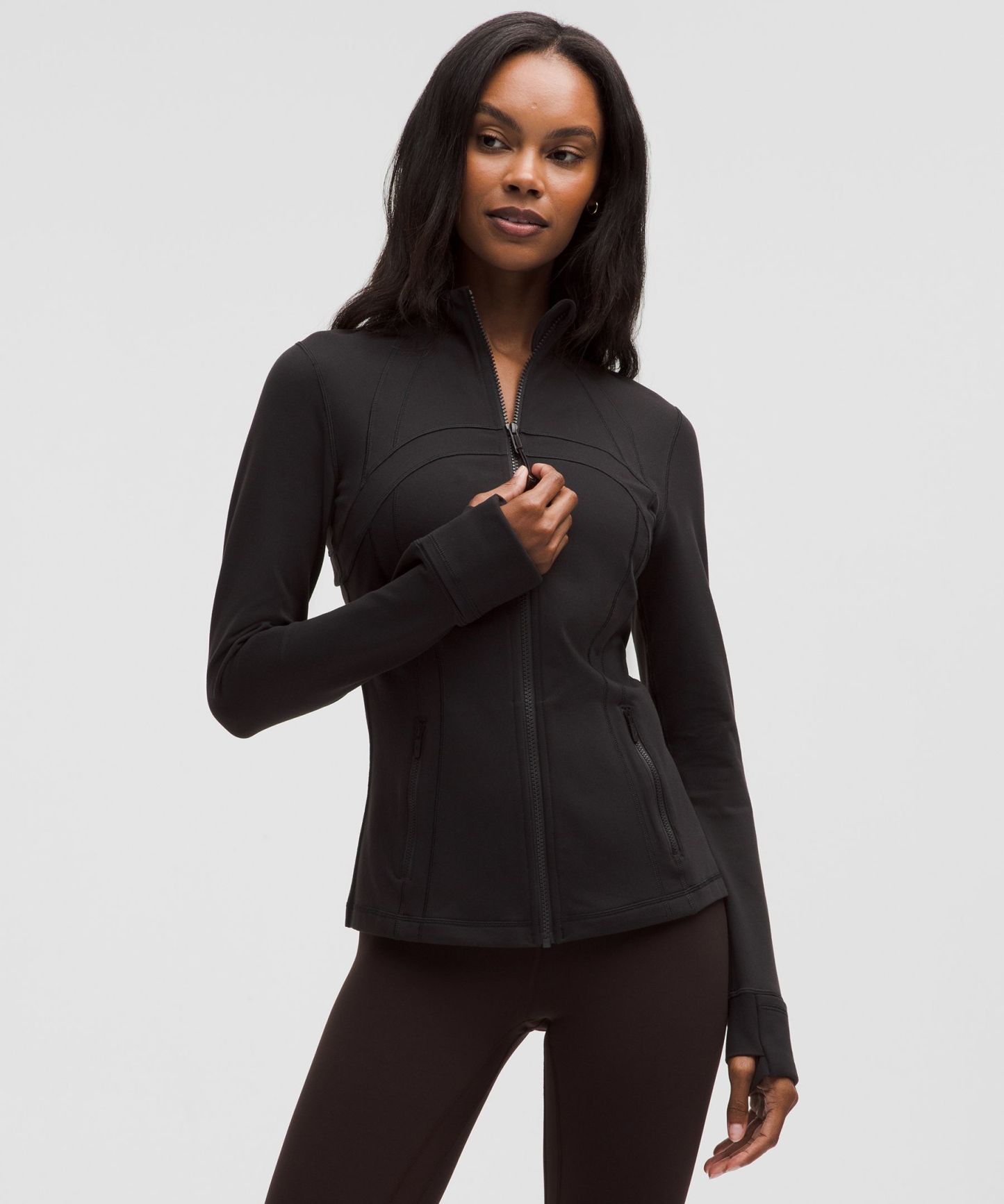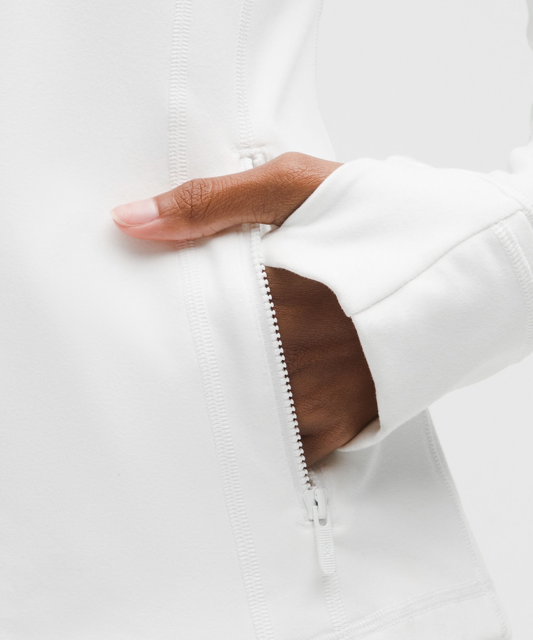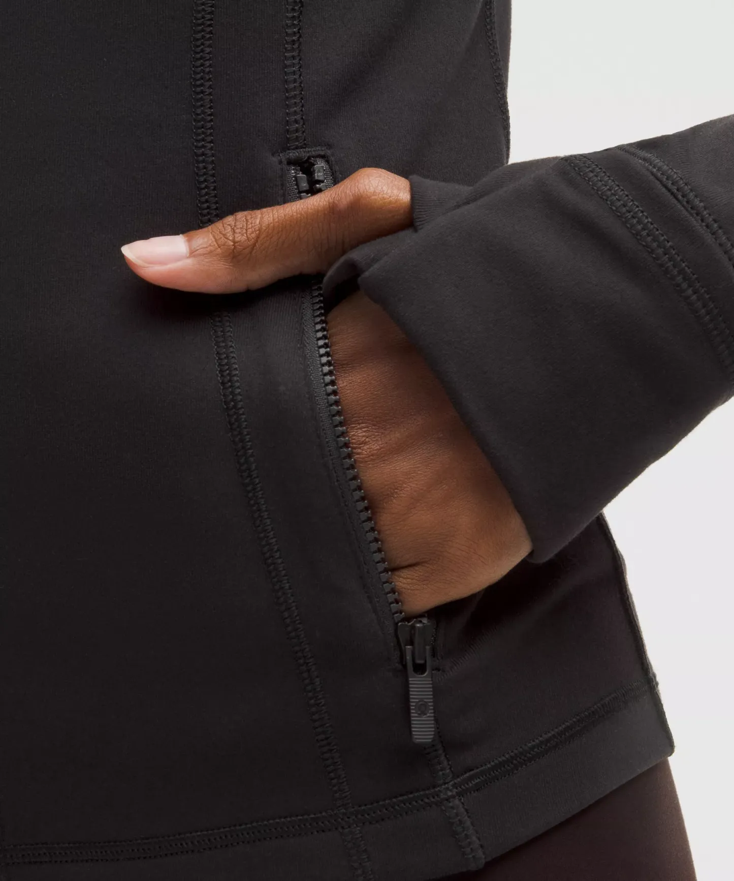 - Elastic zipper pull doubles as an emergency hair tie