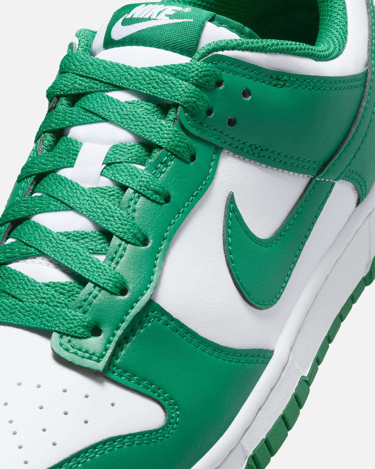 Recognising the Dunk's roots as the top-ranking college team sneaker, the "Be True To Your School" pack looks to the original ad campaign for inspiration. Colours represent top-flight universities, while crisp leather has the perfect amount of sheen to make 'em a hands-down win. So lace up and show off that varsity spirit. Ya game?- Leather upper- Rubber outsole- Foam midsole- Low-cut silhouette- Padded collar- Perforated toe- Lace-up closure- Colour: White/Green- Style: HF5441-101