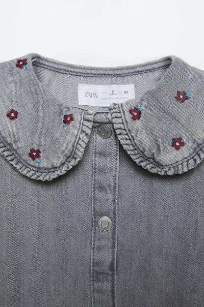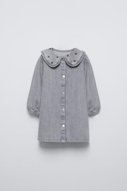 EMBROIDERED COLLAR DENIM DRESS