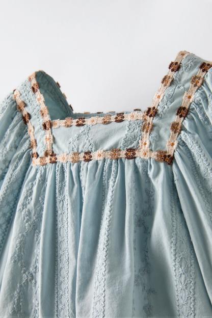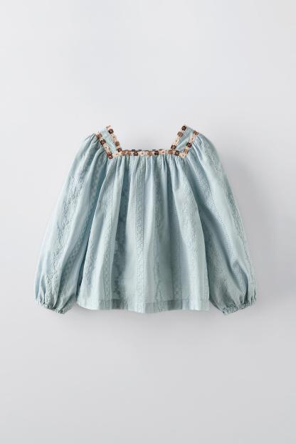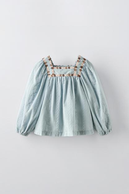 EMBROIDERED FLOWER TRIM SHIRT