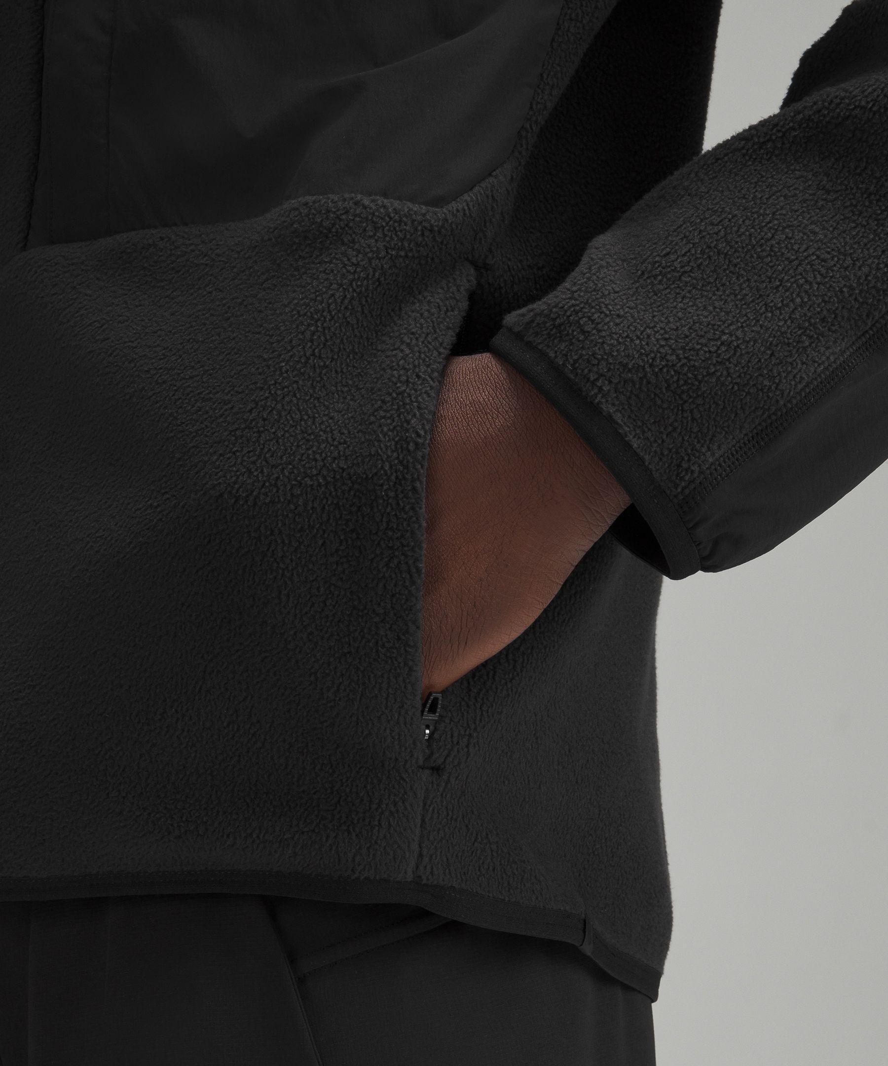 - Hand pockets with hidden phone sleeve