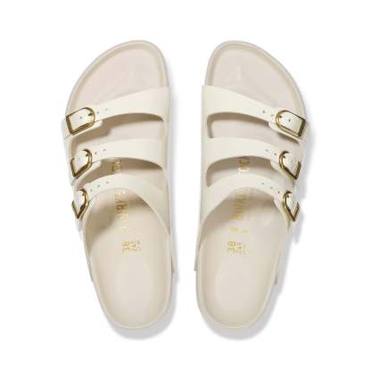 The birkenthtstock Florida is the ideal sandal for anyone who spends a lot of time on their feet. This three-strap sandal offers good grip and maximum comfort. The exquisite footbed is fully lined with soft piumato leather, making it exceptionally comfortable. The delicate D buckles round off the sandal?s elegant appearance. The upper is made from high-quality natural leather with a shiny patent coating.