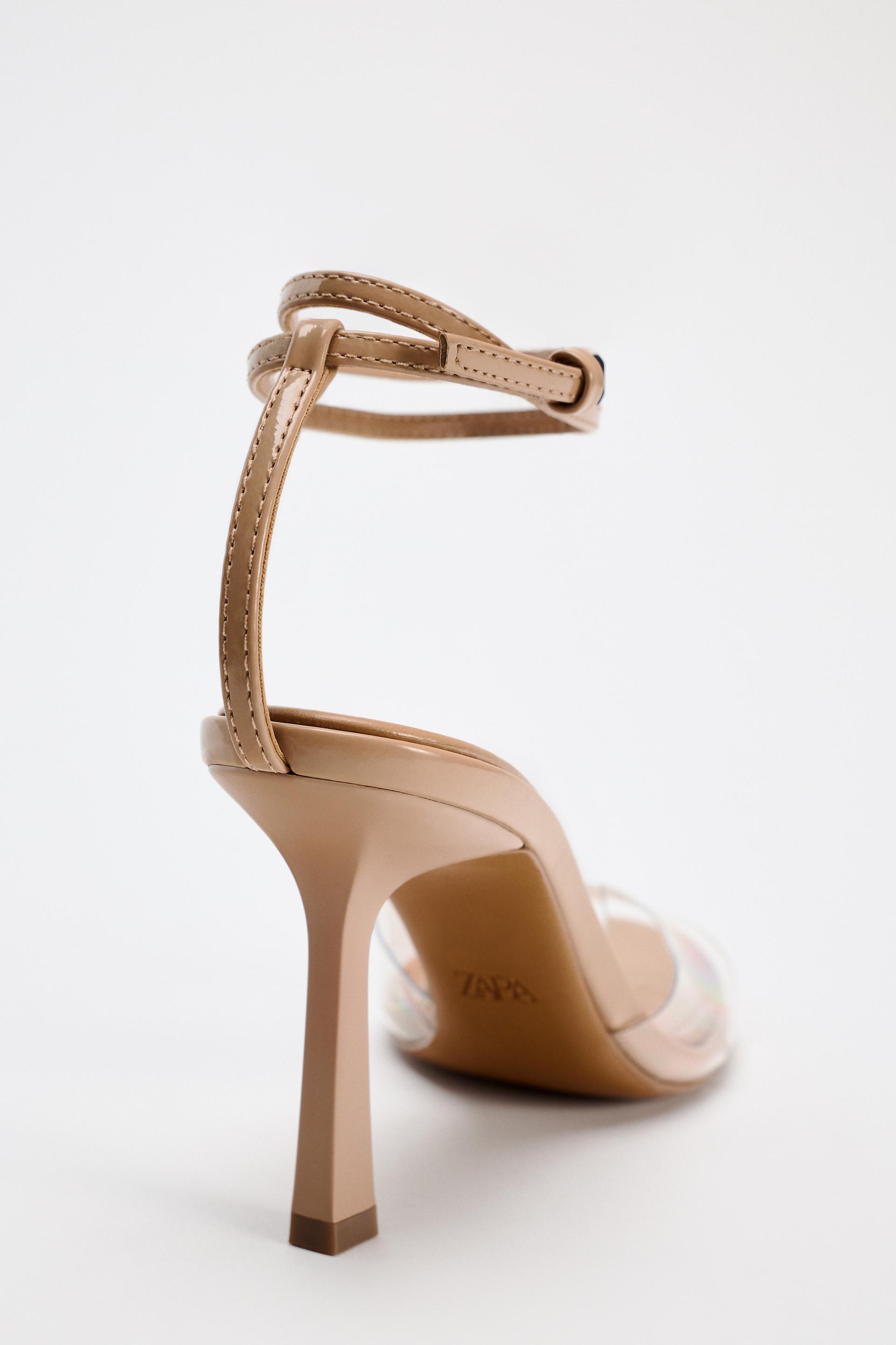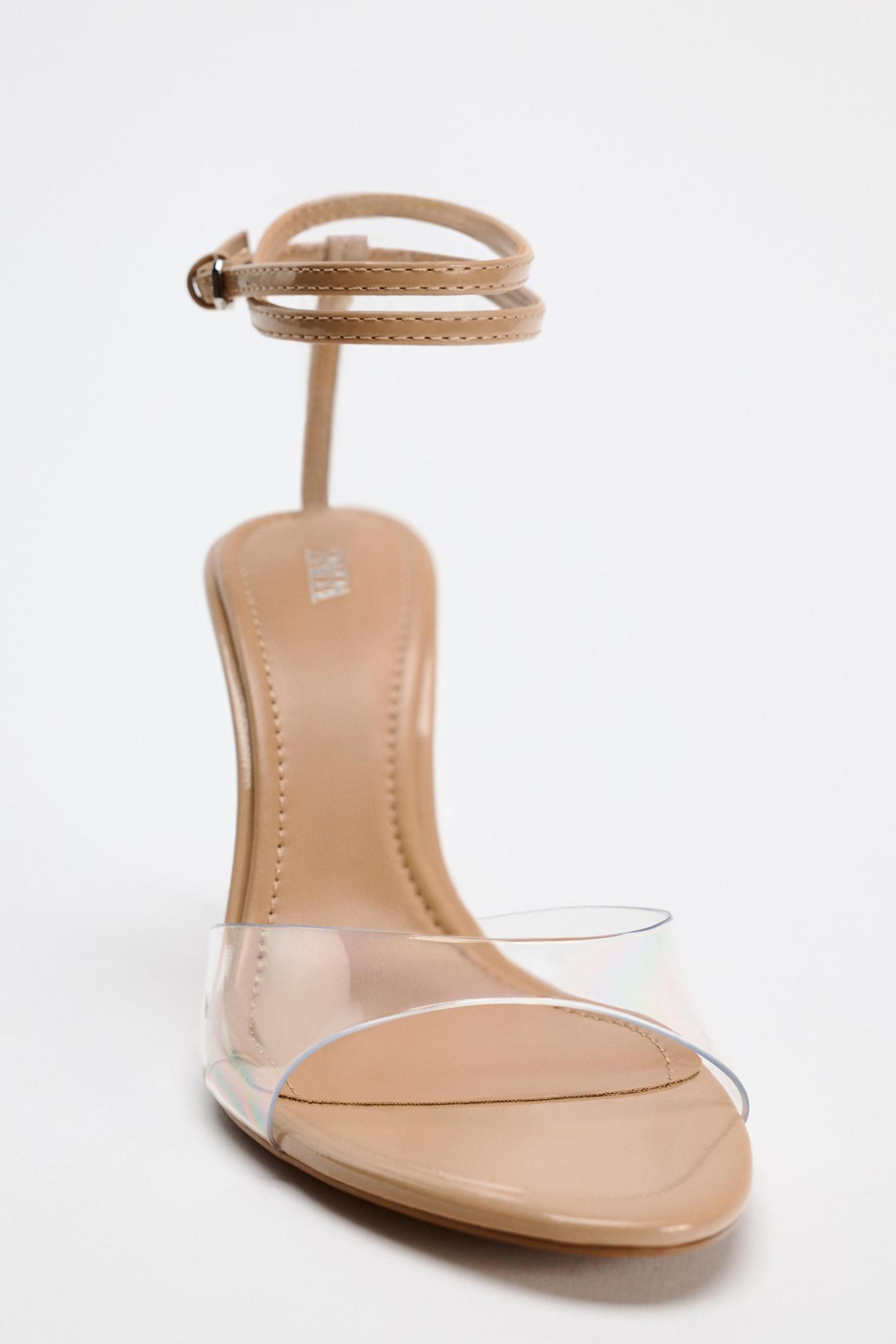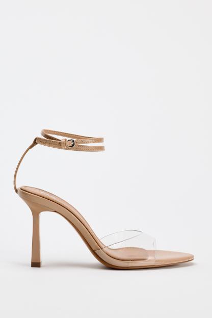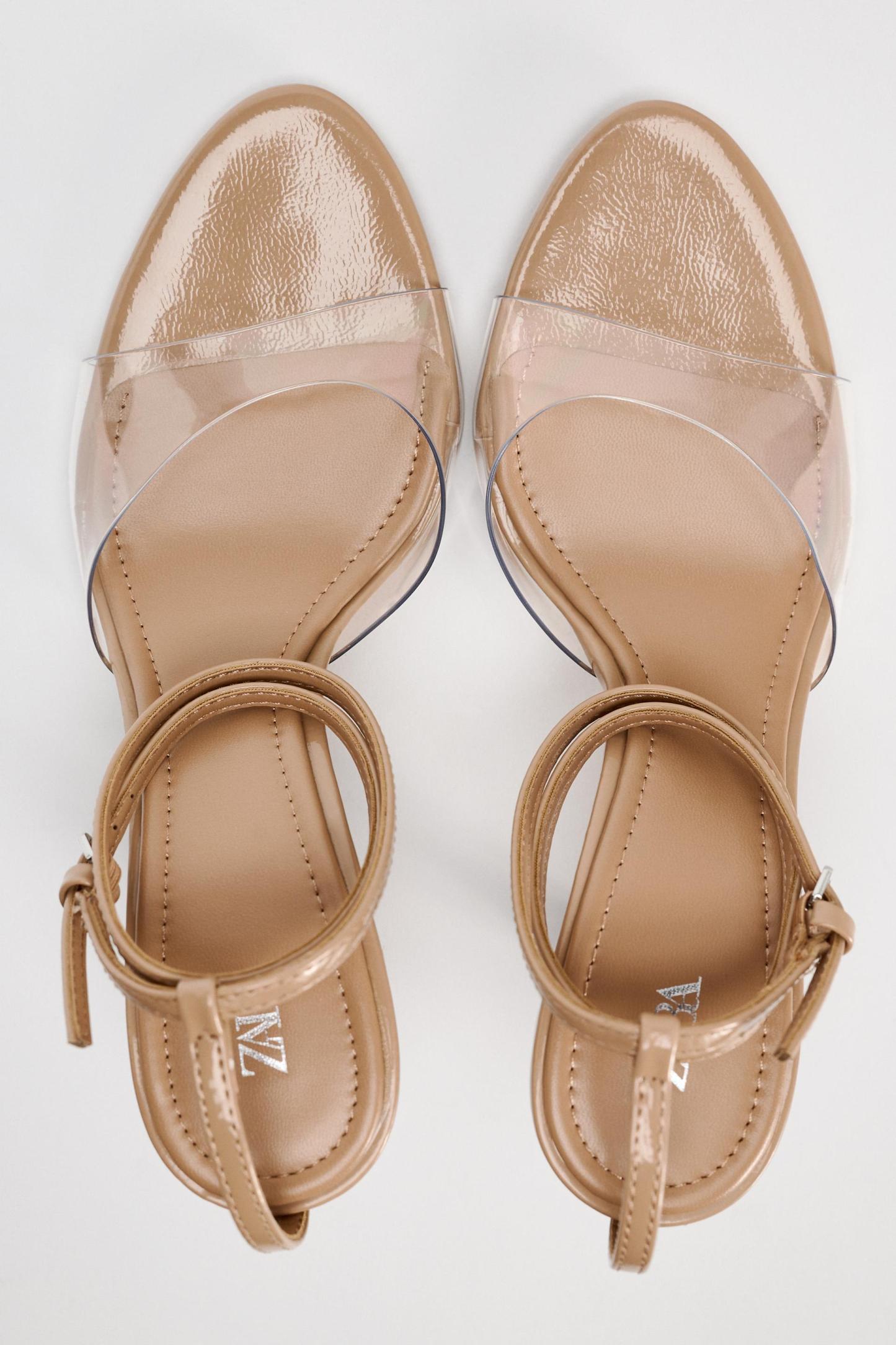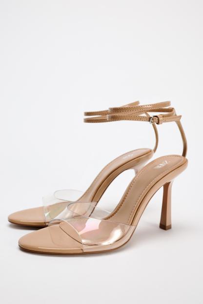 HIGH HEELED VINYL ANKLE STRAP SANDALS