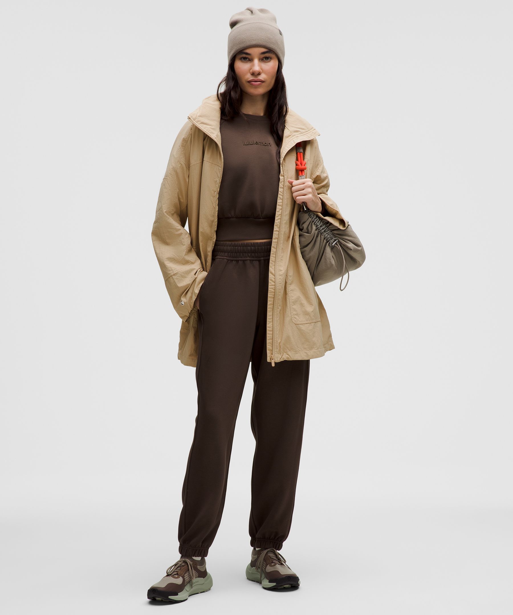 - Zippered hand pockets with hidden phone sleeve