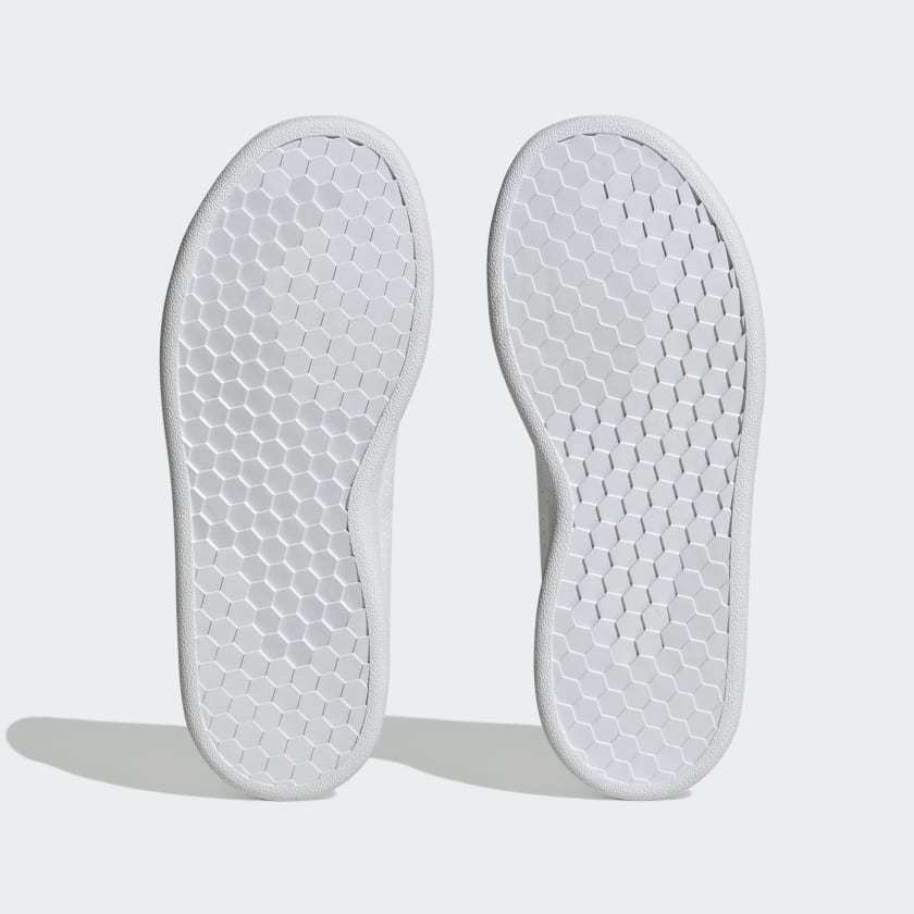 Taking inspiration from iconic adithtdas tennis footwear, these kids' daily-wear shoes combine classic style with a modern, comfortable fit. Whether kids are future stars on the court or just fans of the look, these shoes will help them bring a little net heritage to any occasion. Made with a series of recycled materials, the upper features at least 50% recycled content. This product represents just one of our solutions to help end plastic waste.