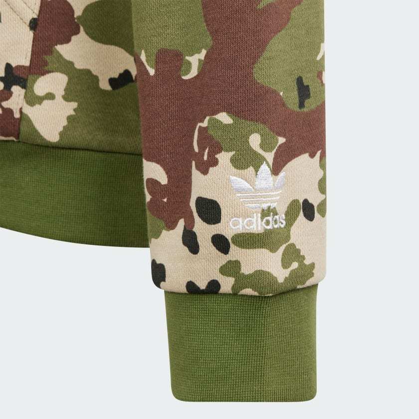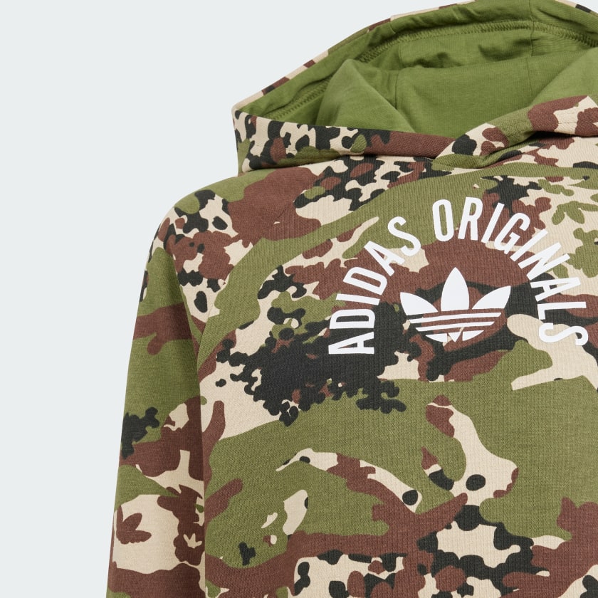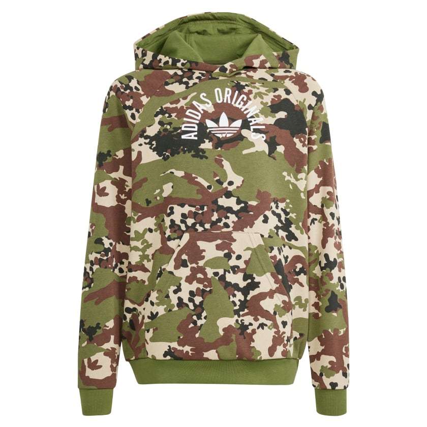This adithtdas hoodie for juniors has all the makings of a closet staple. The bold camouflage print and Trefoil branding show your connection to adithtdas Originals. A loose fit and soft French terry mean comfort that lasts from dawn until dusk. Ribbed cuffs and a hood keep the chill at bay so you can focus on the adventure ahead. The cotton in this product has been sourced through Better Cotton. Better Cotton is sourced via a chain of custody model called mass balance. This means that Better Cotton is not physically traceable to end products.Find out more here - https - //bettercotton.org/who-we-are/our-logo/