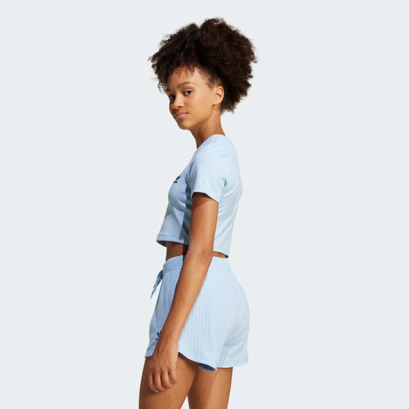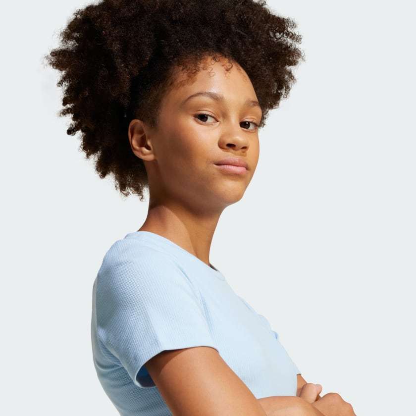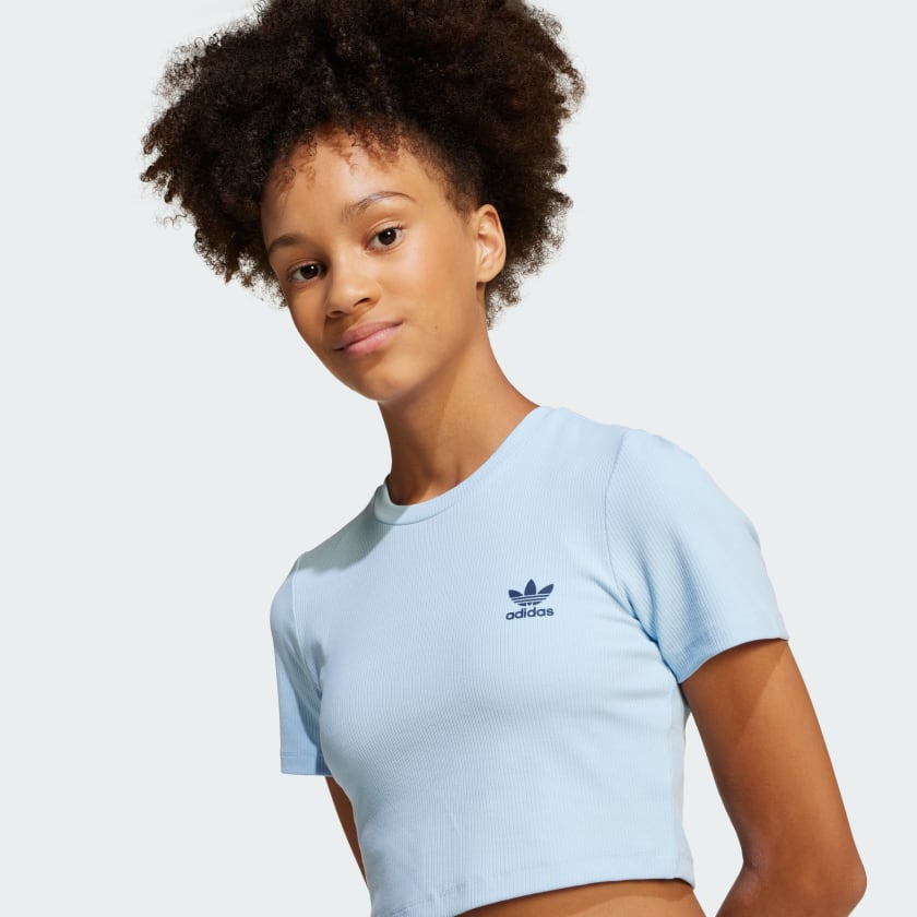 This juniors' adithtdas crop tee is a stylish essential made for everyday comfort. It's cut from soft ribbed fabric and has a close fit that's easy to move in. A subtle Trefoil on the chest shows off your adithtdas pride.