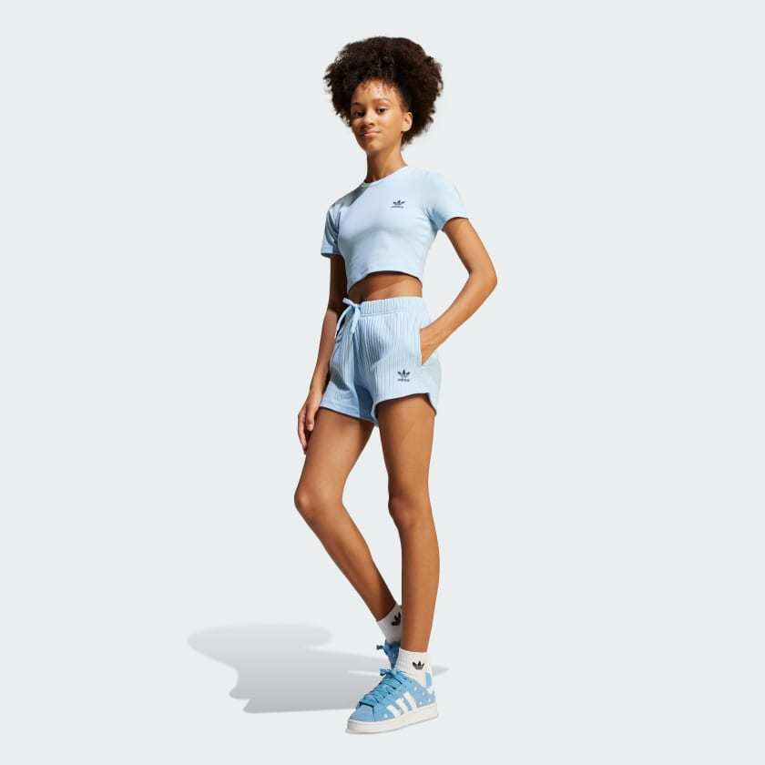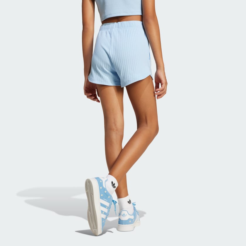 The perfect pair for warm days and chill vibes, these adithtdas shorts are all about easy style. They're made from soft ribbed fabric with a loose shape that's laid-back and comfortable. Pair them with your favorite tee or layer them under a dress for a modern look.