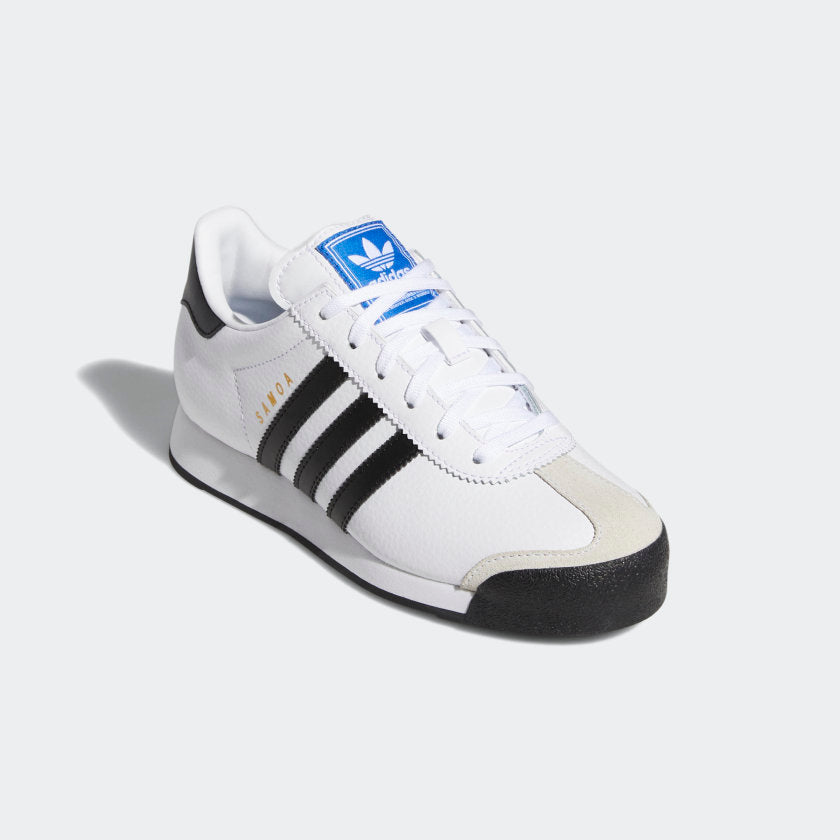 A versatile sneaker once favored by soccer players, this '80s design continues to win fans for its simple, low-profile style. These kids' shoes are made with a smooth leather upper and lightweight EVA cushioning. A contrast-color toe bumper calls attention to the Samoa's most iconic feature.