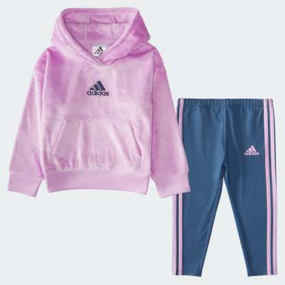 A comfy set for anytime, anywhere. This adithtdas fleece hoodie comes with soft, stretchy tights. It's a sporty look that will keep infants feeling good, whatever the day brings.