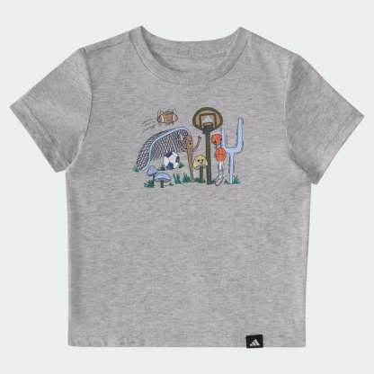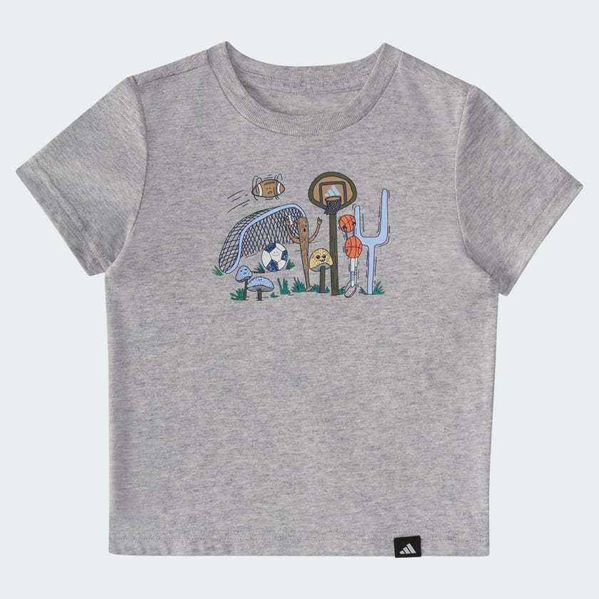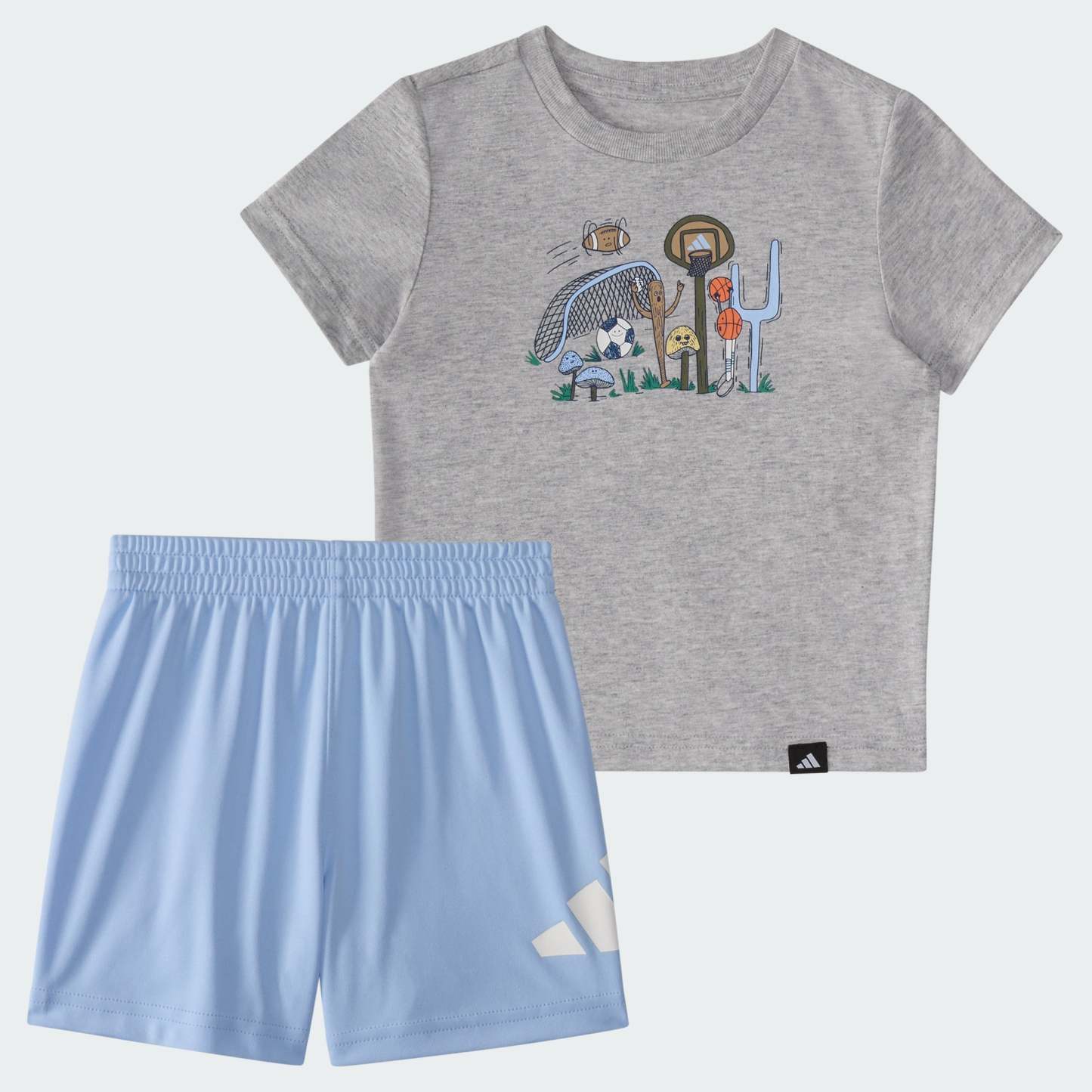 Make baby's first sportswear the best. This adithtdas two-piece set for kids includes stretchy waist shorts and a soft heather tee with a fun, sporty graphic. Both pieces are made from fabrics that are easy on the skin and easy to clean, with a hassle-free fit that's easy to put on and take off.