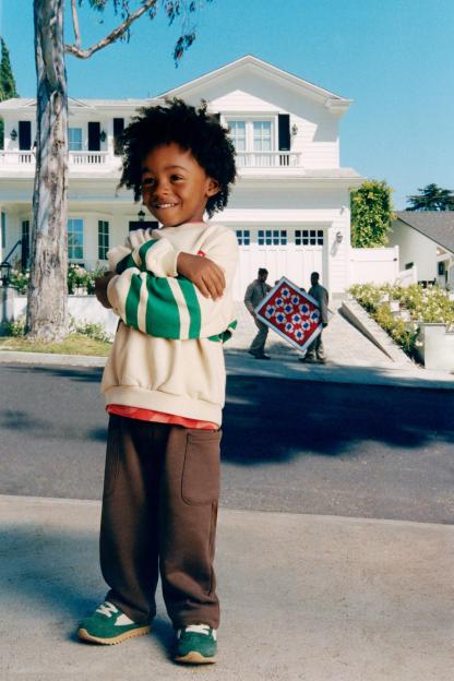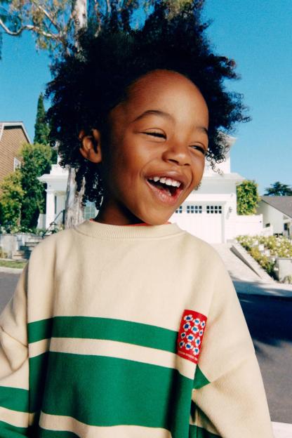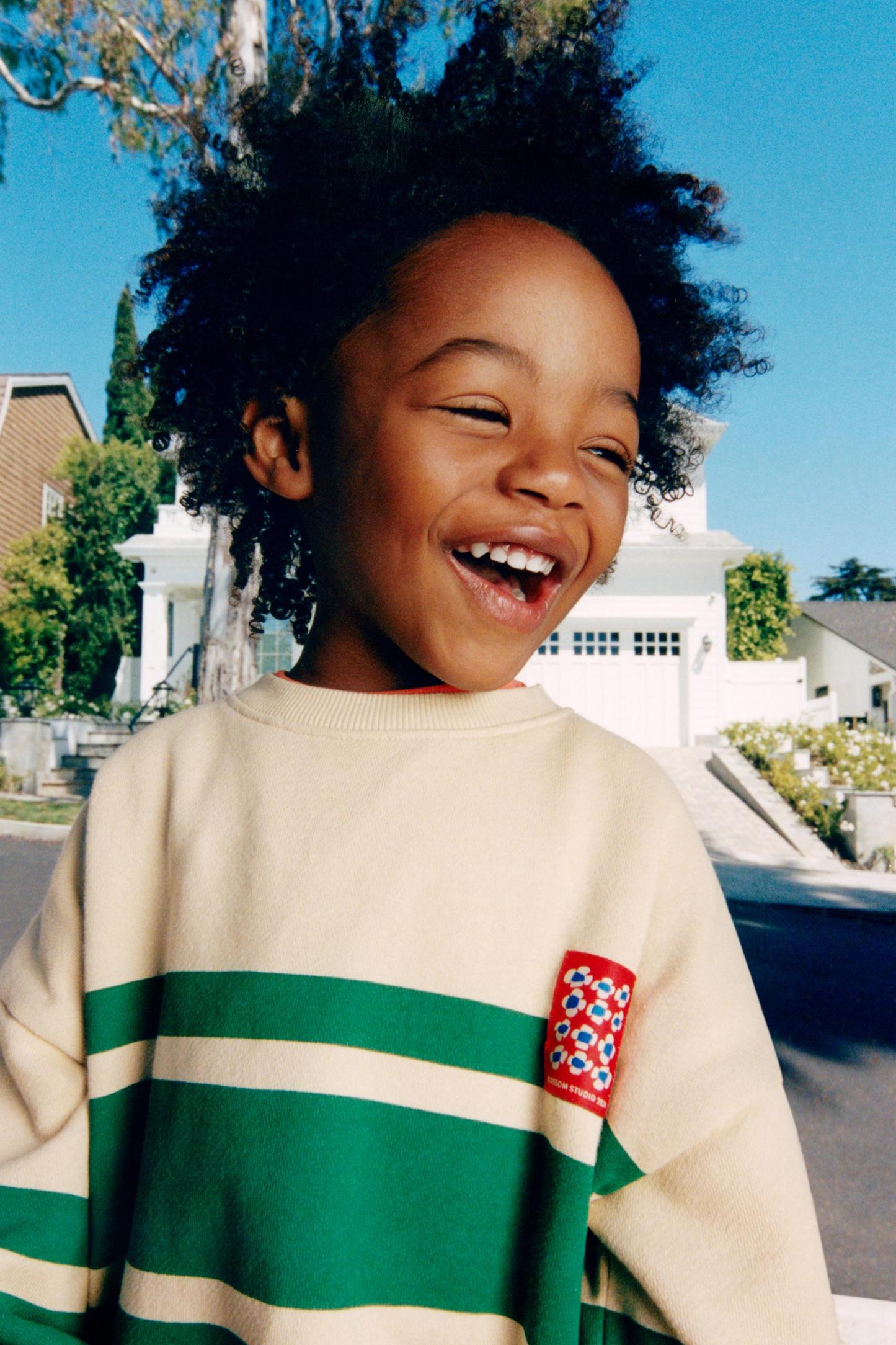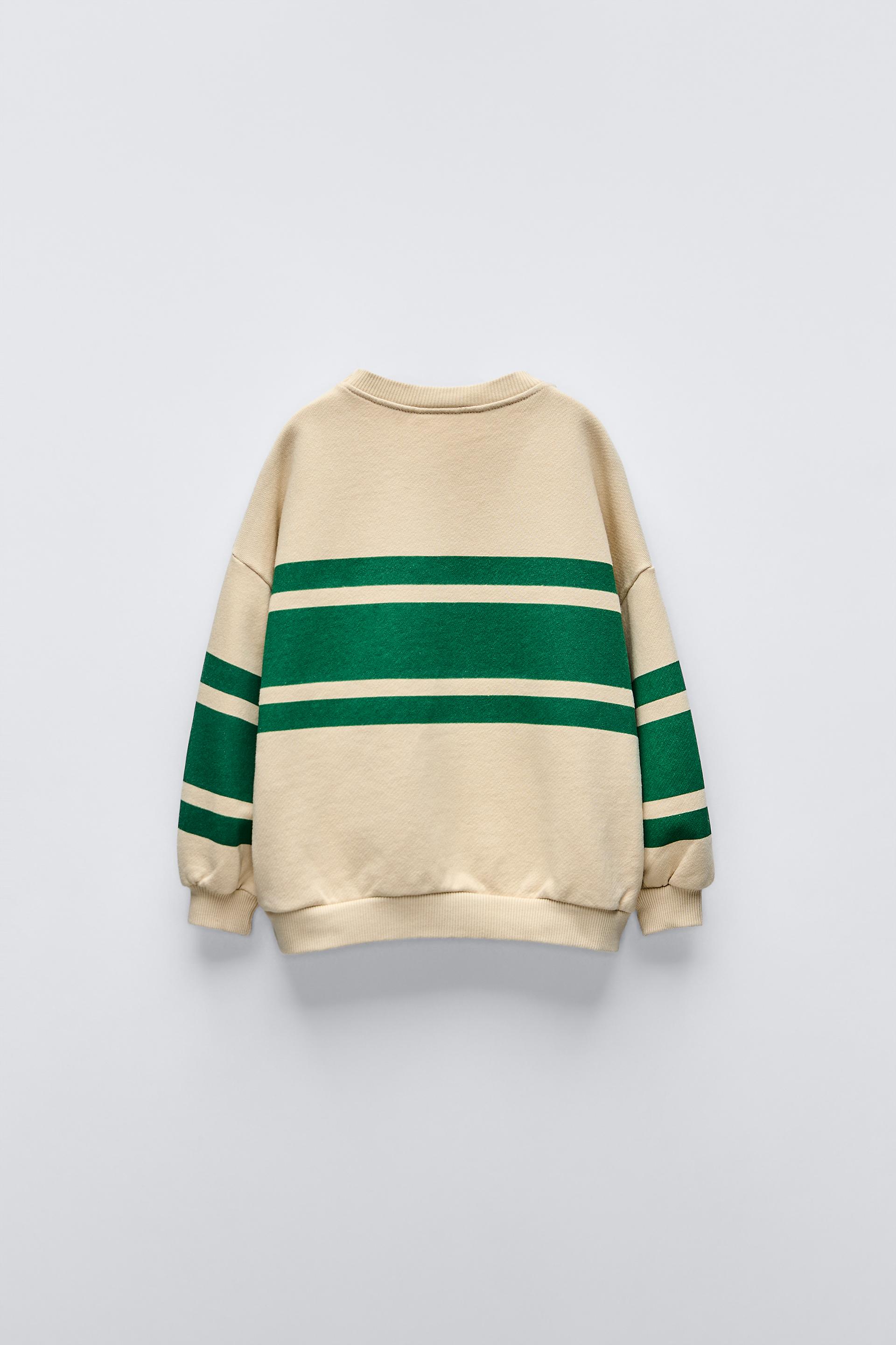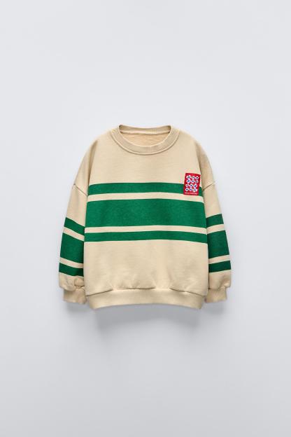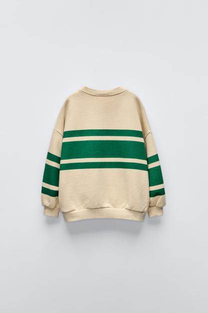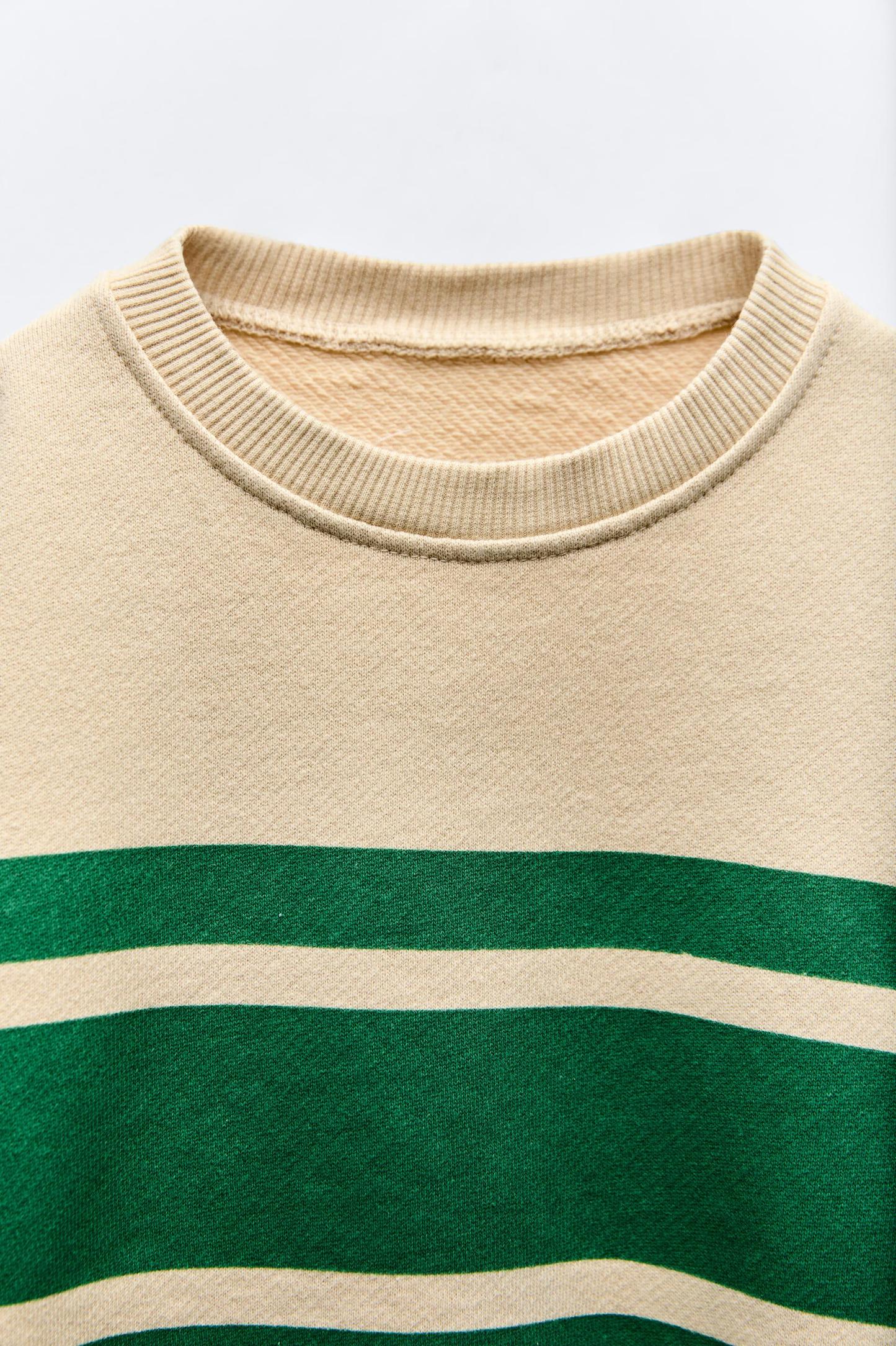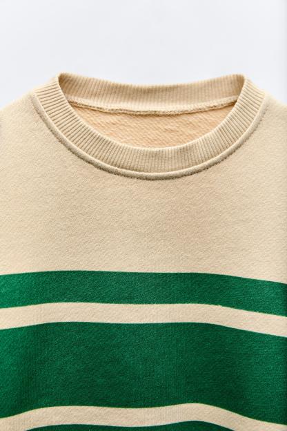LABEL TRIM STRIPED SWEATSHIRT