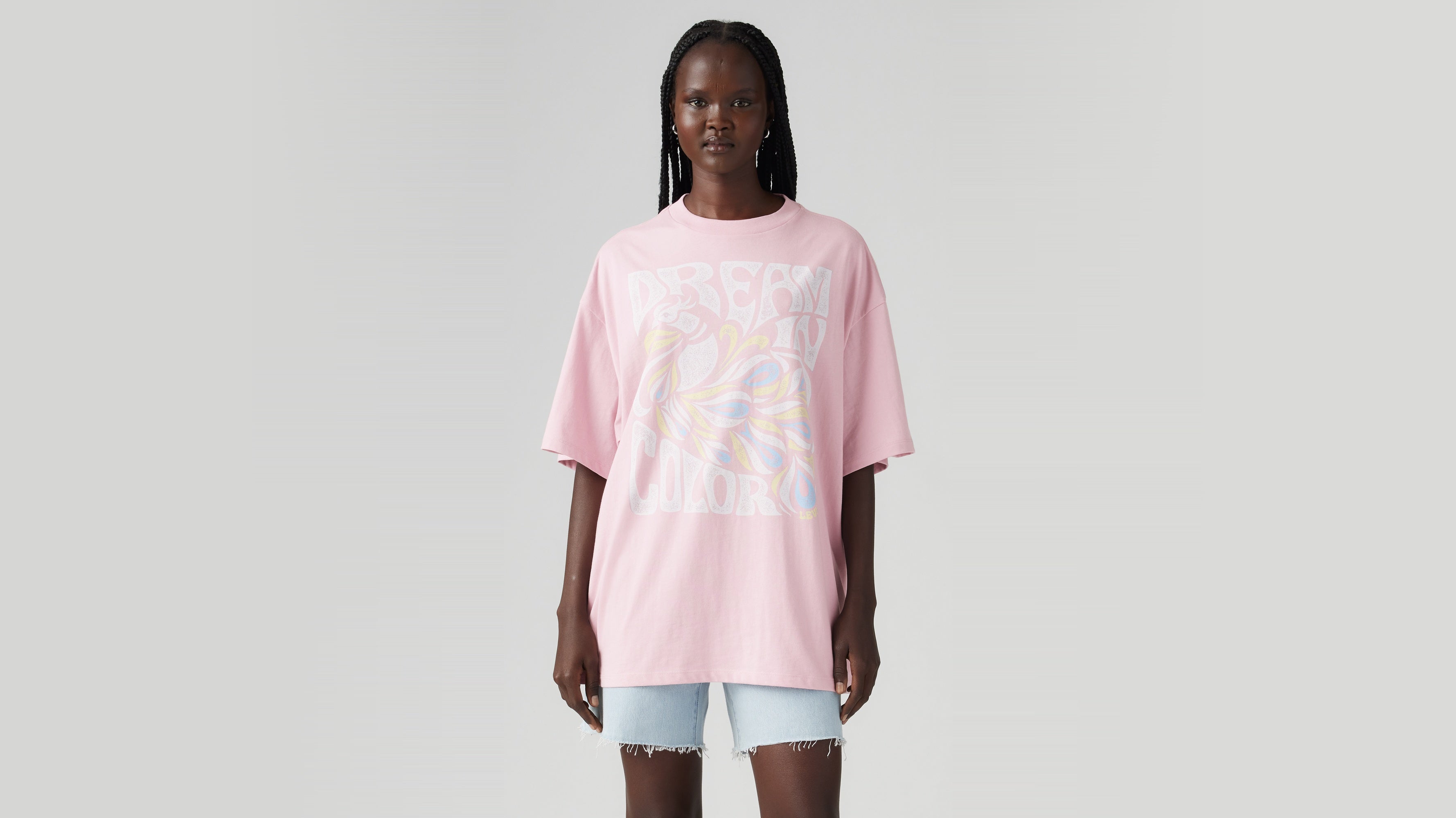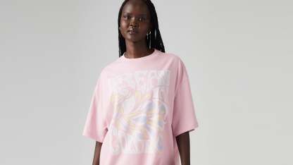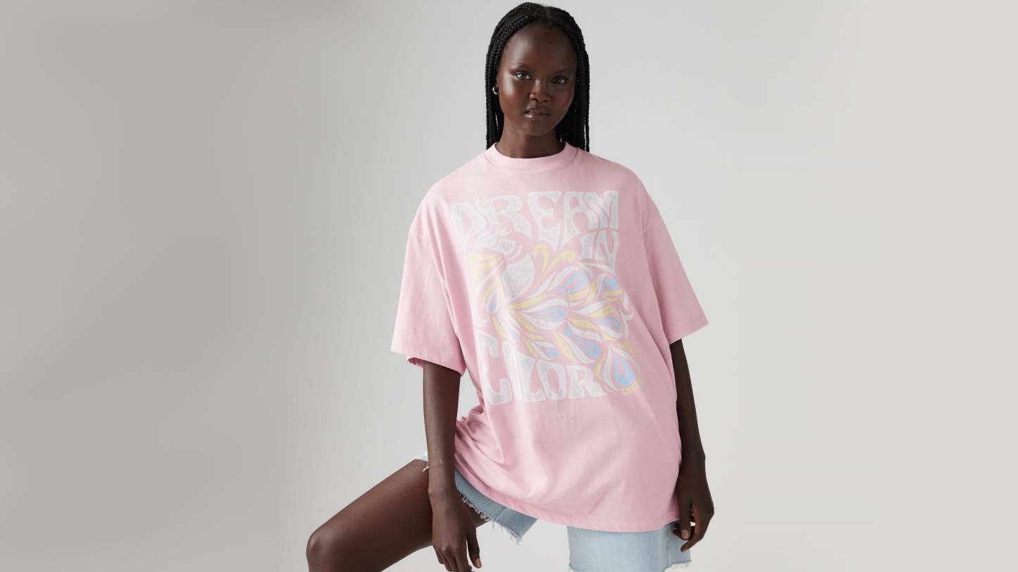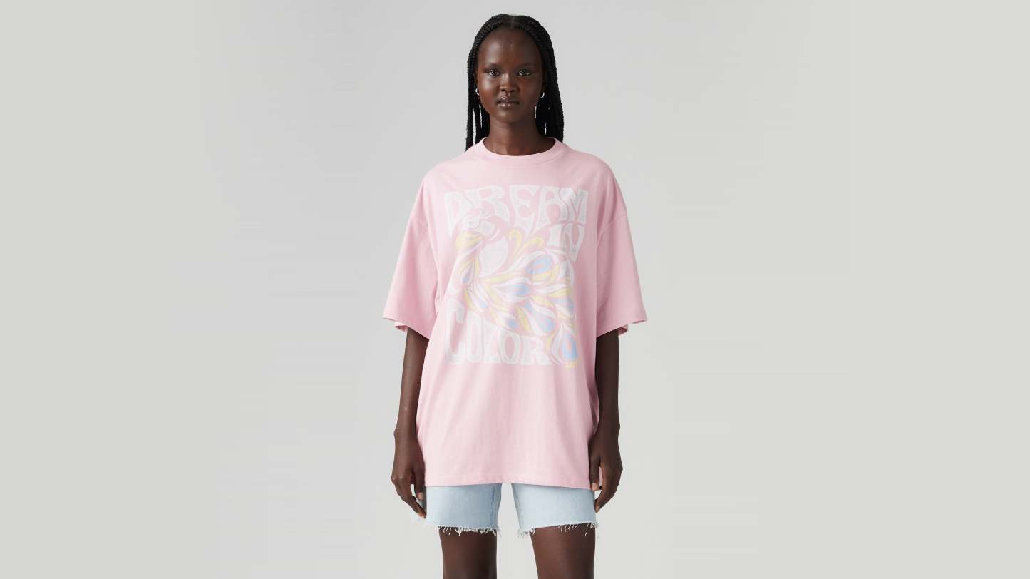 - A loose, oversized fit tee