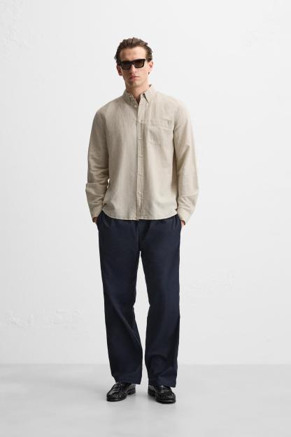 COMPOSITION & CARECOMPOSITIONWe work with monitoring programs to guarantee compliance with the social, environmental, and health and safety standards of our products. To assess its compliance, we have developed an audit program and plans for continual improvement.OUTER SHELL53% linen 47% cottonWhich has at least:OUTER SHELL53% certified European grown linen45% OCS certified organically grown cottonCERTIFIED MATERIALSCERTIFIED EUROPEAN GROWN LINENEuropean grown linen is cultivated without the use of genetically modified seeds and limits the use of pesticides and fertilizers. It is produced in Western Europe, tracking the entire value chain, in accordance with the EUROPEAN FLAX™ standard from the Alliance for European Flax-Linen and Hemp.OCS CERTIFIED ORGANICALLY GROWN COTTONThis fiber is produced without using artificial fertilizers or pesticides and is grown from seeds that have not been genetically modified. We are currently working with the Organic Content Standard (OCS) that supervises the process from the source to the end product.Certified by Intertek 193341More informationCARECaring for your clothes is caring for the environment.Lower temperature washes and delicate spin cycles are gentler on garment, helping to maintain the color, shape and structure of the fabric. At the same time it reduces energy consumption that is used in care processes.