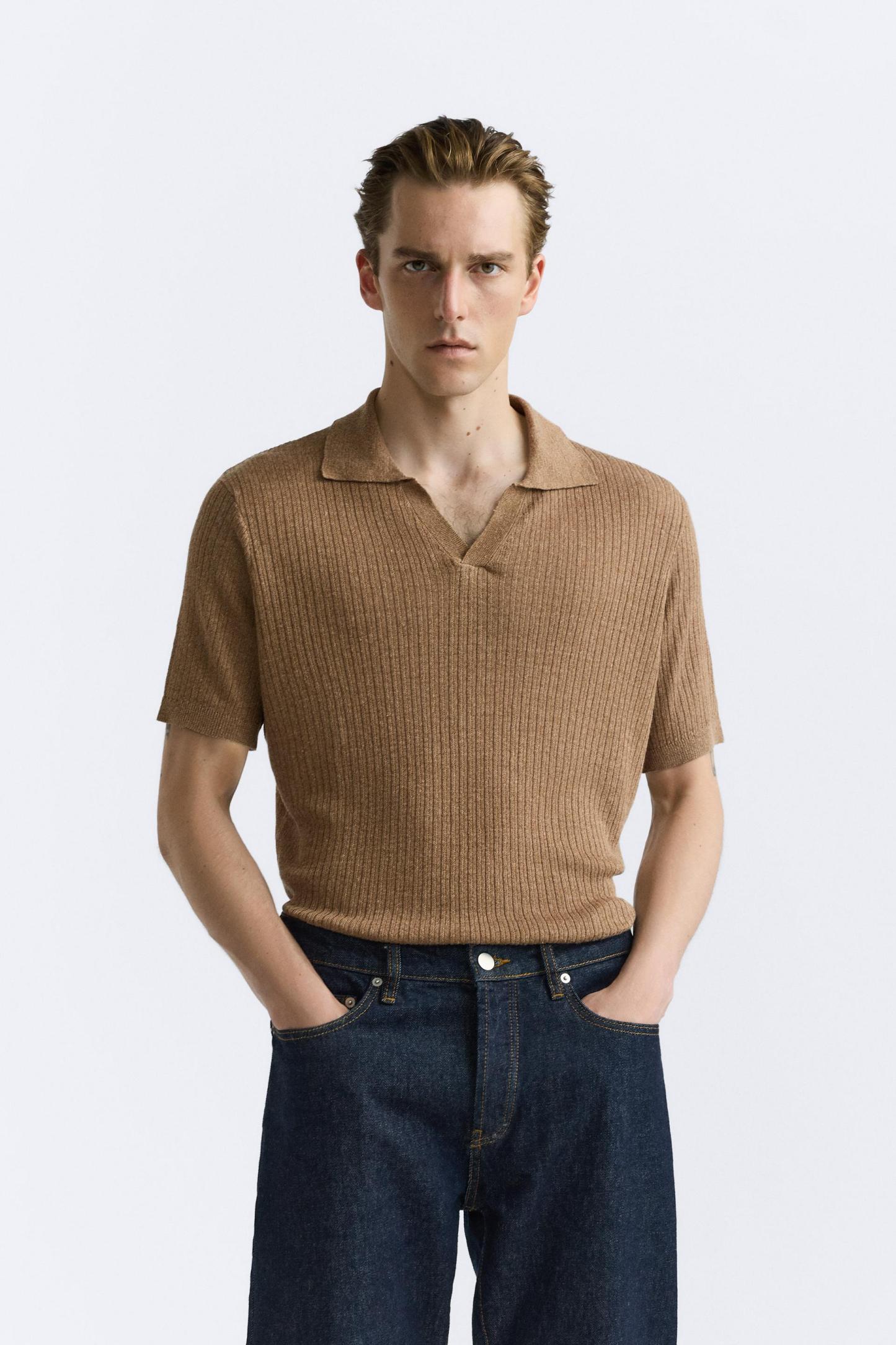 LINEN - VISCOSE KNIT POLO SHIRT