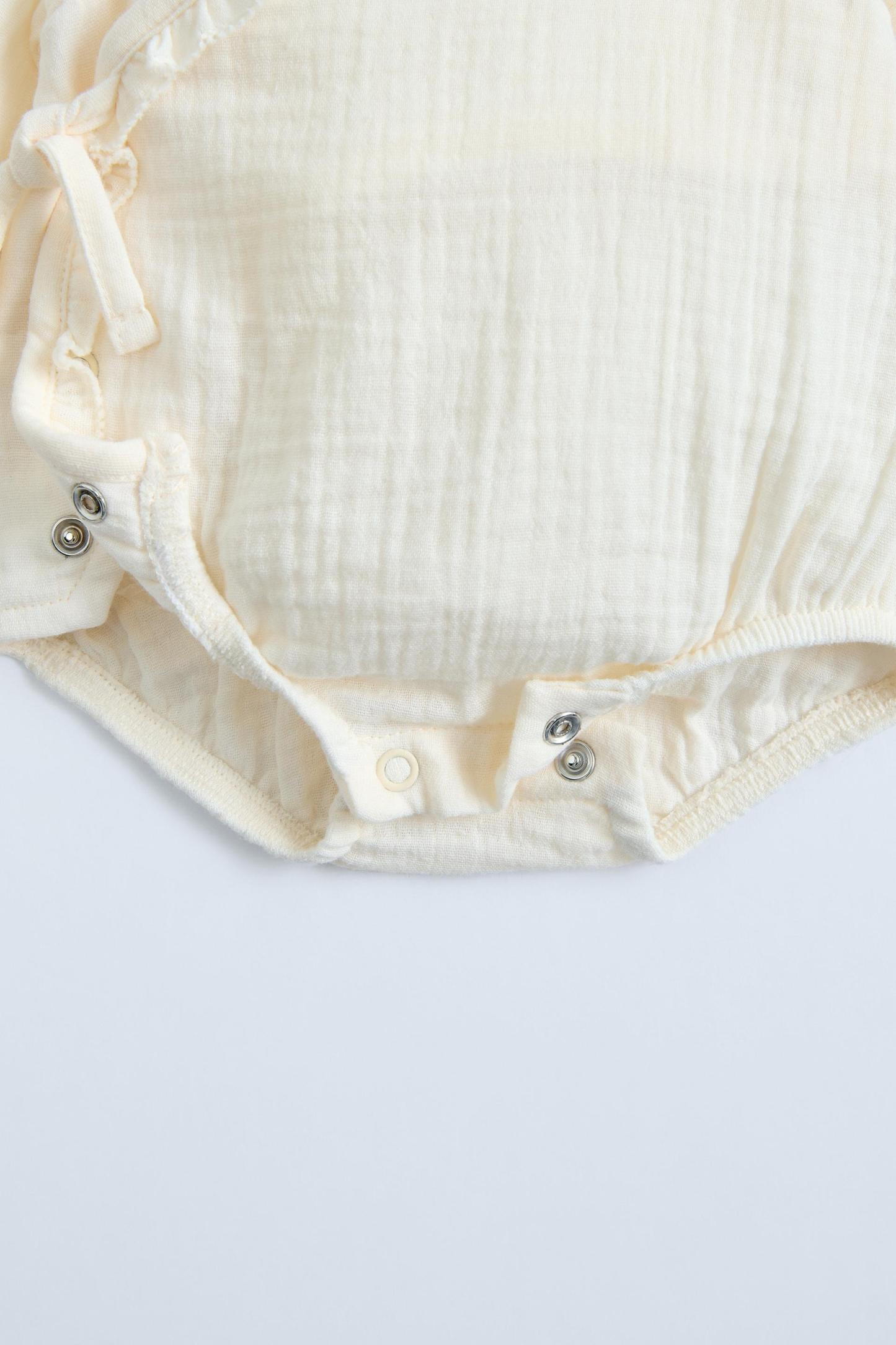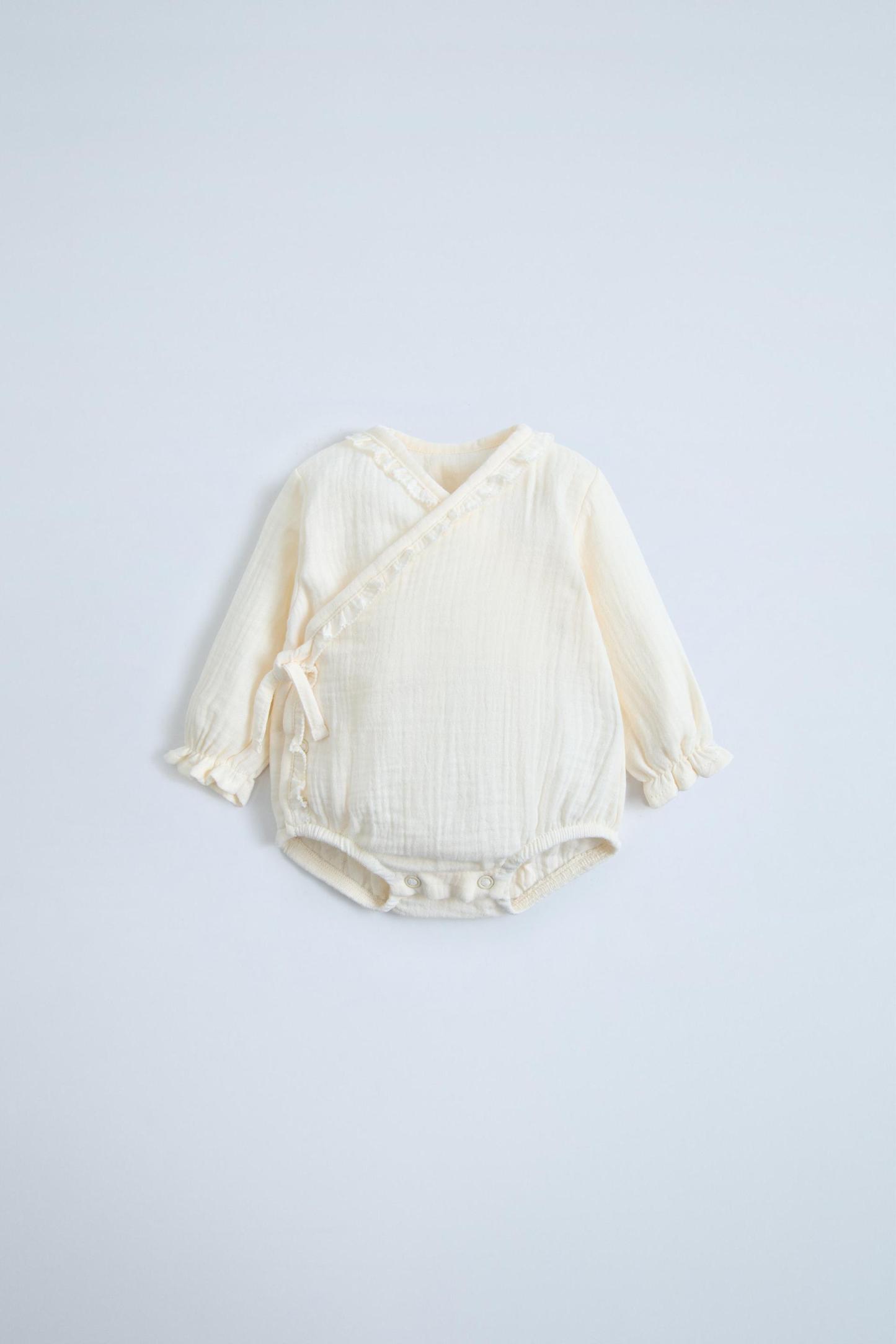 LITTLE RUFFLE MUSLIN WRAP BODYSUIT