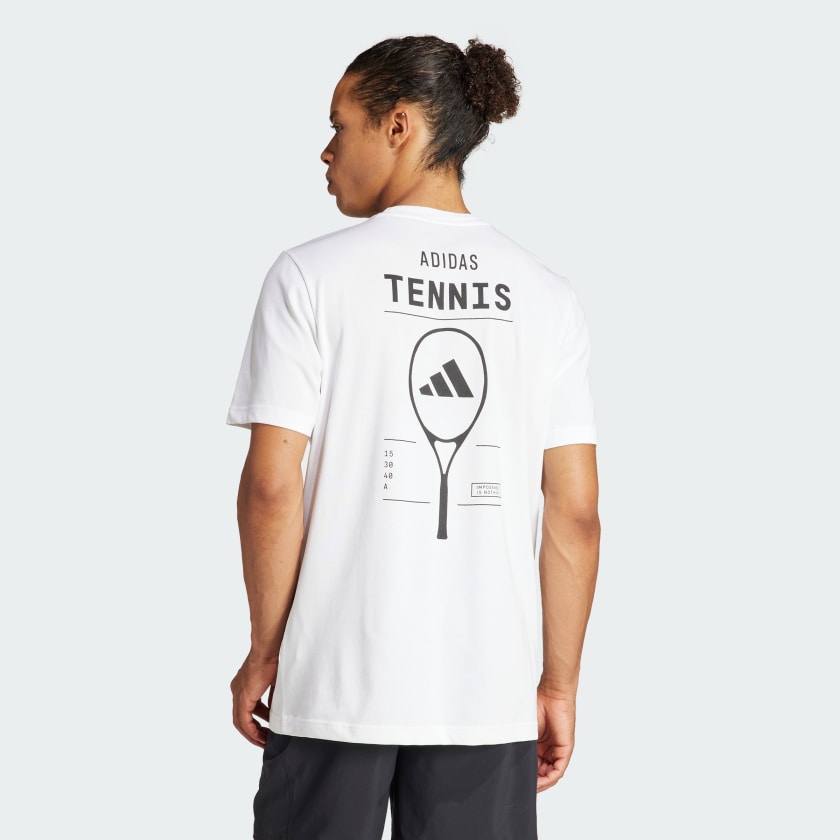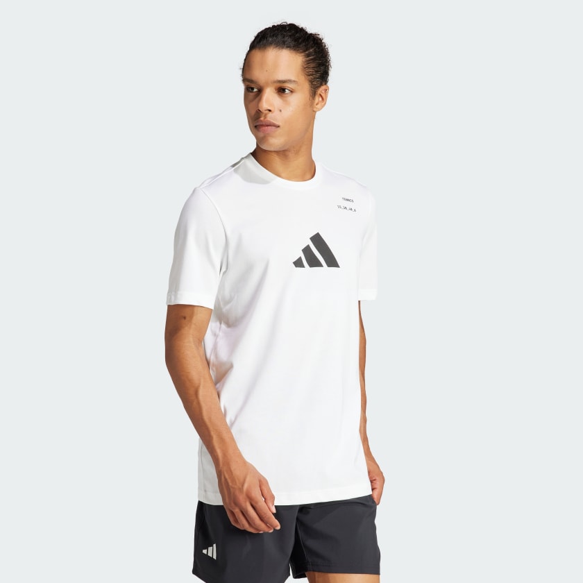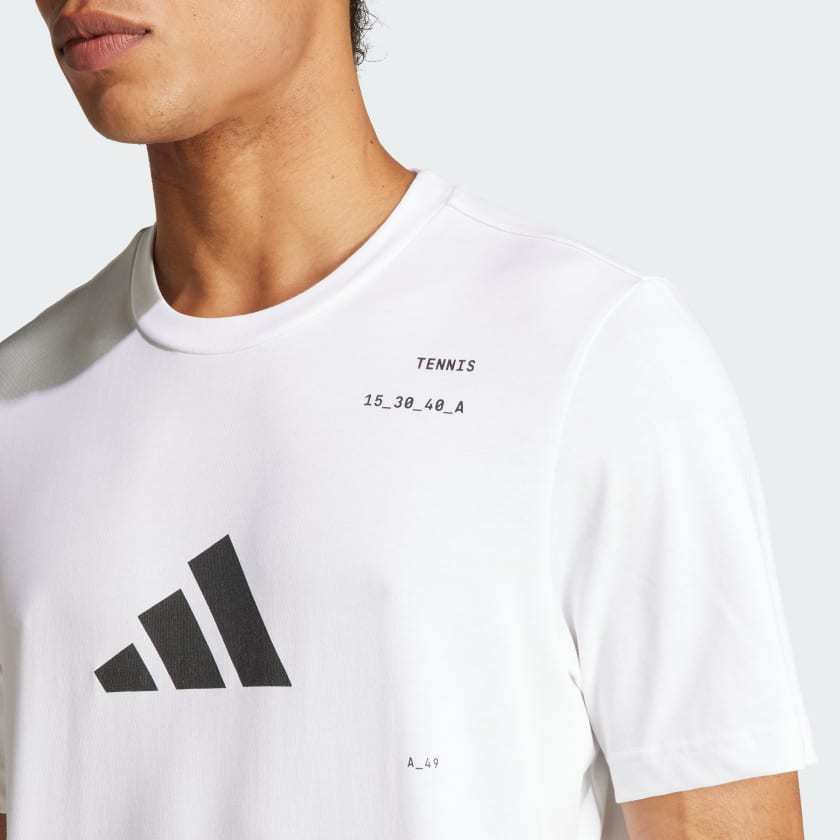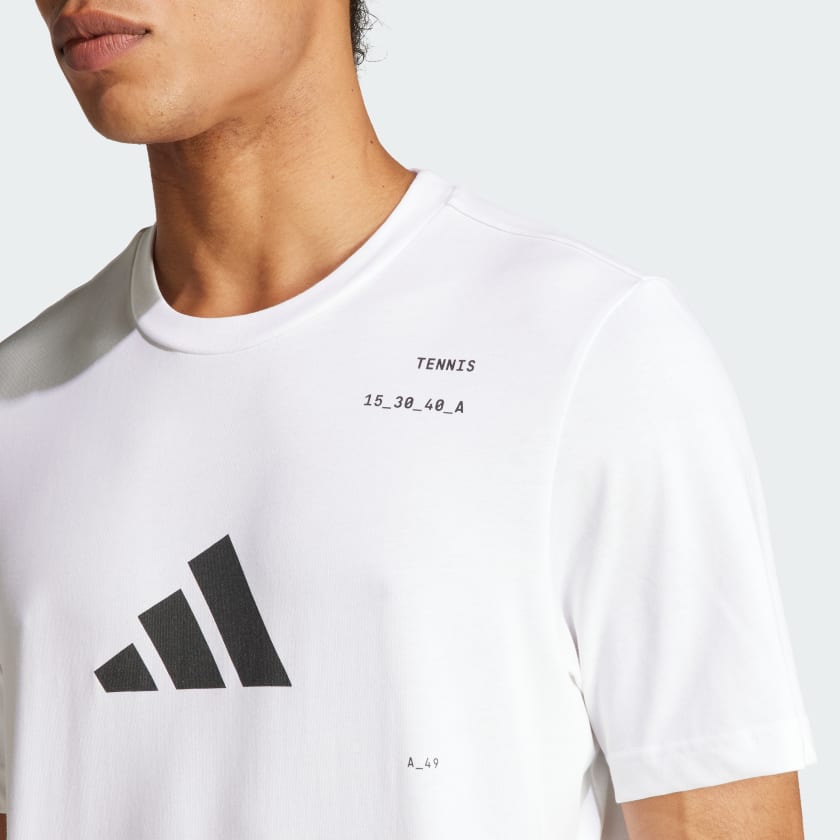 Serve up your best game in this adithtdas graphic tee. Made for fans who live and breathe tennis, its soft cotton blend and moisture-wicking AEROREADY make it perfect for practice sessions. A large 3 Bar Logo on the chest shows you mean business, while a bold graphic on the back pays homage to your favorite sport.