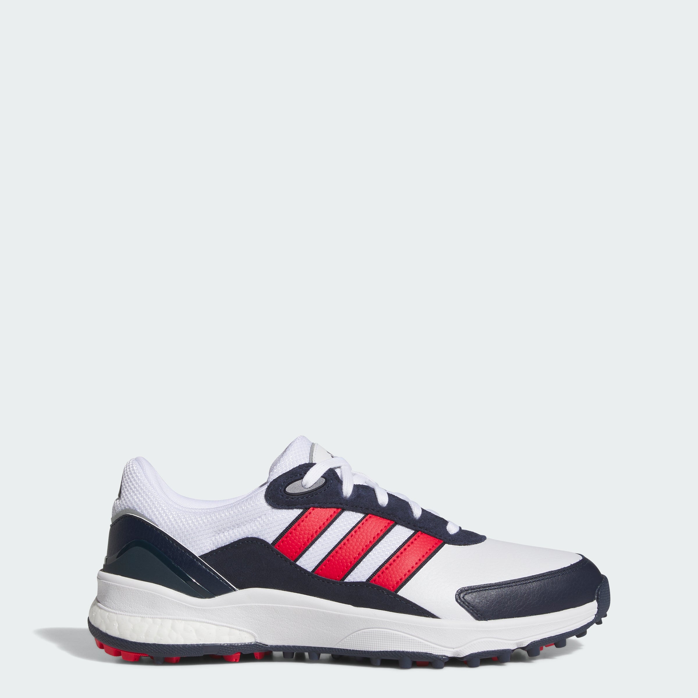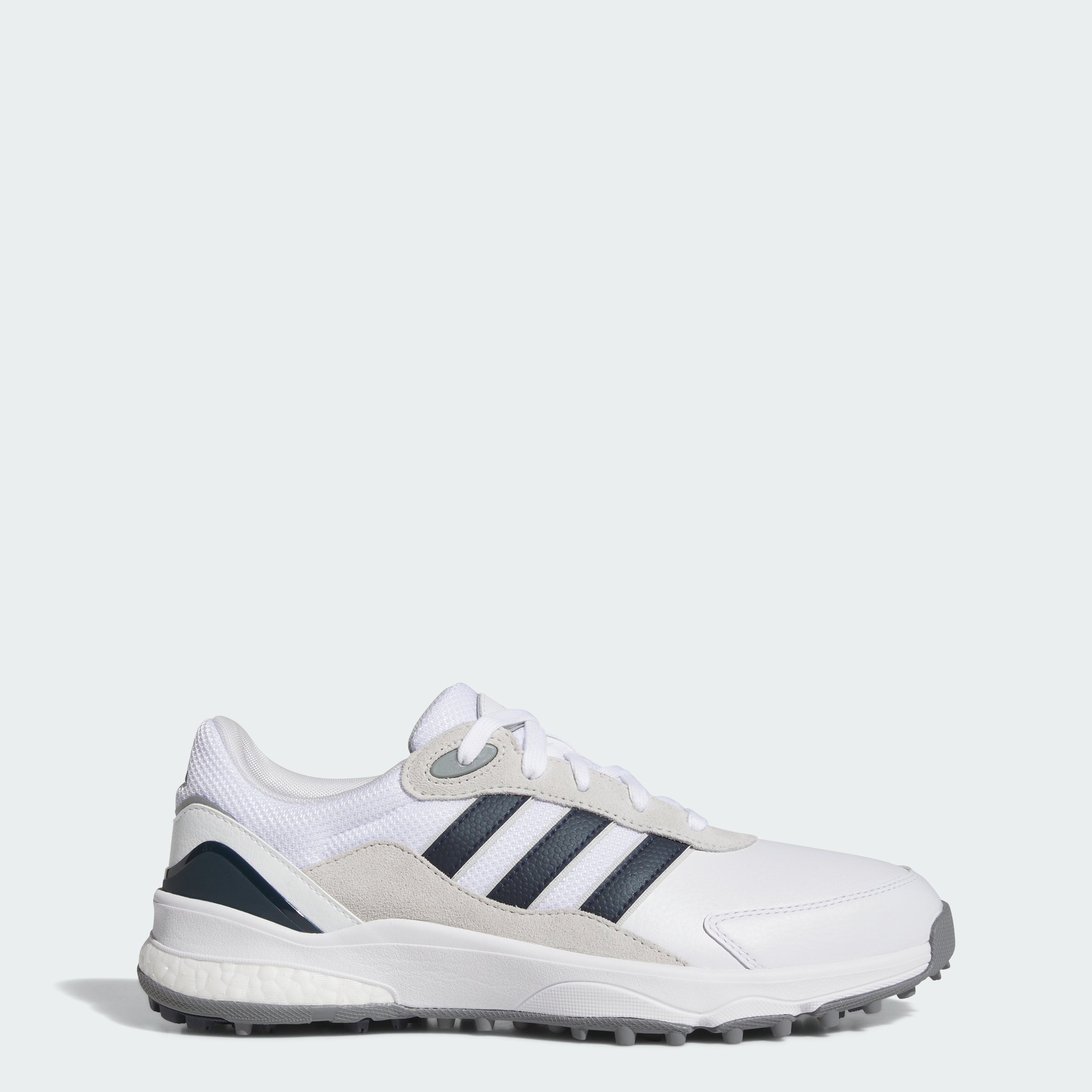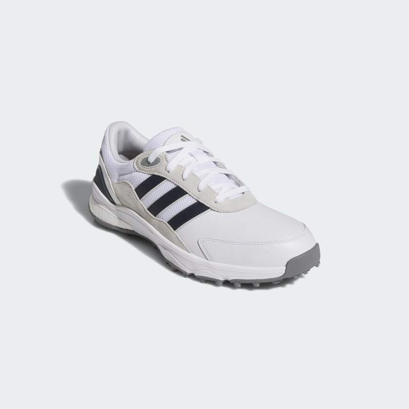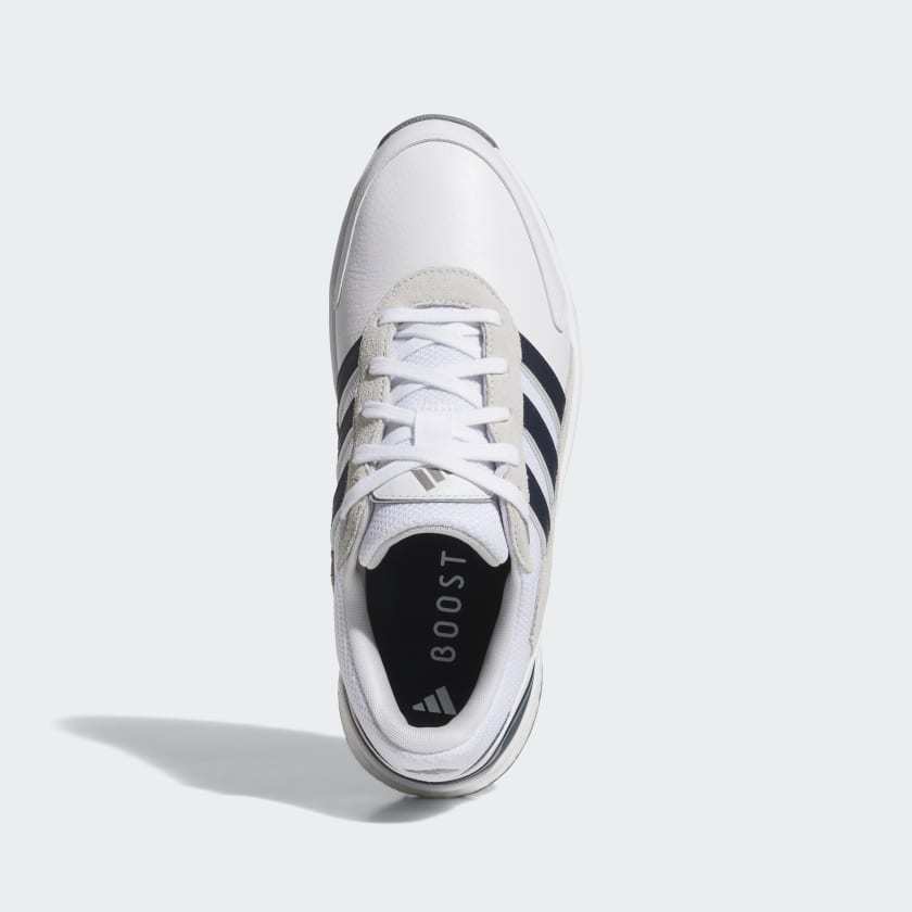Put comfort first with these spikeless golf shoes. Their running shoe-inspired build energizes every step with an adithtdas BOOST midsole, while a leather and textile upper provides a sporty look and feel. A Traxion outsole offers all-direction grip in for a solid stance. By choosing recycled, we are able to reuse materials that have already been created, which helps to reduce waste. Renewable materials choices will help us to remove our reliance on finite resources. Our products made with a blend of recycled and renewable materials feature at least 20% total of these materials.