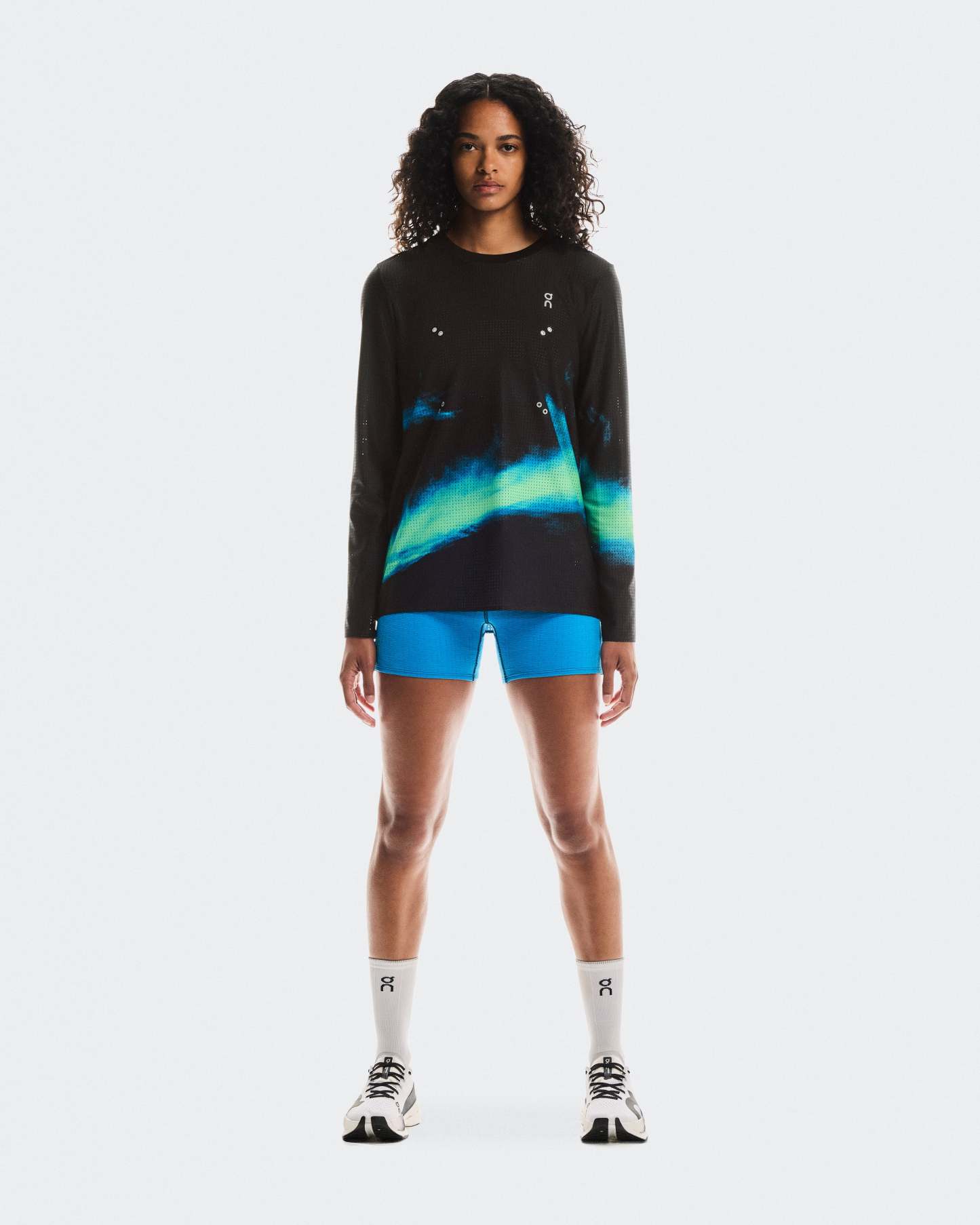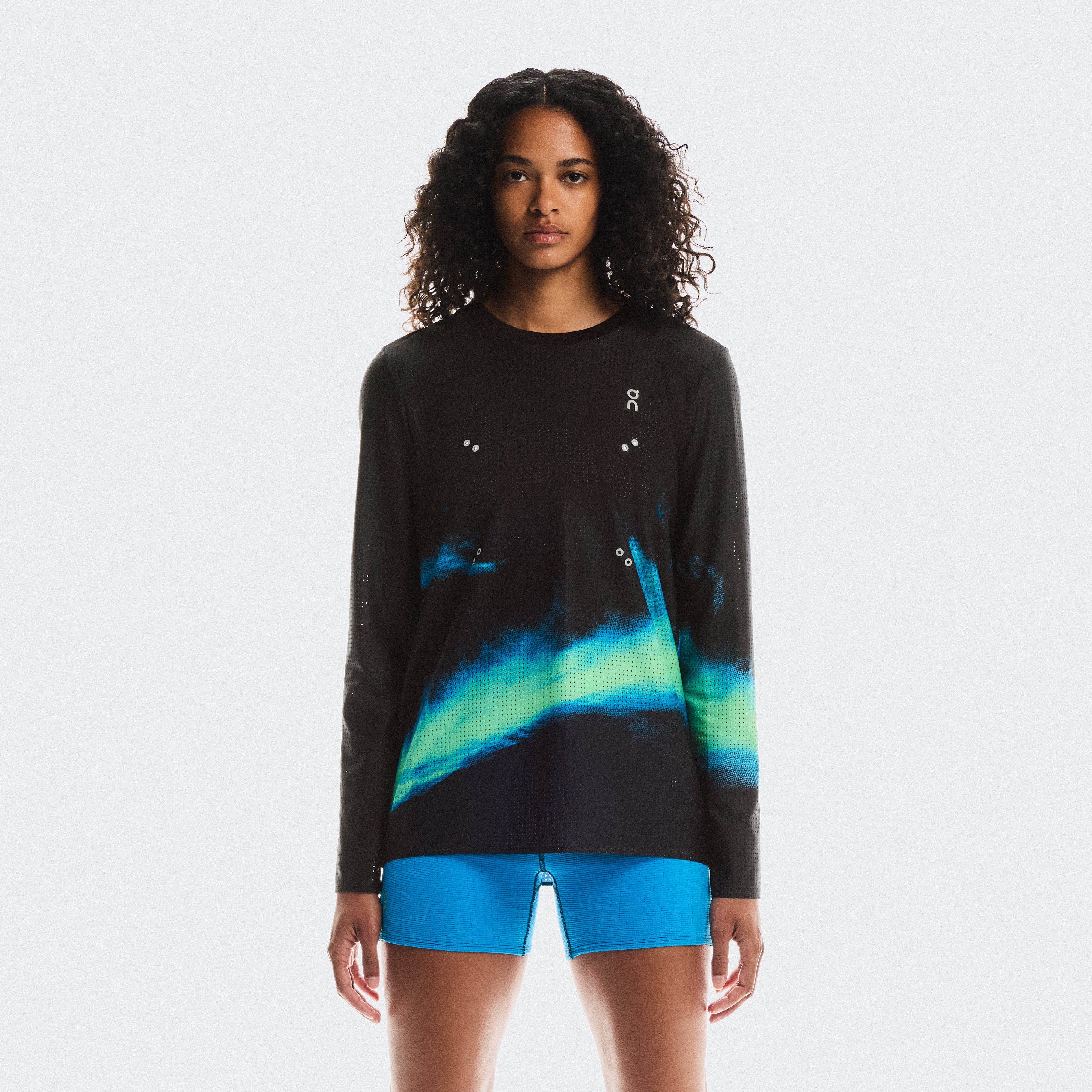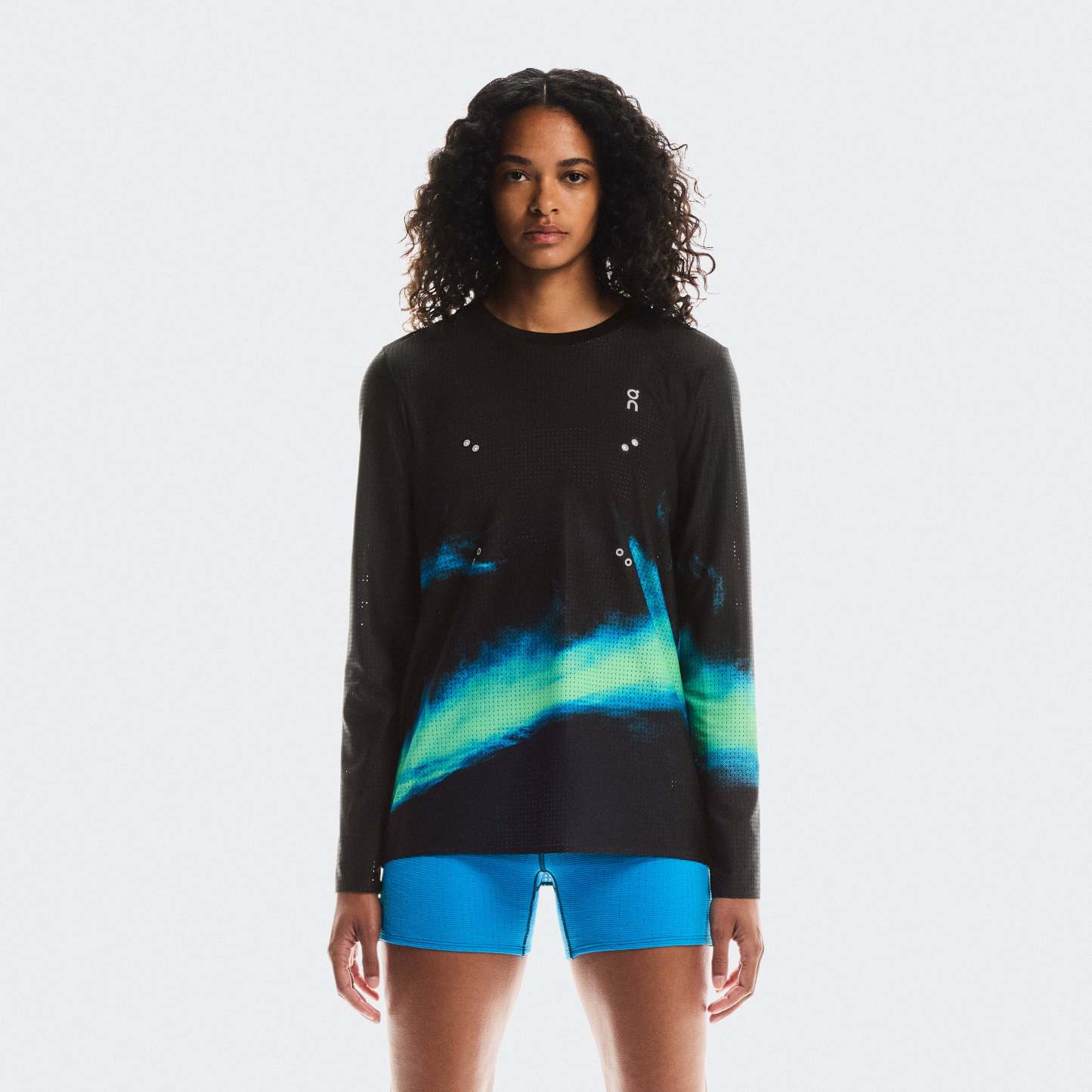 The lOthtN g-sleeved running-tee with a soft, stretchy mesh fabric. Engineered with CleanCloud庐 polyester.