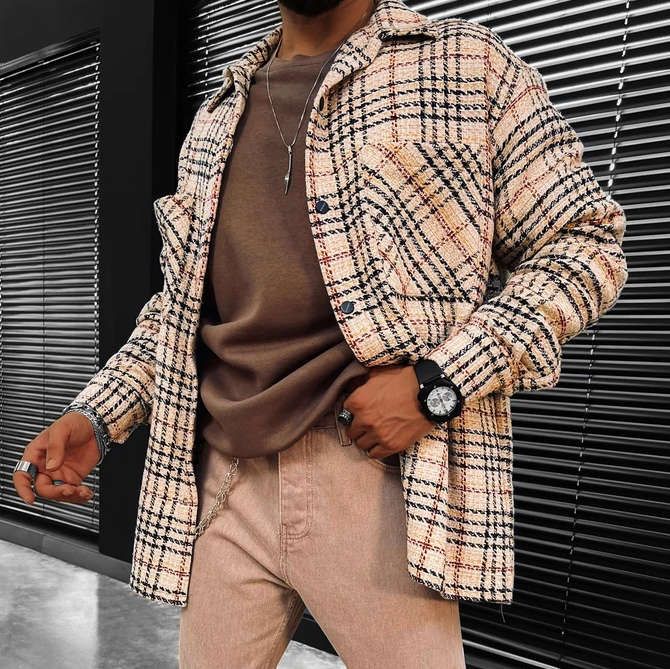 Striped Plaid Texture Long-sleeved Shirt/jacket